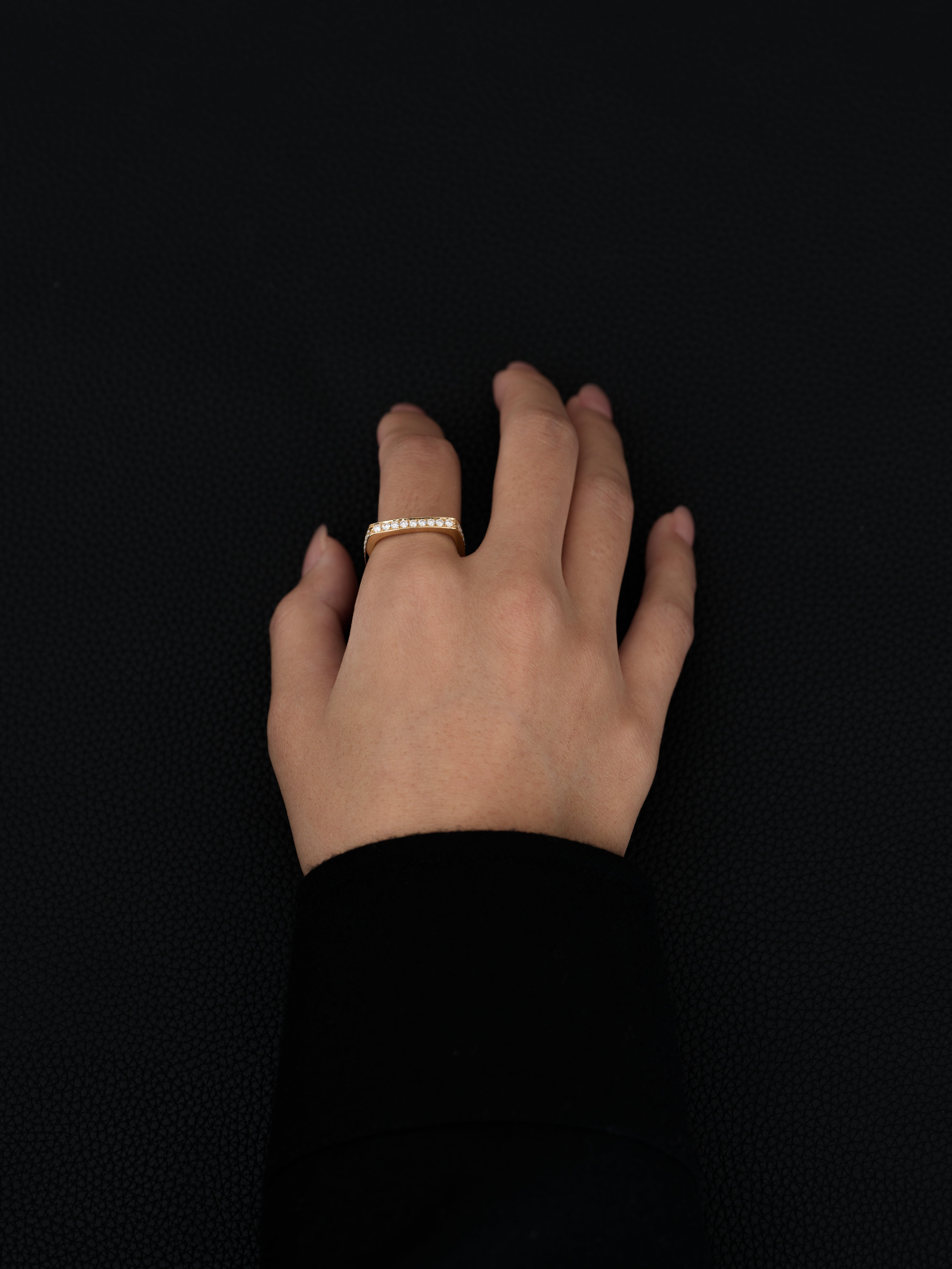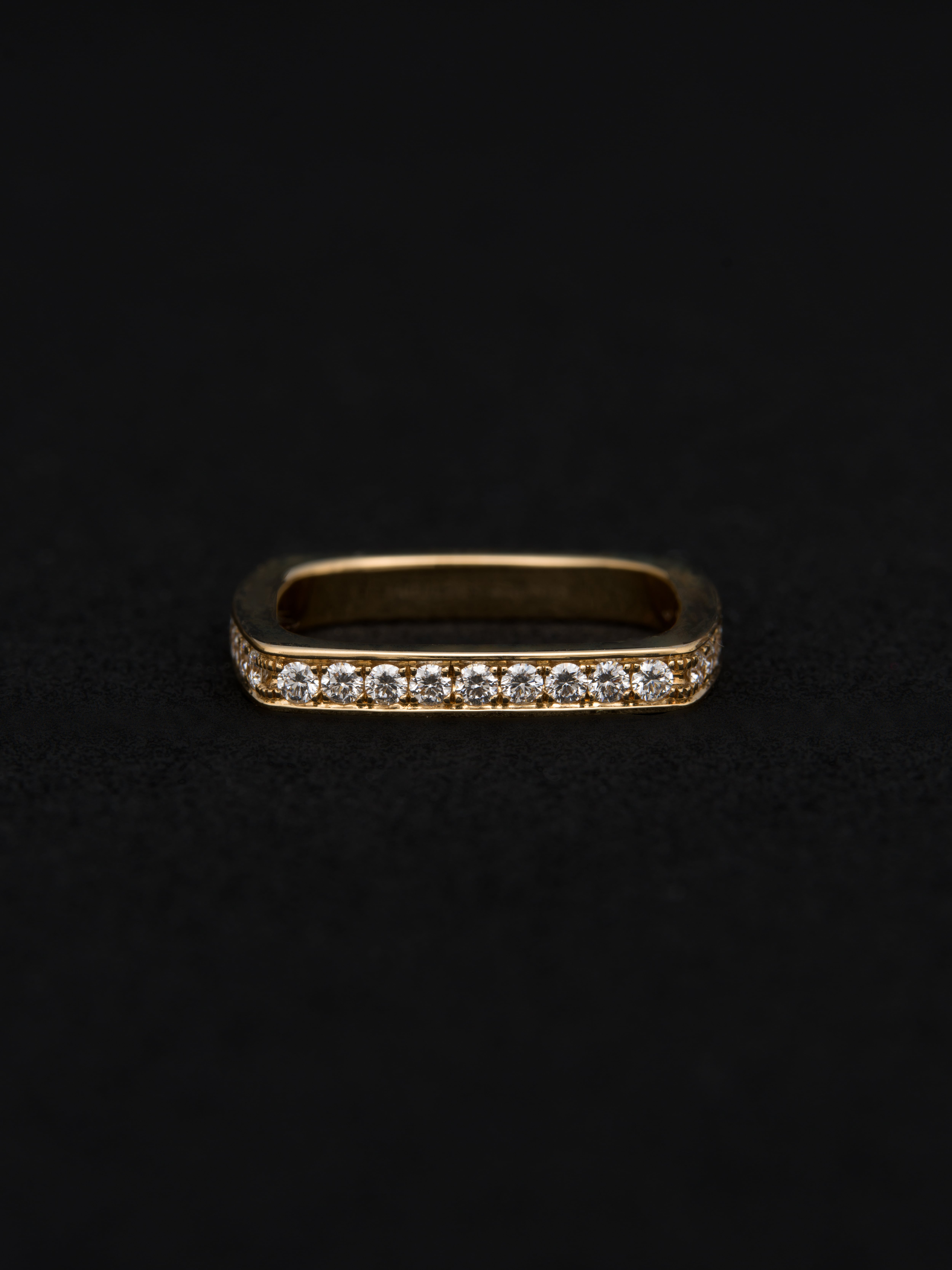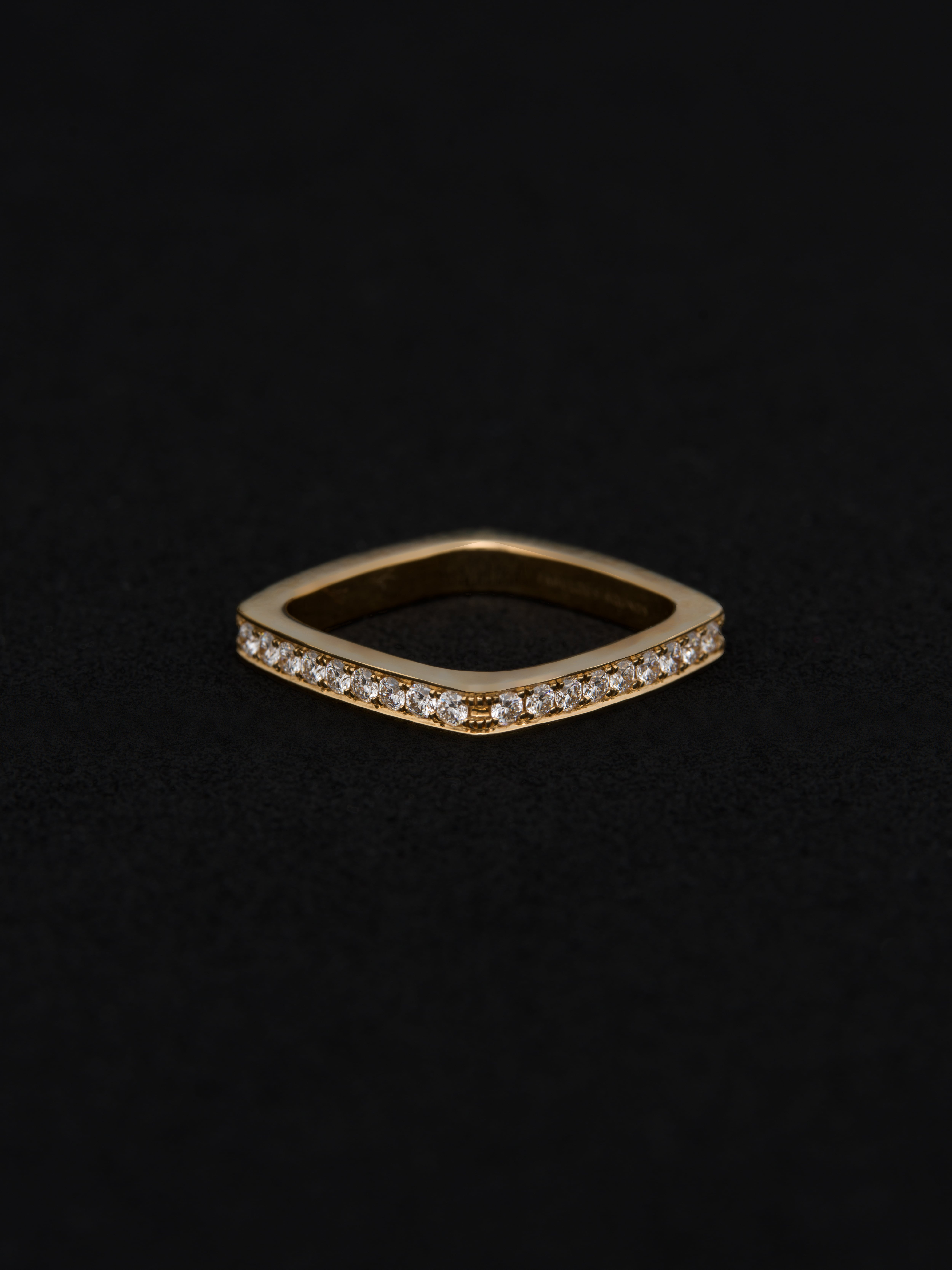 Fabulous Sounds|ファビュラスサウンズ 18Kゴールド製のリング、ダイヤモンドをパヴェセッティング。 デザイナーが訪れたデンマークで着想、存在感のあるスクエア型のフォルムを異なる曲線を用いて表現しています。 日本製 18Kゴールド|ダイヤモンド アイテムナンバー|FR006