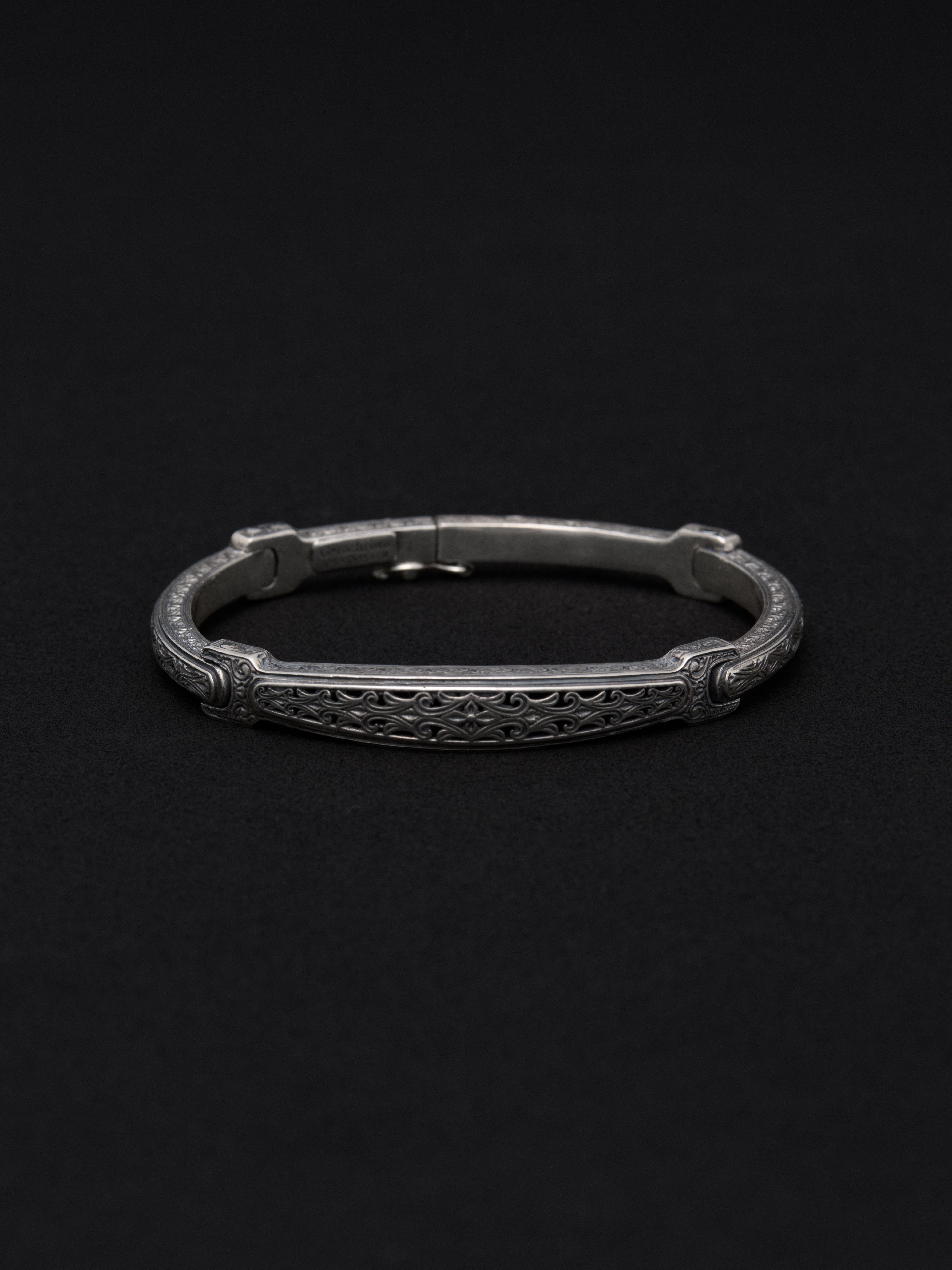 Gerochristo|ジェロクリスト シルバー製のブレスレット。 ギリシアに拠点を置くジェロクリストは、古典芸術様式であるビザンチンに影響を受けた伝統的な装飾技術を用い、クラシックとモダンが調和する独自のデザインでジュエリーを創り上げています。 ギリシア製 シルバー925 S|内周 : 17.5cm|幅 : 8mm M|内周 : 19cm|幅 : 8mm アイテムナンバー|GB037
