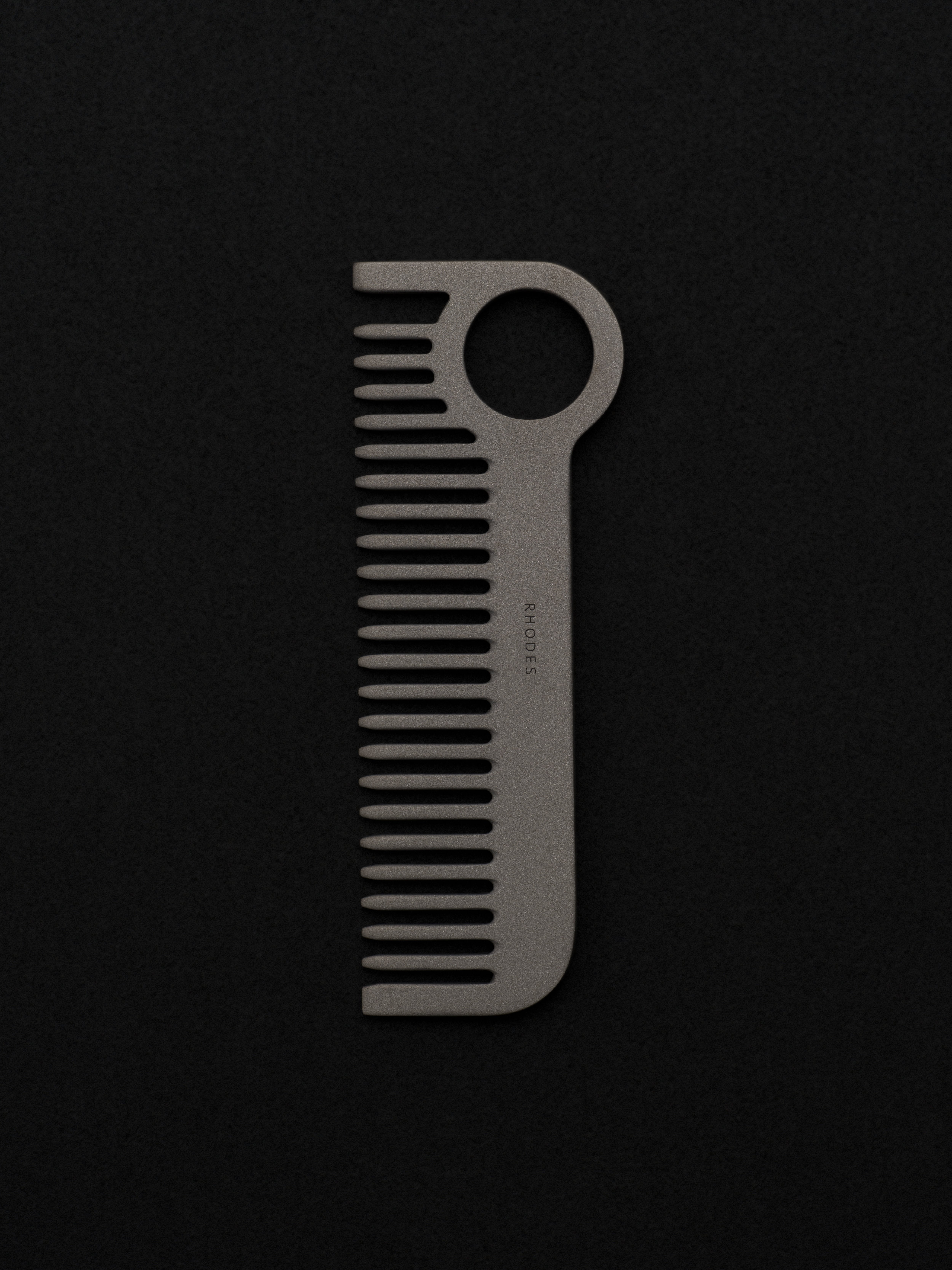 RHODES|ローズ シルバー製のコーム、ブラックコーティング、レザー製のケース付き。 ケースのカラーはブラック、ブラウンの2色からお選びいただけます。 ローズは2021年にファビュラスサウンズのディレクター、吉田量によって設立したブランド。インスピレーションをキーワードに、多彩なデザインのジュエリーを展開。 日本製 シルバー925 3.2cm × 8.8cm アイテムナンバー|RHODES066B