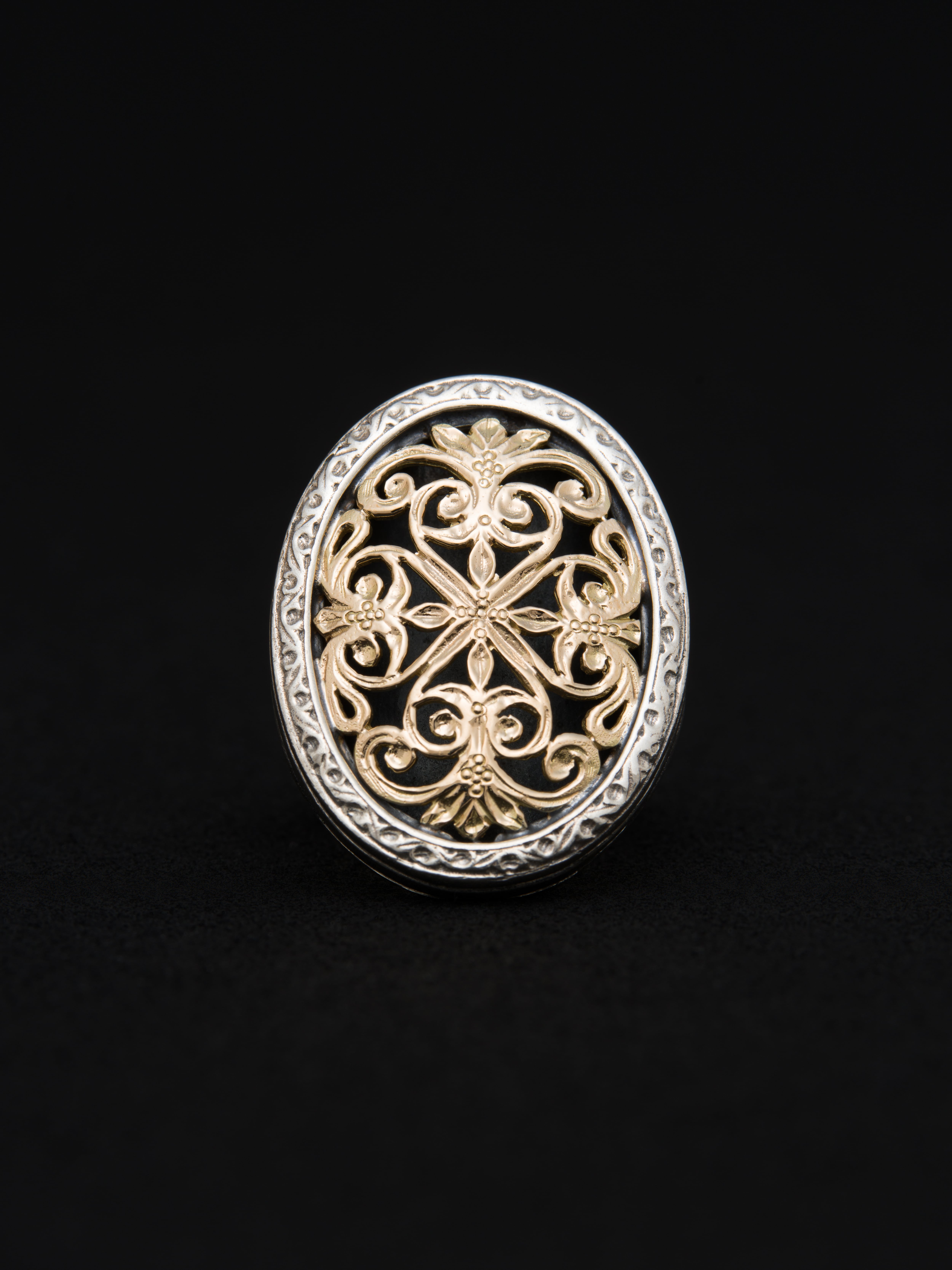 Gerochristo|ジェロクリスト シルバーと18Kゴールド製のリング。 ギリシアに拠点を置くジェロクリストは、古典芸術様式であるビザンチンに影響を受けた伝統的な装飾技術を用い、クラシックとモダンが調和する独自のデザインでジュエリーを創り上げています。 ギリシア製 シルバー925|18Kゴールド サイズ|JP 14.5 アイテムナンバー|GR105