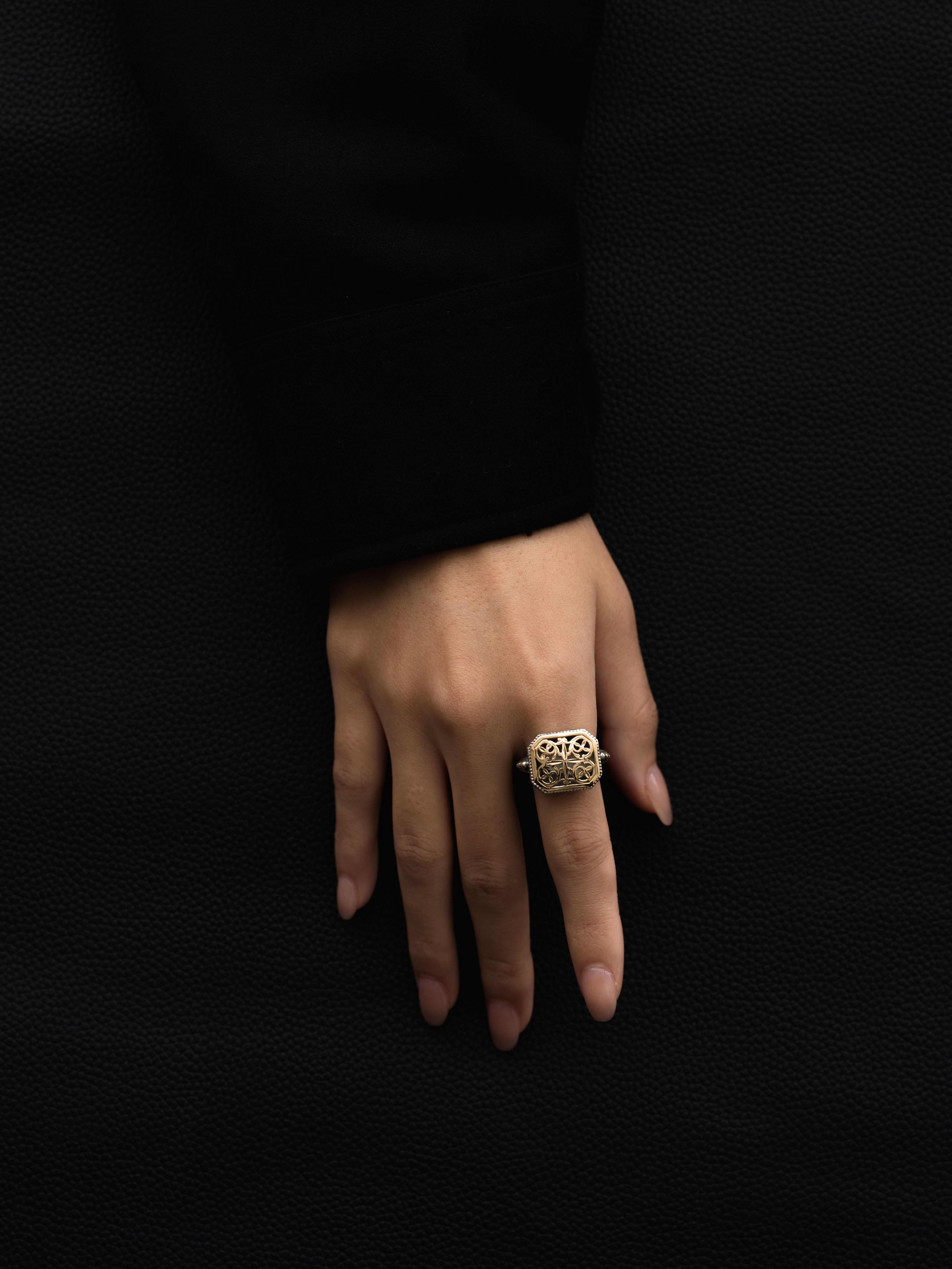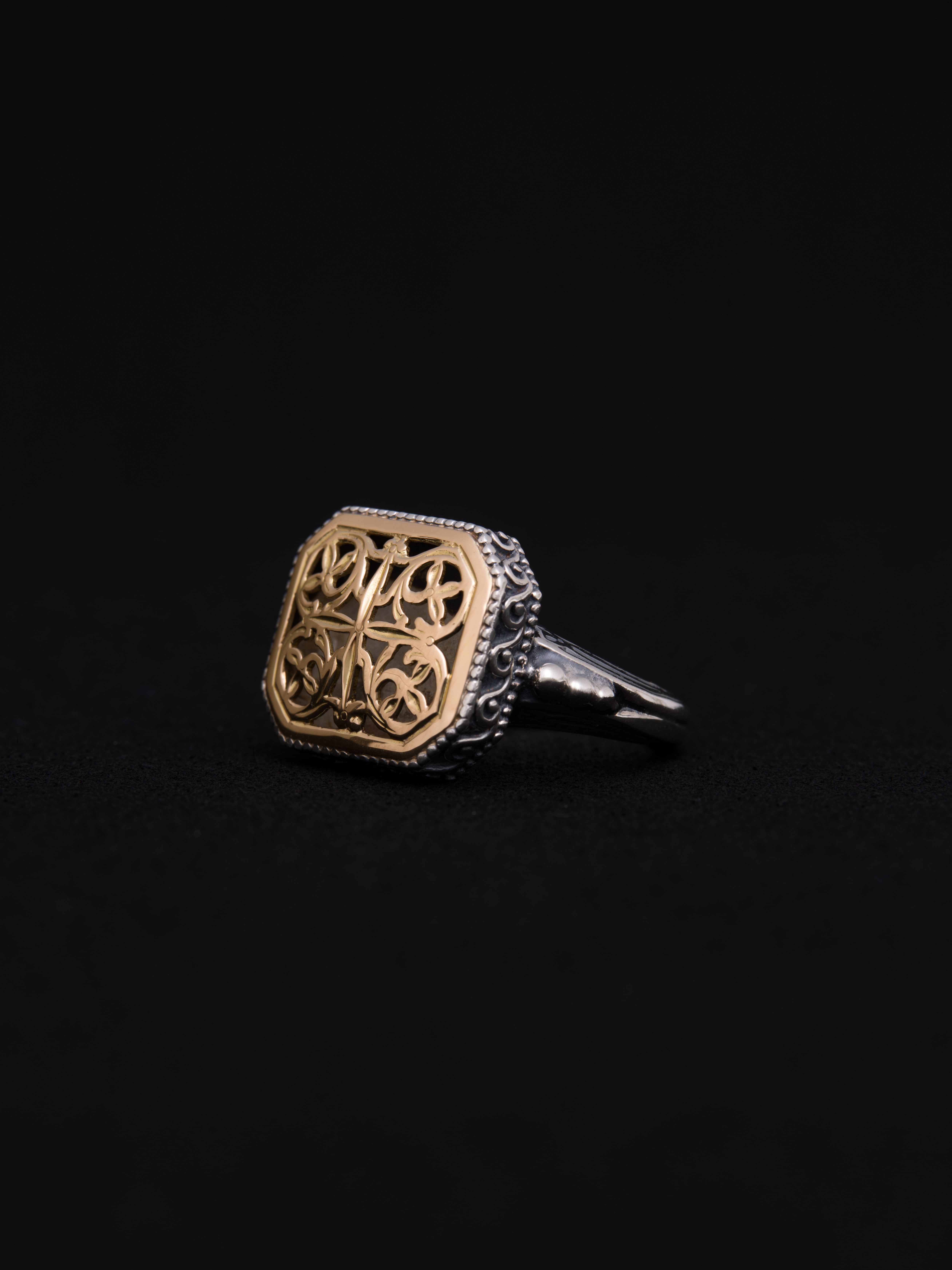 Gerochristo|ジェロクリスト シルバーと18Kゴールド製のリング。 ギリシアに拠点を置くジェロクリストは、古典芸術様式であるビザンチンに影響を受けた伝統的な装飾技術を用い、クラシックとモダンが調和する独自のデザインでジュエリーを創り上げています。 ギリシア製 シルバー925|18Kゴールド サイズ|JP 13 アイテムナンバー|GR110