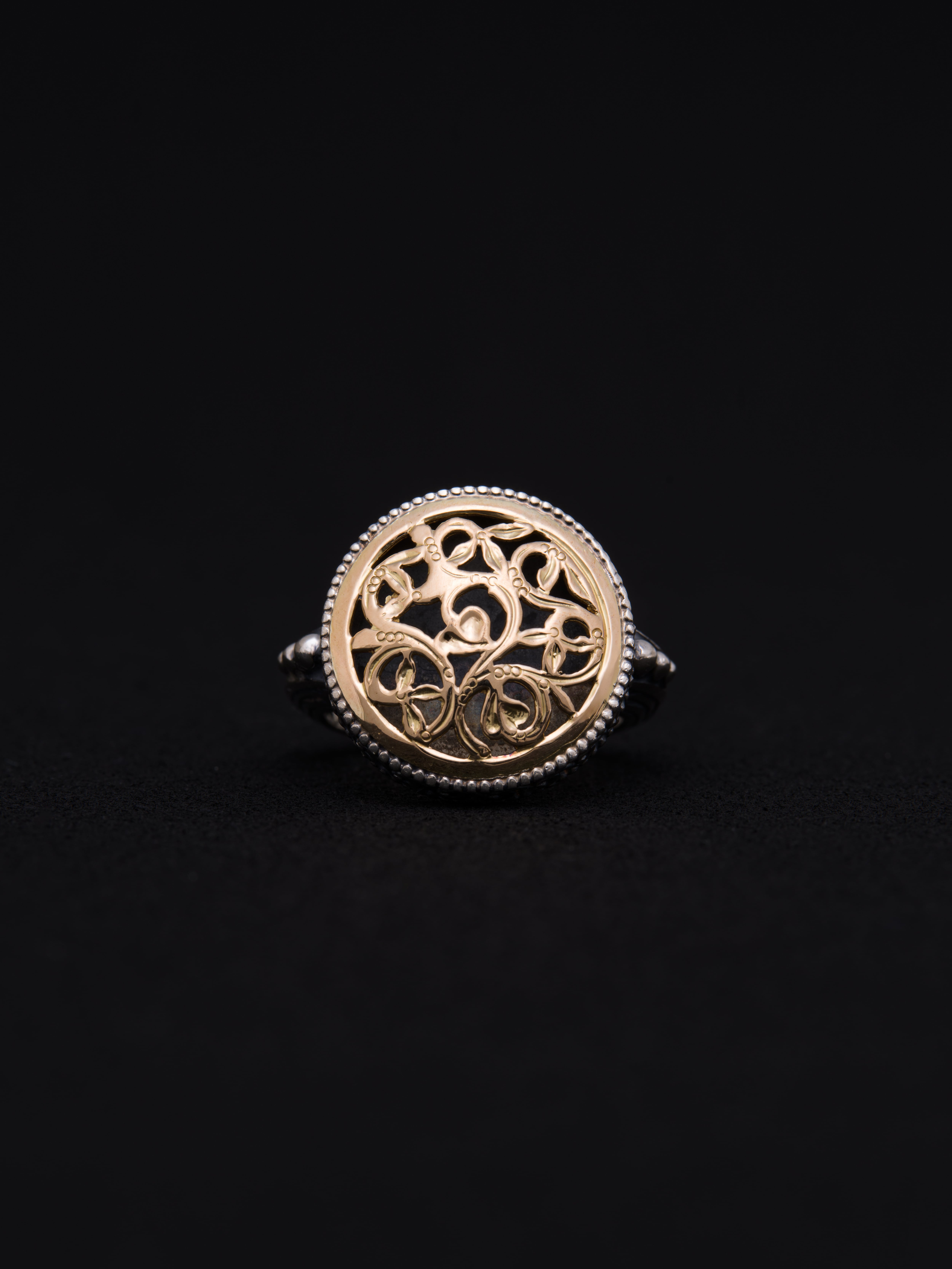 Gerochristo|ジェロクリスト シルバーと18Kゴールド製のリング。 ギリシアに拠点を置くジェロクリストは、古典芸術様式であるビザンチンに影響を受けた伝統的な装飾技術を用い、クラシックとモダンが調和する独自のデザインでジュエリーを創り上げています。 ギリシア製 シルバー925|18Kゴールド サイズ|JP 13 アイテムナンバー|GR113