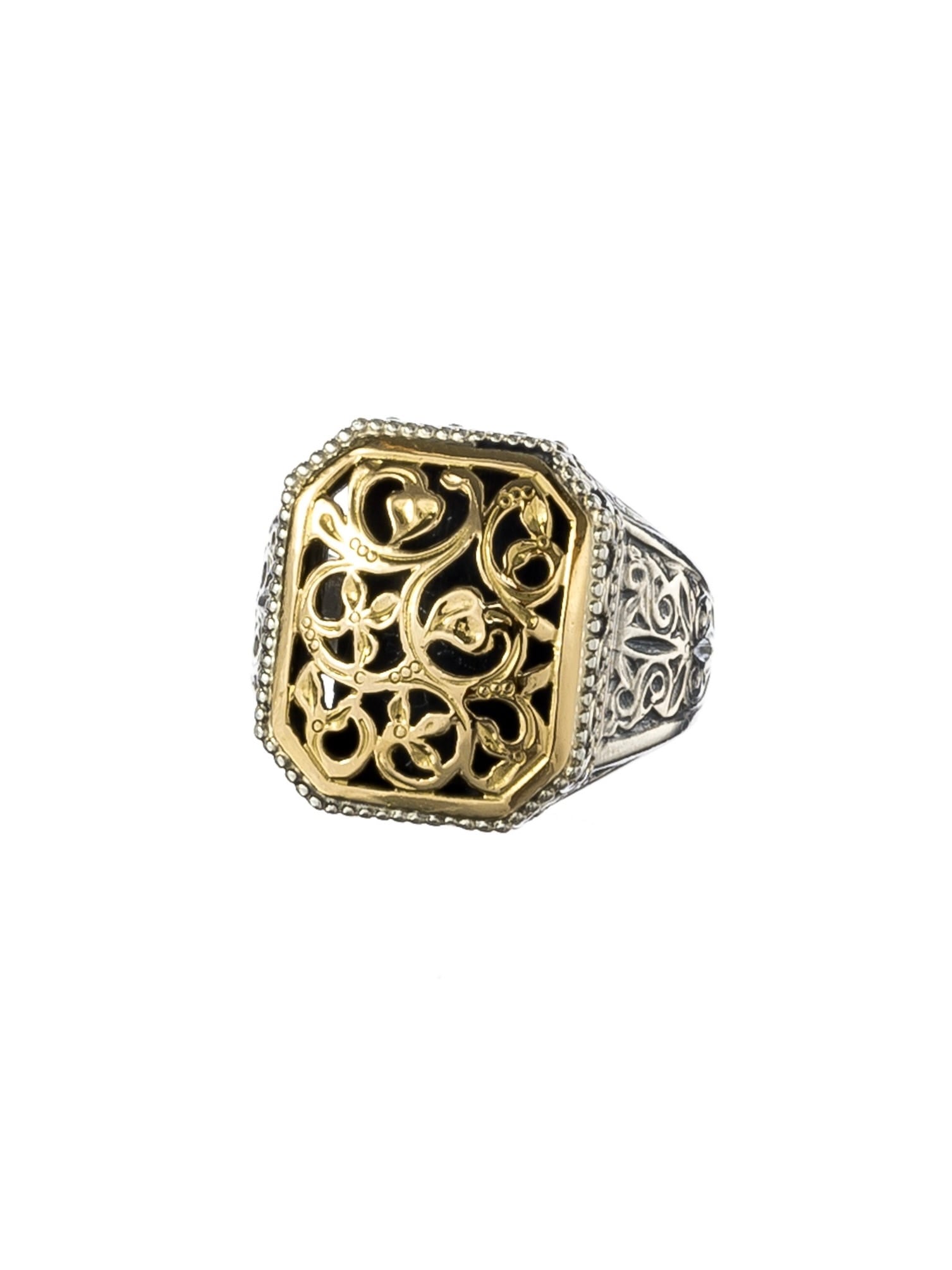 Gerochristo|ジェロクリスト シルバーと18Kゴールド製のリング。 ギリシアに拠点を置くジェロクリストは、古典芸術様式であるビザンチンに影響を受けた伝統的な装飾技術を用い、クラシックとモダンが調和する独自のデザインでジュエリーを創り上げています。 ギリシア製 シルバー925|18Kゴールド サイズ|JP 16 アイテムナンバー|GR114