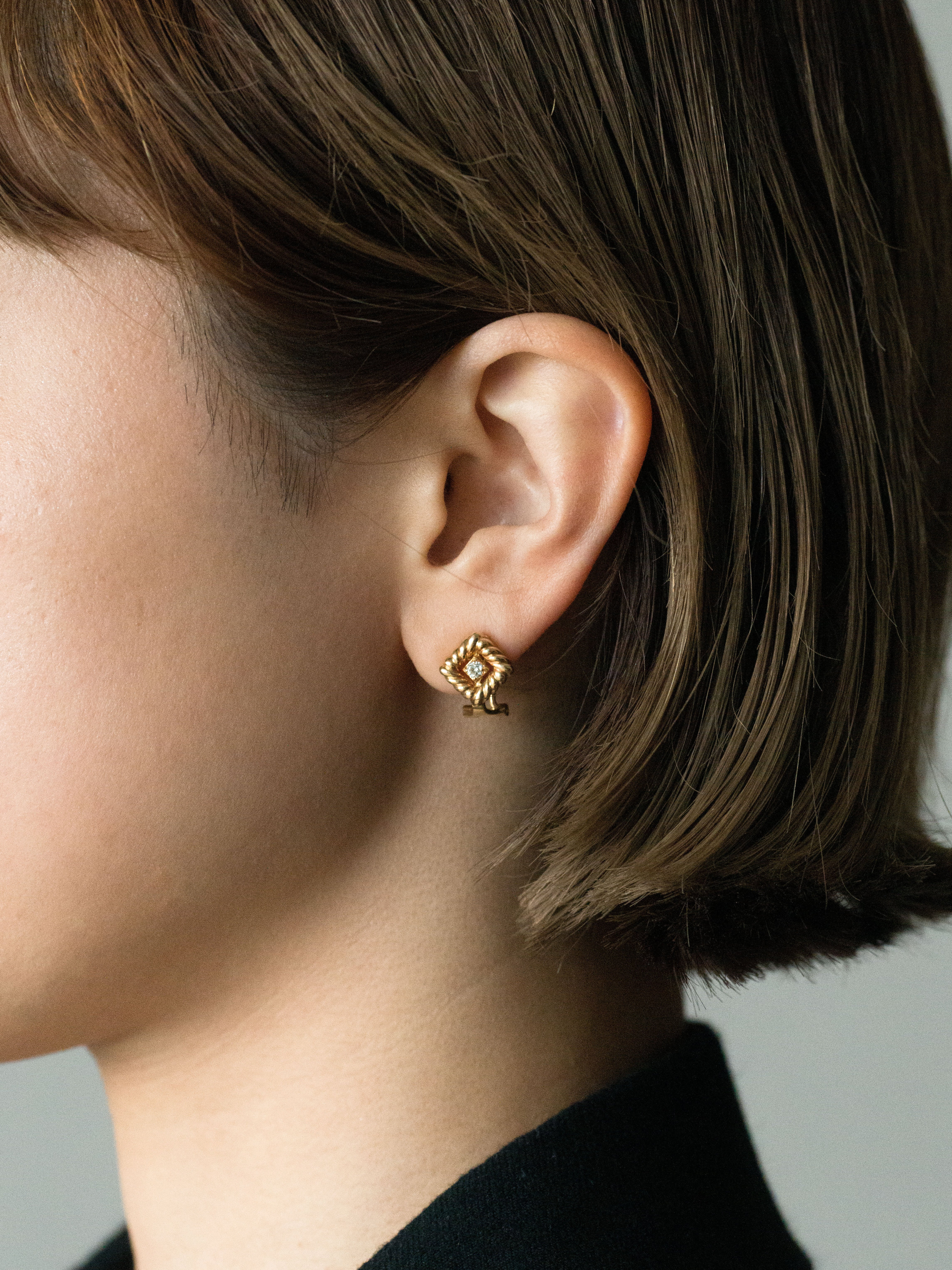 Dior〈ディオール〉の18Kゴールド製ピアス、トップにダイヤモンドをセッティング。 フランス製 18Kゴールド|ダイヤモンド 1.1cm × 1.1cm アイテムナンバー|A253 ペア(両耳)販売
