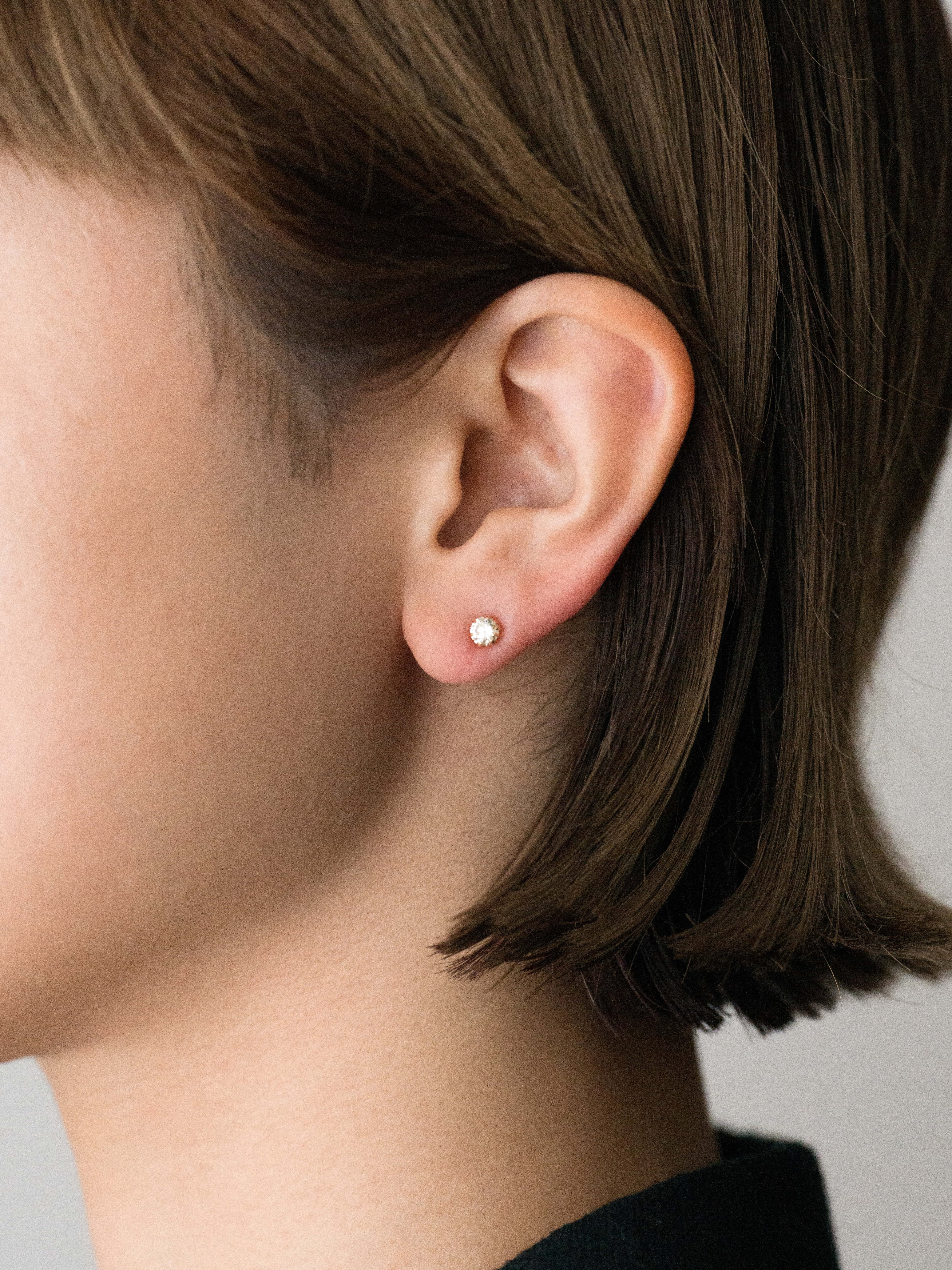 Fabulous Sounds|ファビュラスサウンズ 18Kゴールド製のピアス、0.25カラットのダイヤモンドをセッティング。 日本製 18Kゴールド|ダイヤモンド 4.5mm × 4.5mm アイテムナンバー|OP027 シングル(片耳)販売