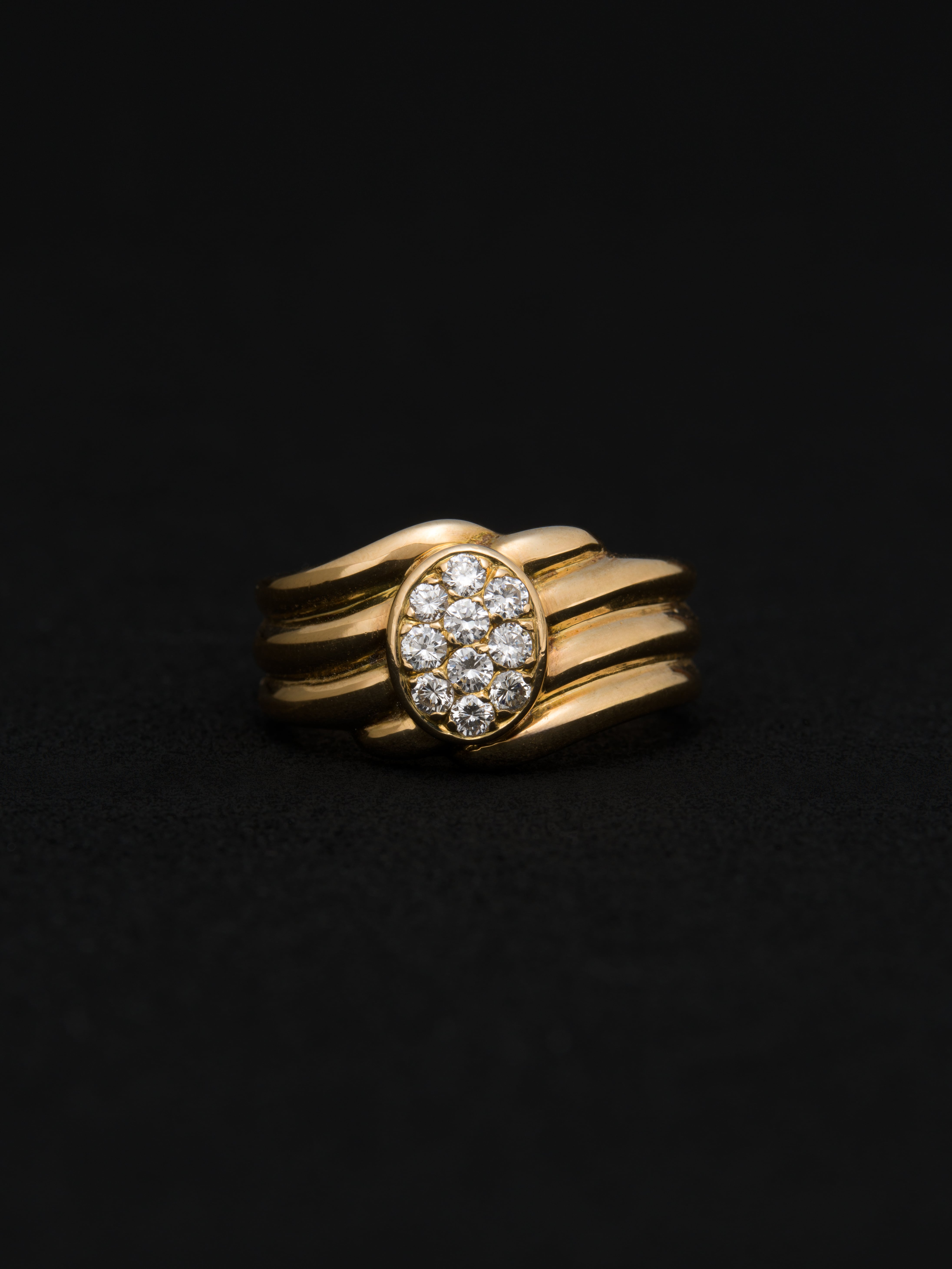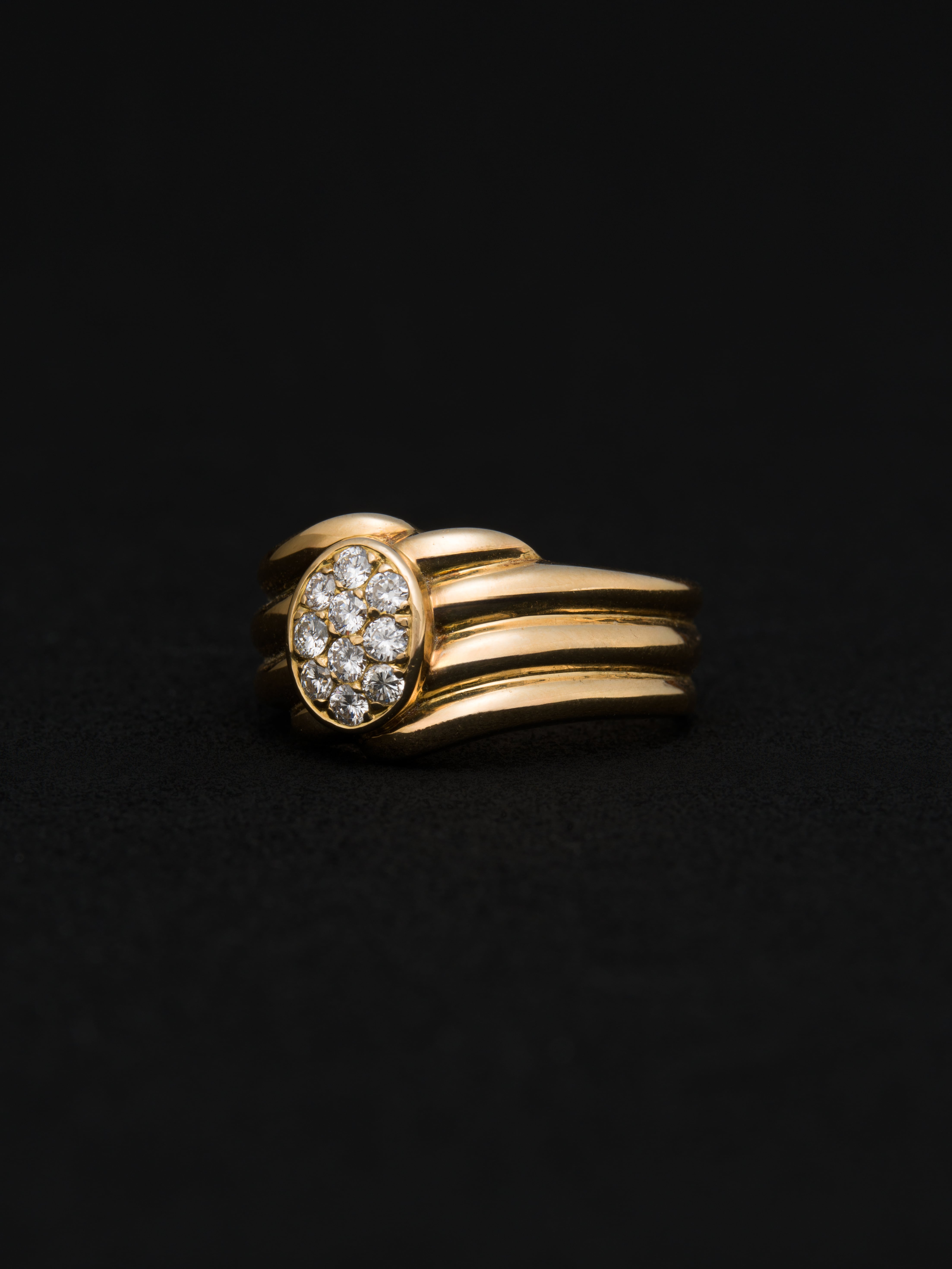 Van Cleef & Arpels〈ヴァンクリーフ&アーペル〉の18Kゴールド製リング、中央にパヴェダイヤモンドをセッティング。 フランス製 18Kゴールド|ダイヤモンド サイズ|JP 19 アイテムナンバー|R2347