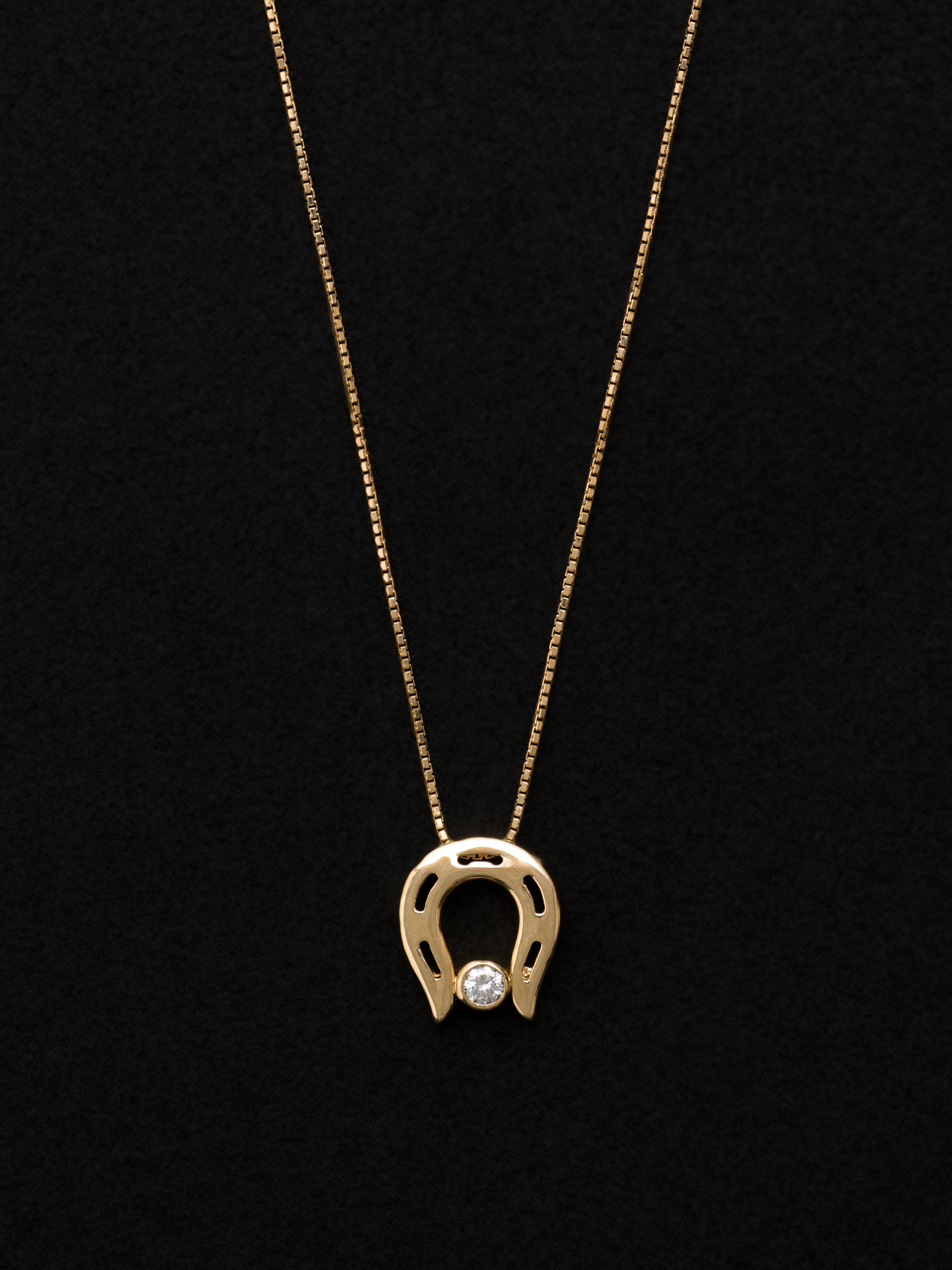 Celine〈セリーヌ〉の18Kゴールド製ネックレス、ホースシューモチーフ、メレダイヤモンド。 フランス製 18Kゴールド|ダイヤモンド ペンダント : 1.2cm × 1cm|ネックレス : 42cm アイテムナンバー|N553