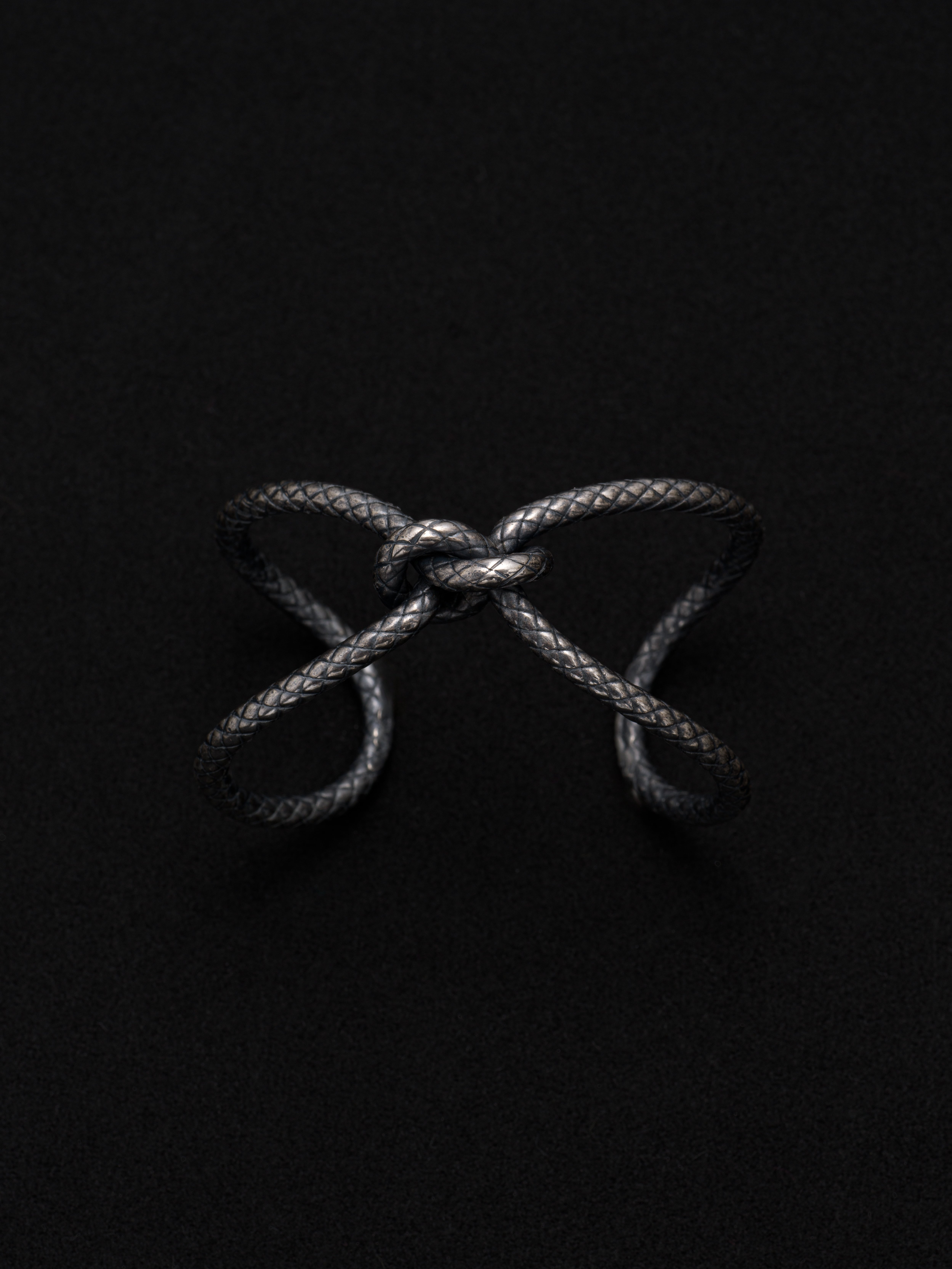 Bottega Veneta〈ボッテガヴェネタ〉のシルバー製バングル。ブランドを象徴するイントレチャートのデザイン。 イタリア製 シルバー925 内周|15.5cm アイテムナンバー|B1326