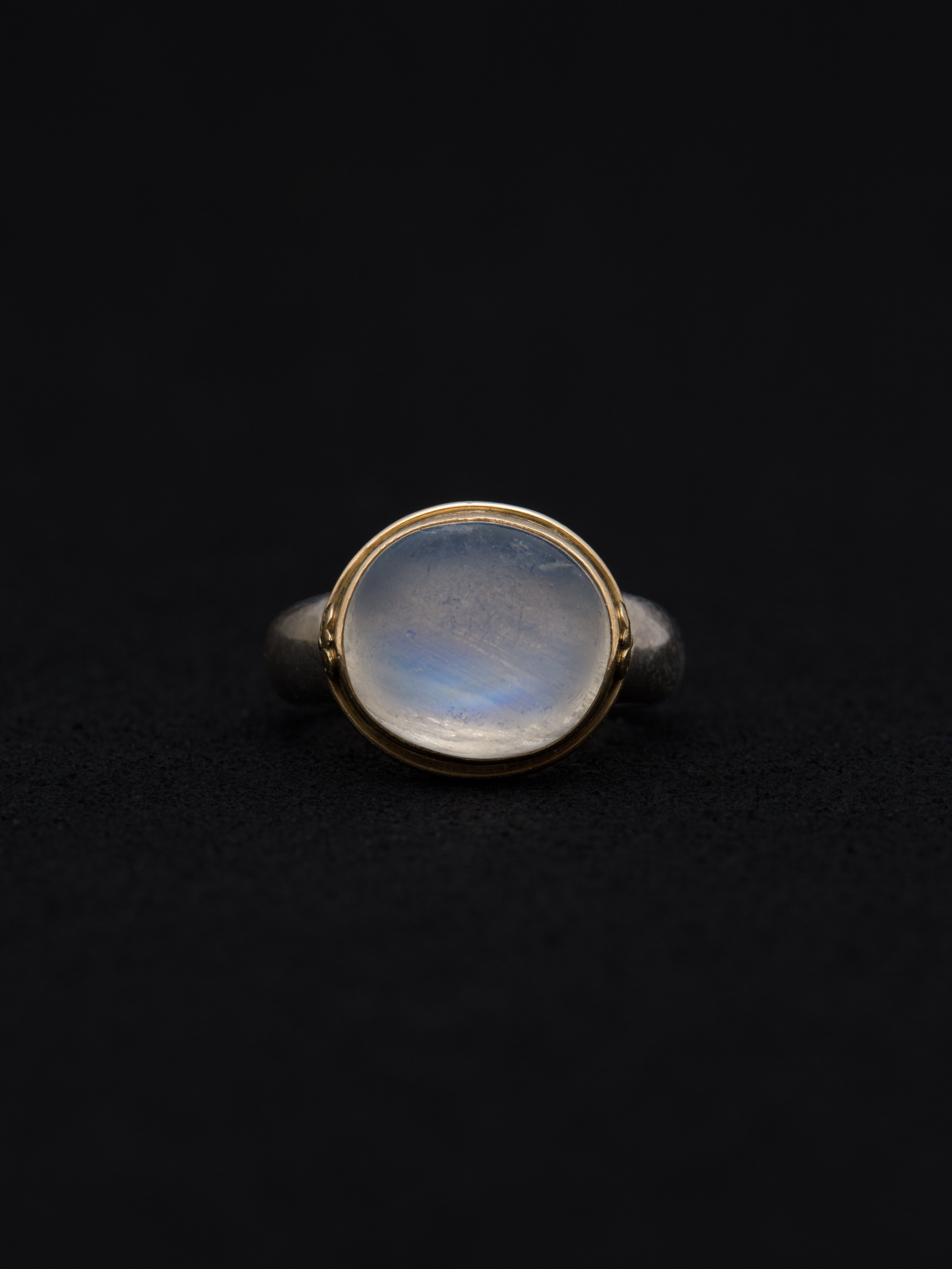 シルバーと18Kゴールド製のリング、トップにムーンストーンをセッティング。