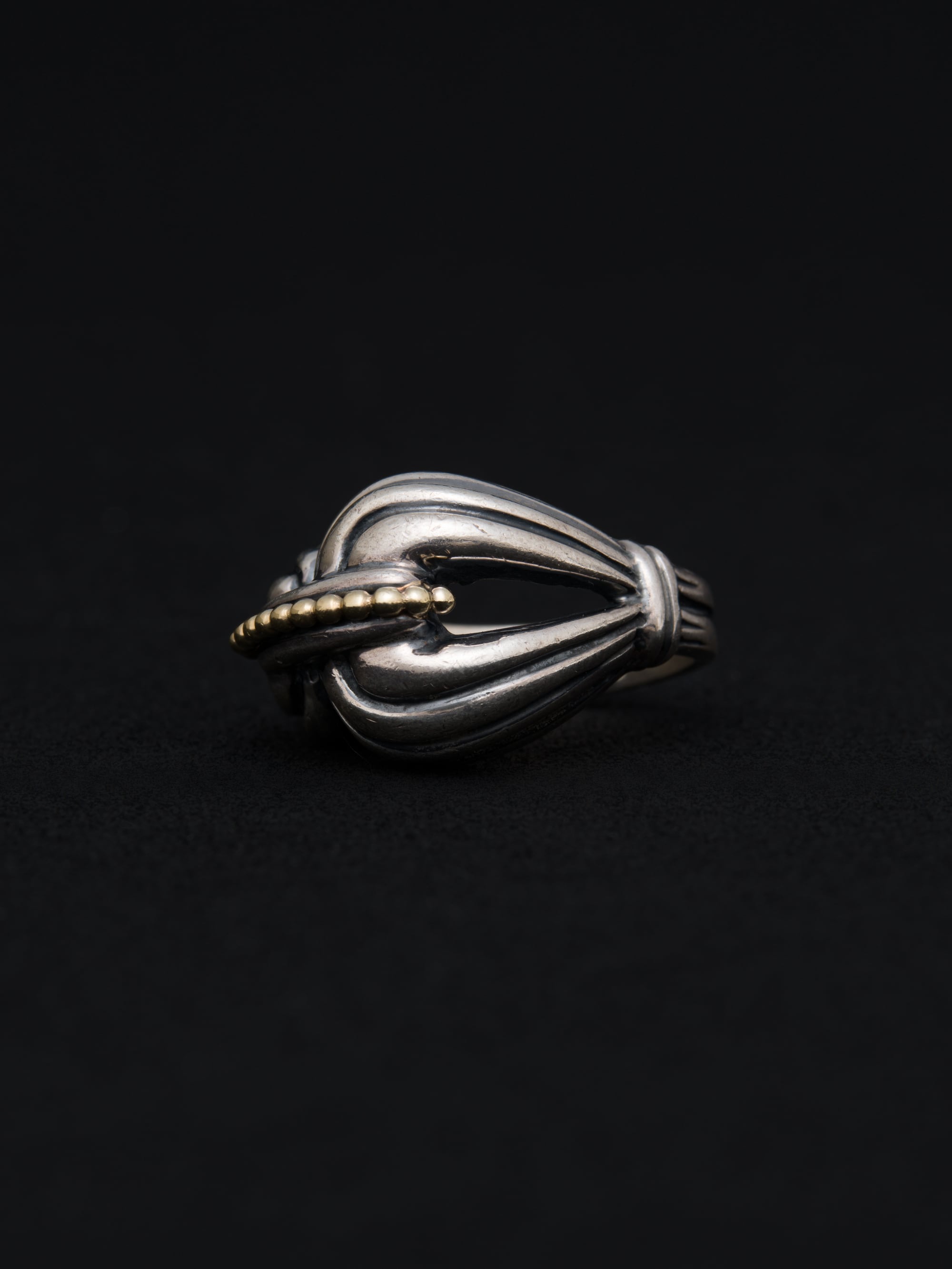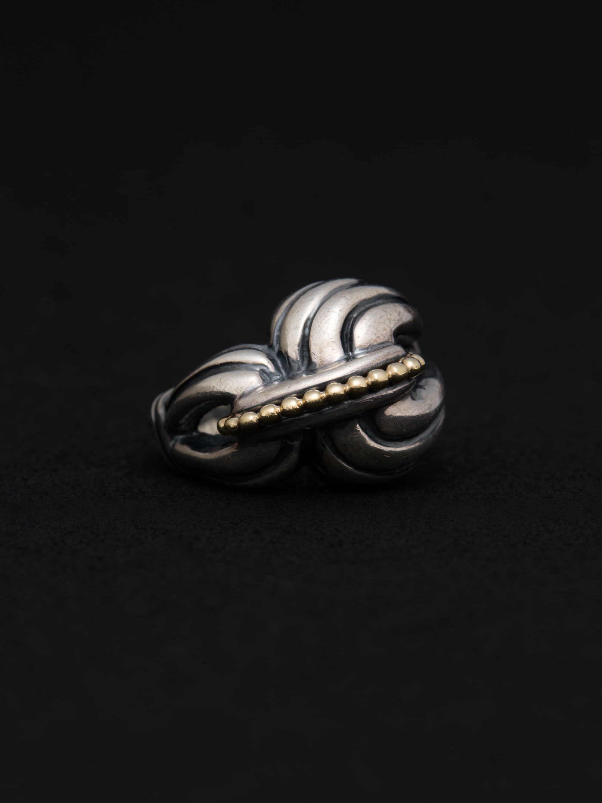 Lagos|ラゴス シルバーと18Kゴールド製のリング。 1977年にSteven Lagosによってアメリカで創業。その後、1984年にブランドの代名詞であるCaviarコレクションを確立しました。イノベーションをブランドのテーマに掲げ、新しいテクノロジーや素材を積極的にジュエリーに取り入れています。 アメリカ製 シルバー925|18Kゴールド サイズ|JP 13 アイテムナンバー|R2383