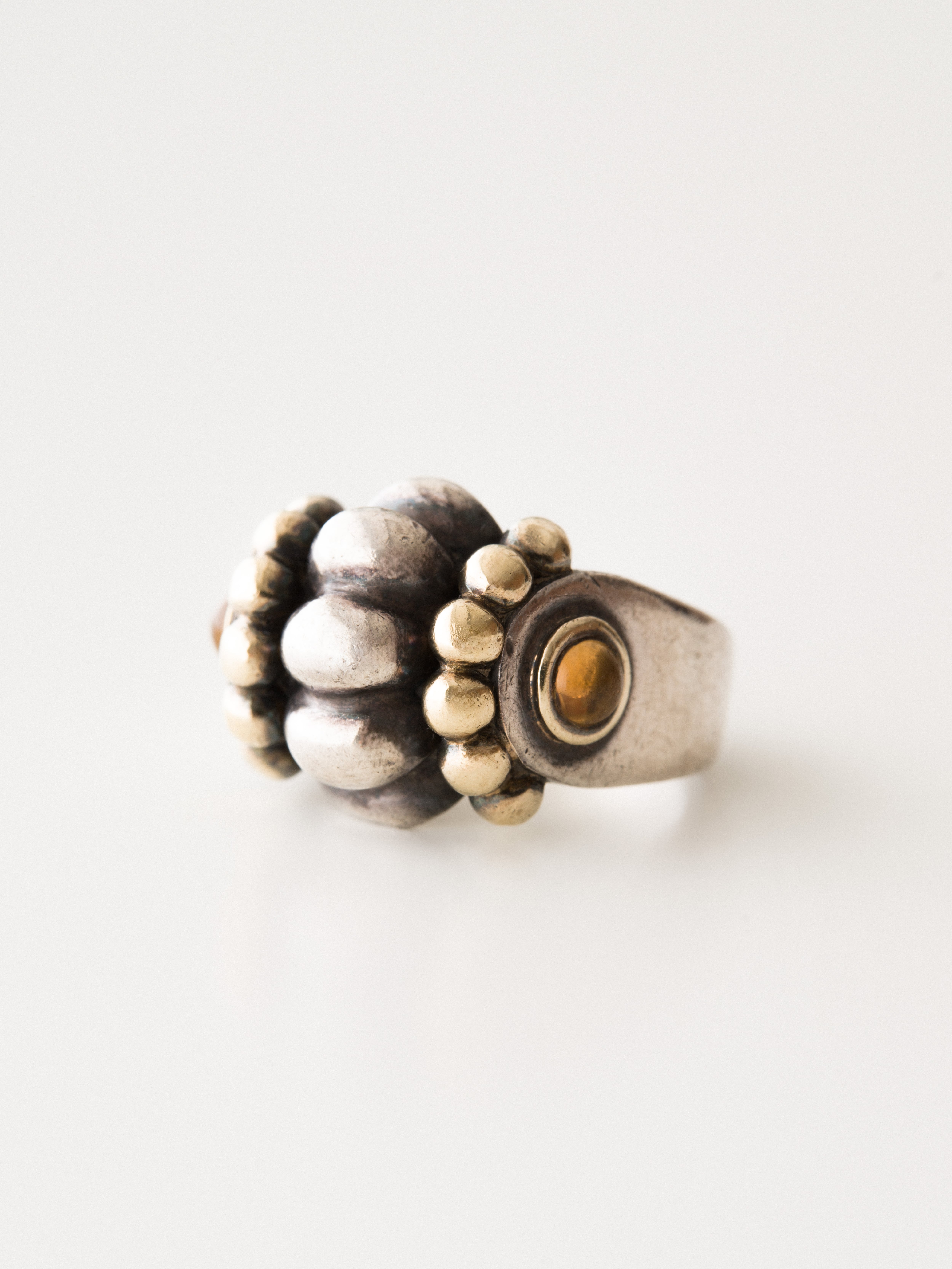 Lagos|ラゴス シルバーと18Kゴールド製のリング、サイトに2つのシトリンをセッティング。 1977年にSteven Lagosによってアメリカで創業。その後、1984年にブランドの代名詞であるCaviarコレクションを確立しました。イノベーションをブランドのテーマに掲げ、新しいテクノロジーや素材を積極的にジュエリーに取り入れています。 アメリカ製 シルバー925|18Kゴールド|シトリン サイズ|JP 13.5 アイテムナンバー|R2382