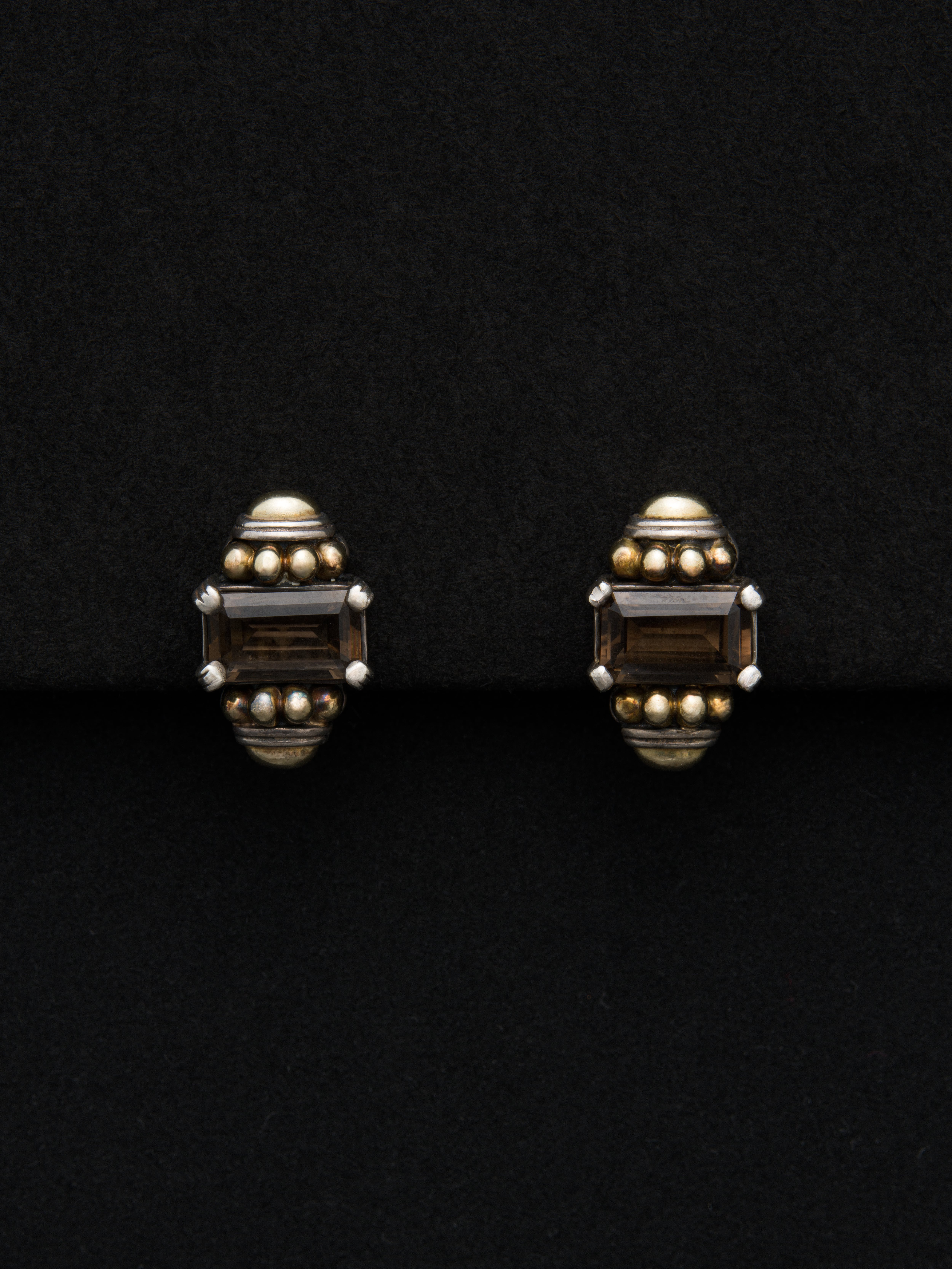 シルバーと18Kゴールド製のピアス、スモーキークォーツをセッティング。