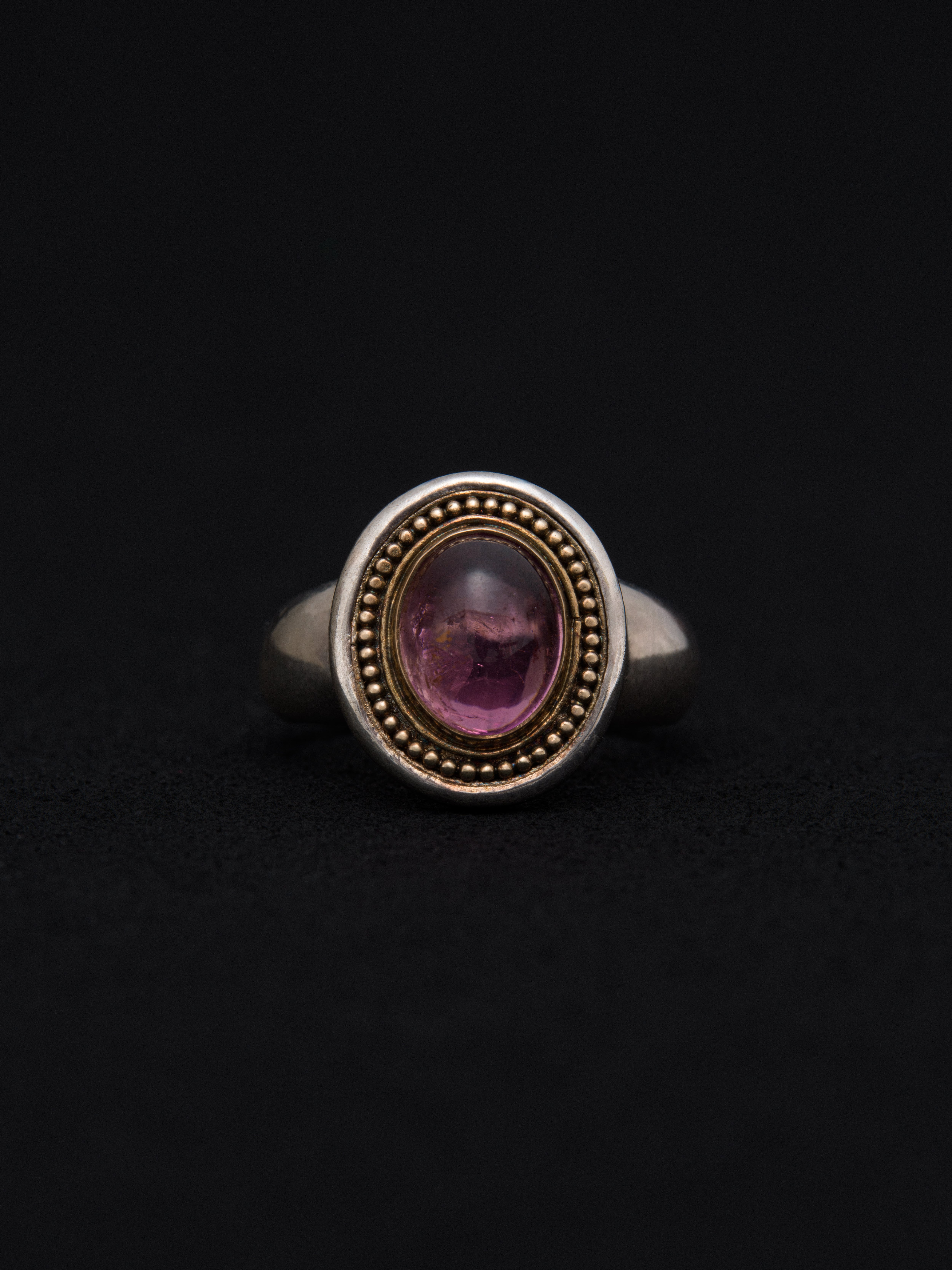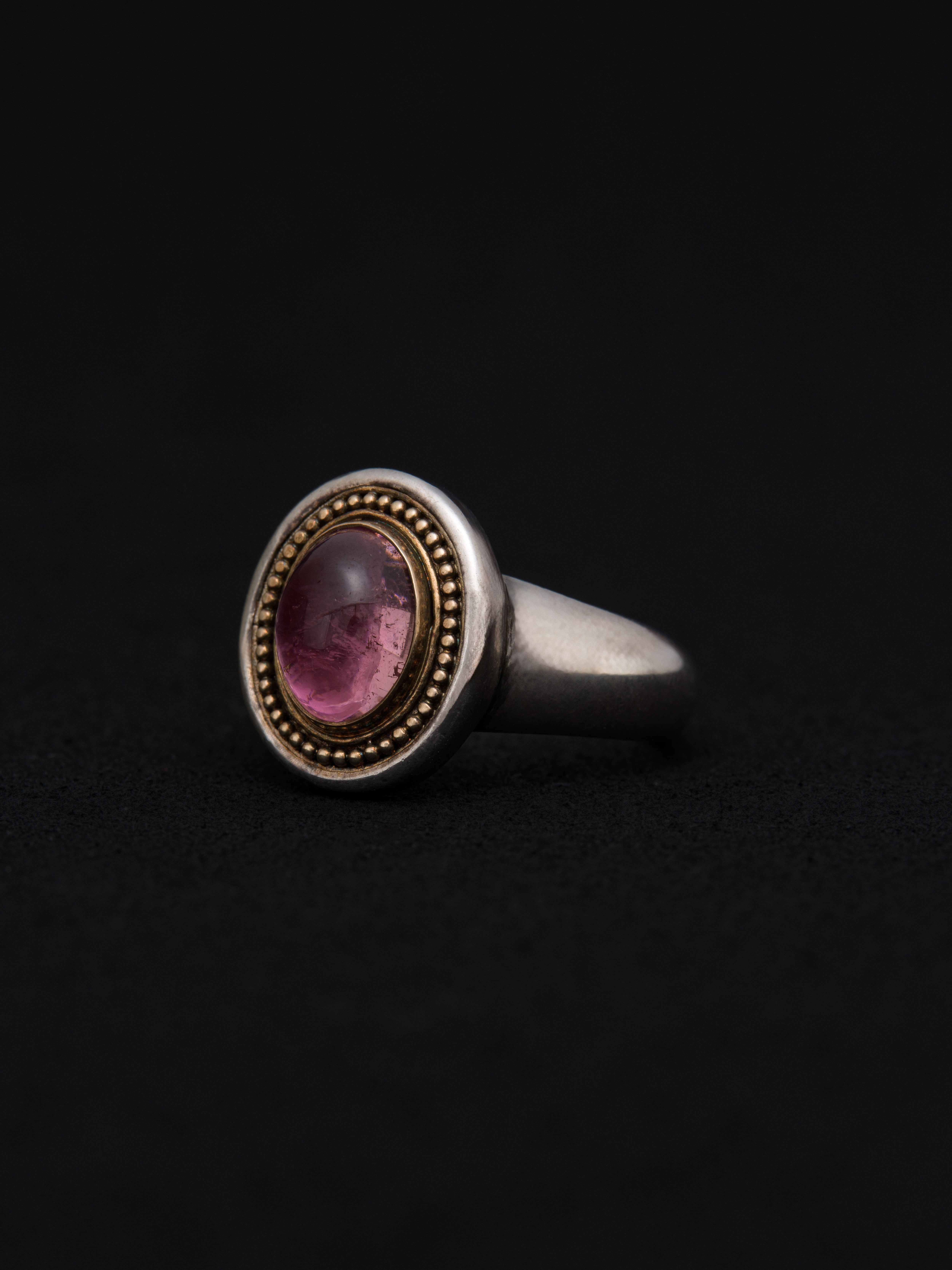シルバーと18Kゴールド製のリング、トップにトルマリンをセッティング。