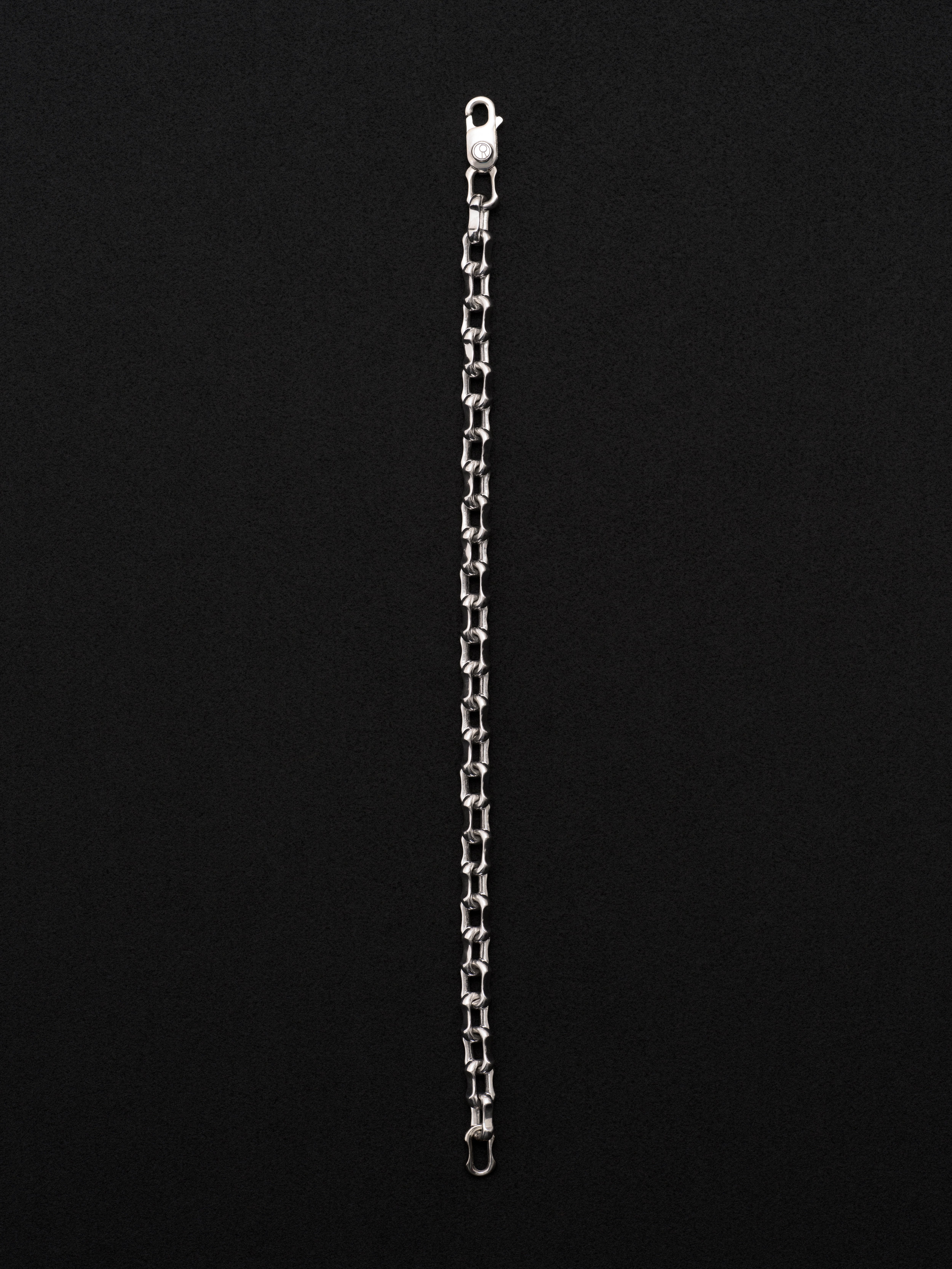 RHODES|ローズ 18Kホワイトゴールド製のブレスレット。 ローズは2021年にファビュラスサウンズのディレクター、吉田量によって設立したブランド。インスピレーションをキーワードに、多彩なデザインのジュエリーを展開。 日本製 18Kホワイトゴールド 内周 : 16.5cm|幅 : 5.7mm アイテムナンバー|RHODES036
