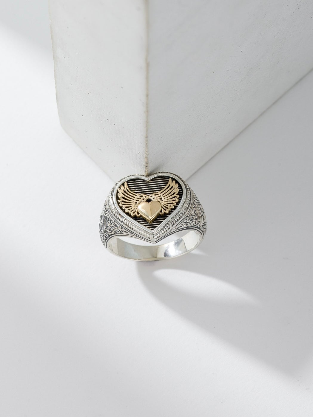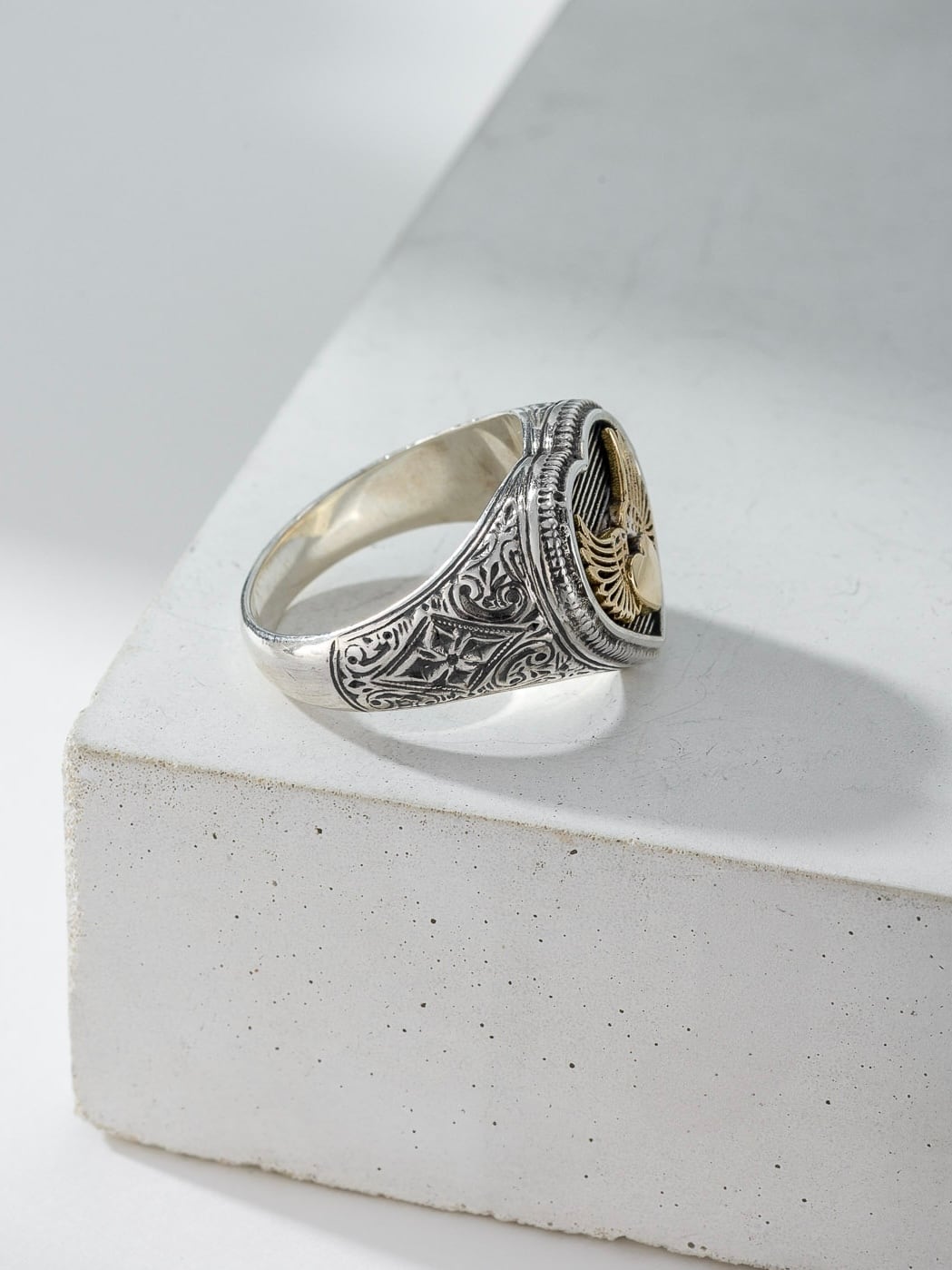 Gerochristo|ジェロクリスト シルバーと18Kゴールド製のリング。 ギリシアに拠点を置くジェロクリストは、古典芸術様式であるビザンチンに影響を受けた伝統的な装飾技術を用い、クラシックとモダンが調和する独自のデザインでジュエリーを創り上げています。 ギリシア製 シルバー925|18Kゴールド サイズ|JP 16 アイテムナンバー|GR139