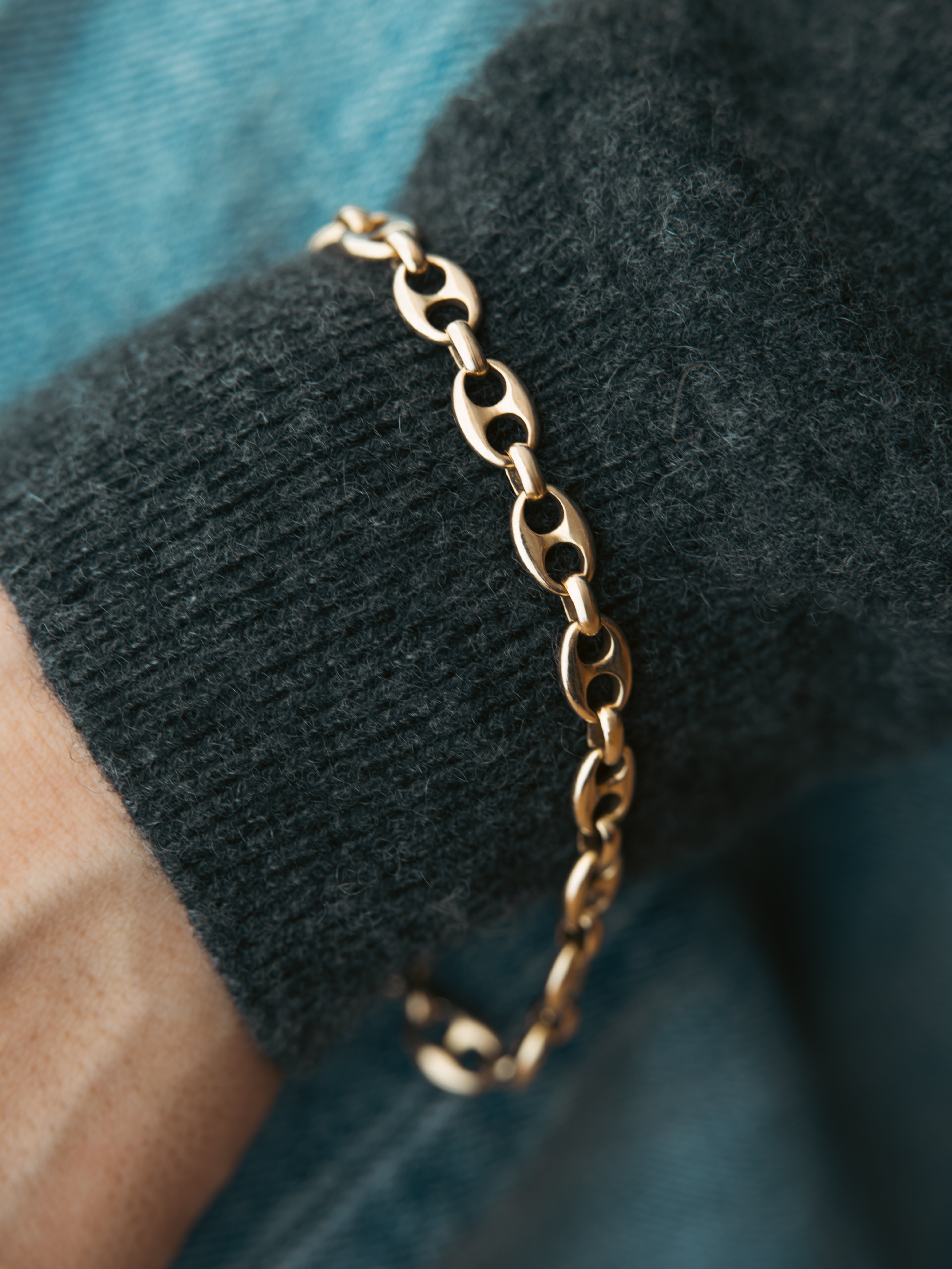 18Kゴールドの質量感が手元に静かに宿り、装飾性をそぎ落としたリンクの連なりが、時代に流されない強さを示します。