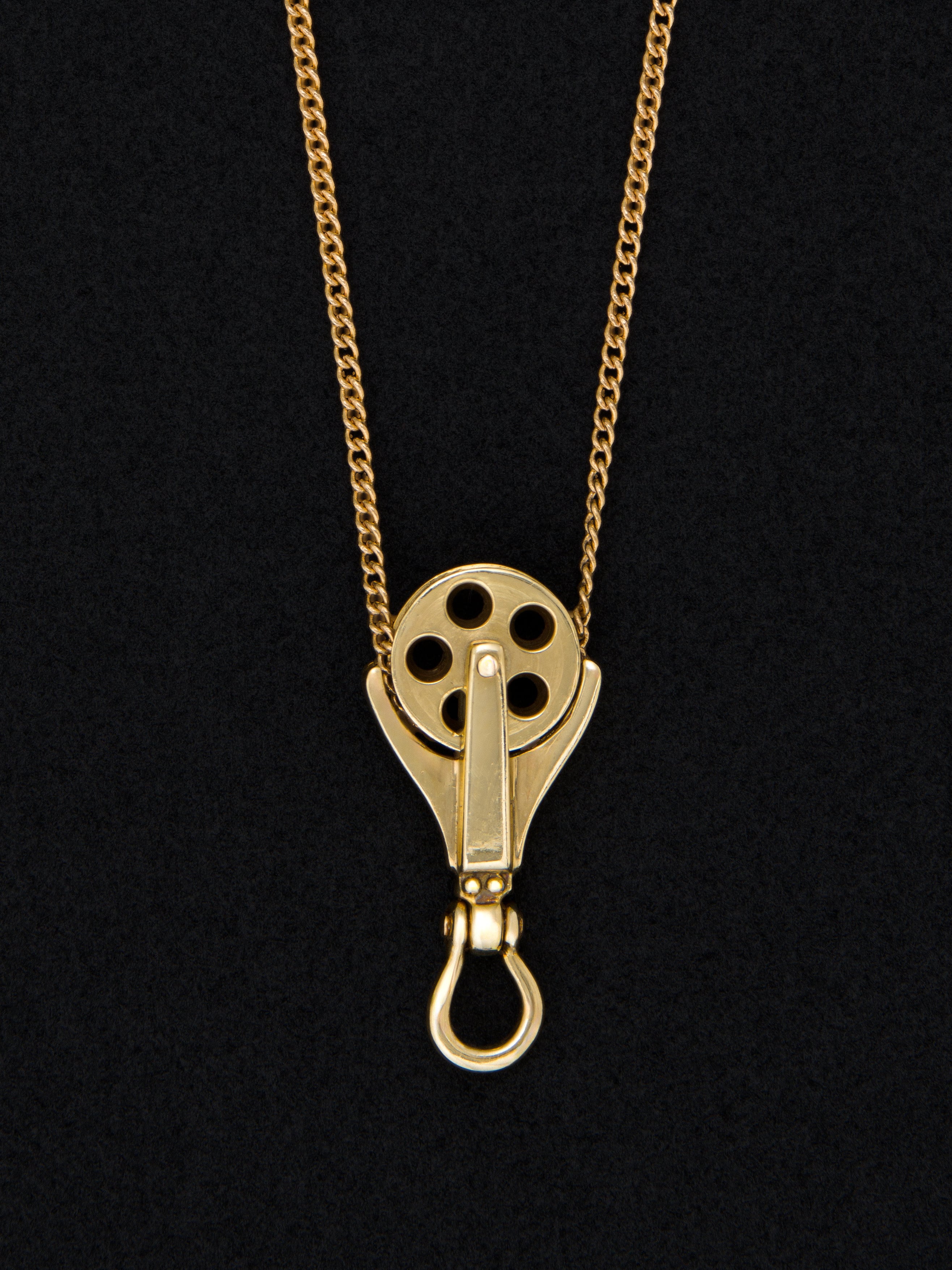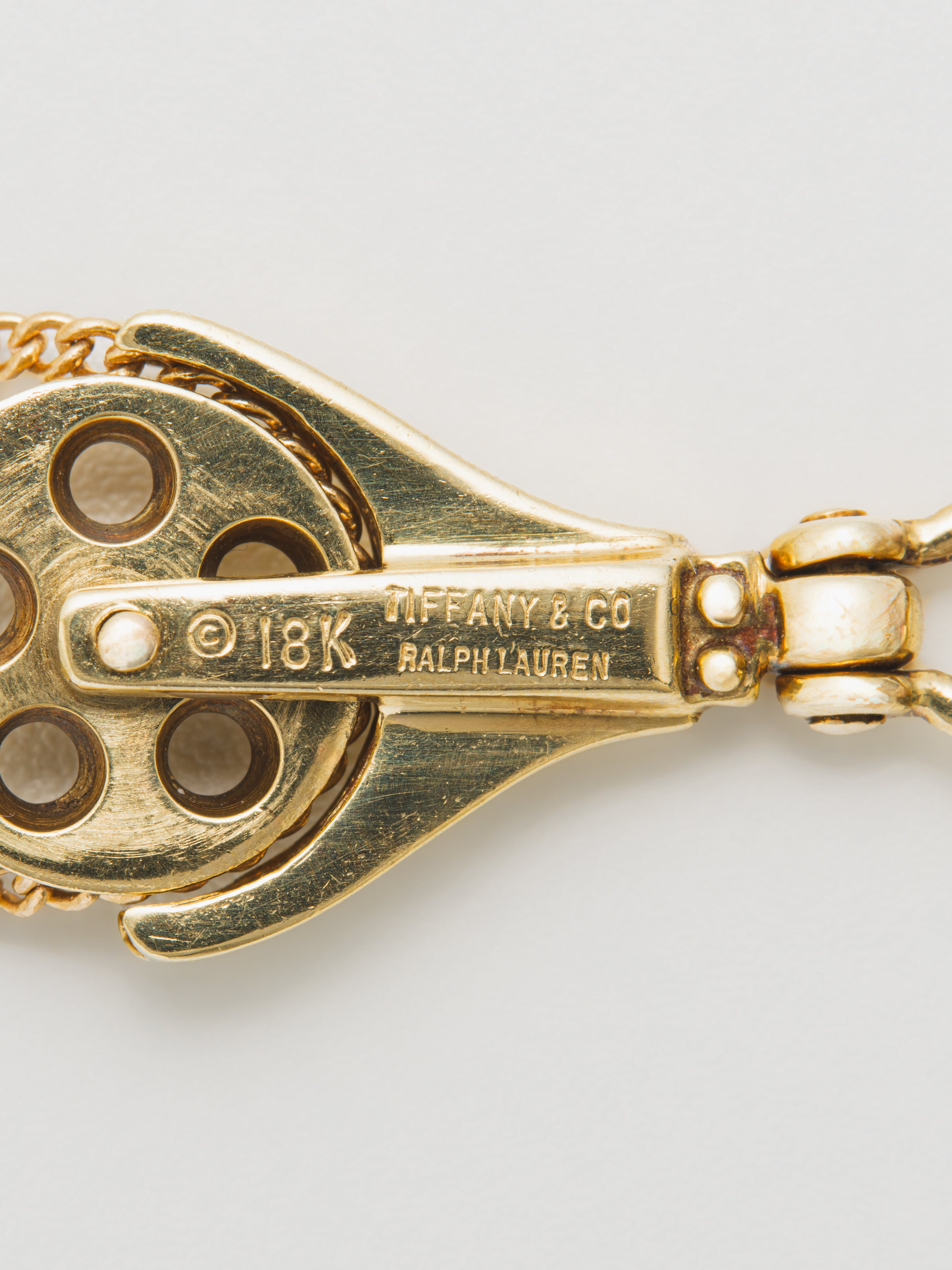 Tiffany & Co.〈ティファニー〉とRalph Lauren〈ラルフローレン〉の18Kゴールド製ネックレス、滑車のモチーフ。 アメリカ製 18Kゴールド ペンダント : 2.7cm × 1.3cm|ネックレス : 51cm アイテムナンバー|N561