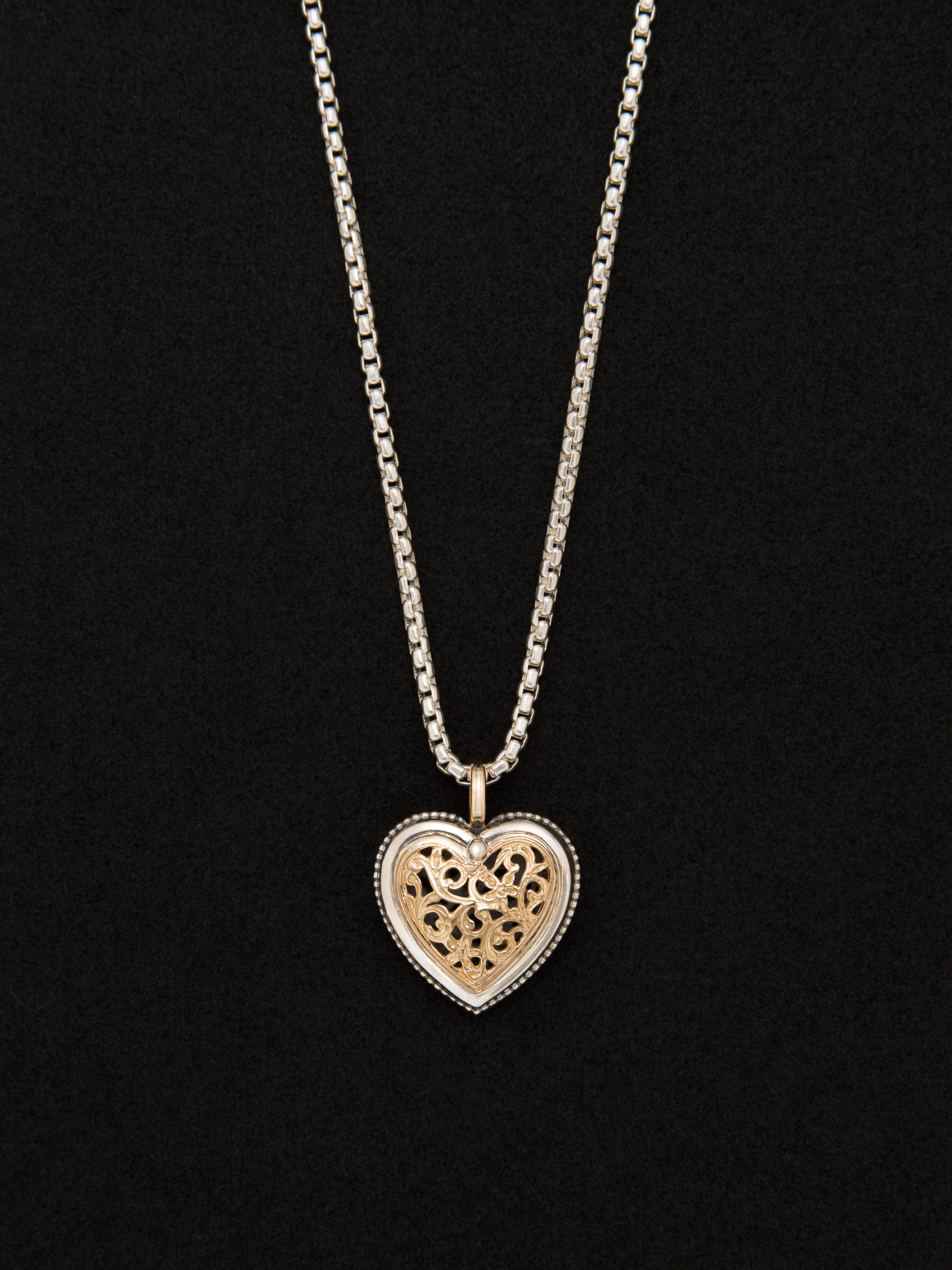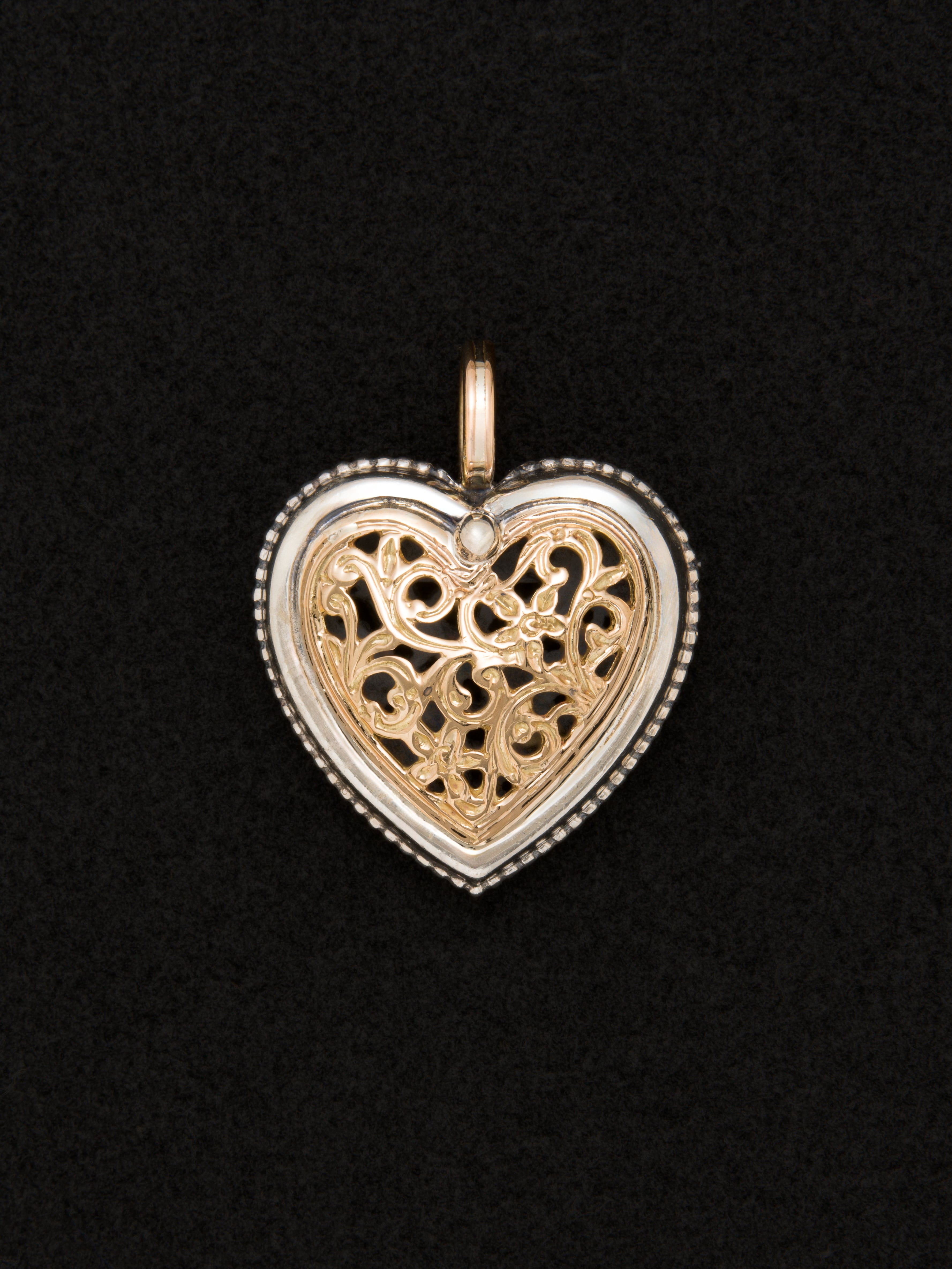 シルバーと18Kゴールド製のペンダント、ハートモチーフ。