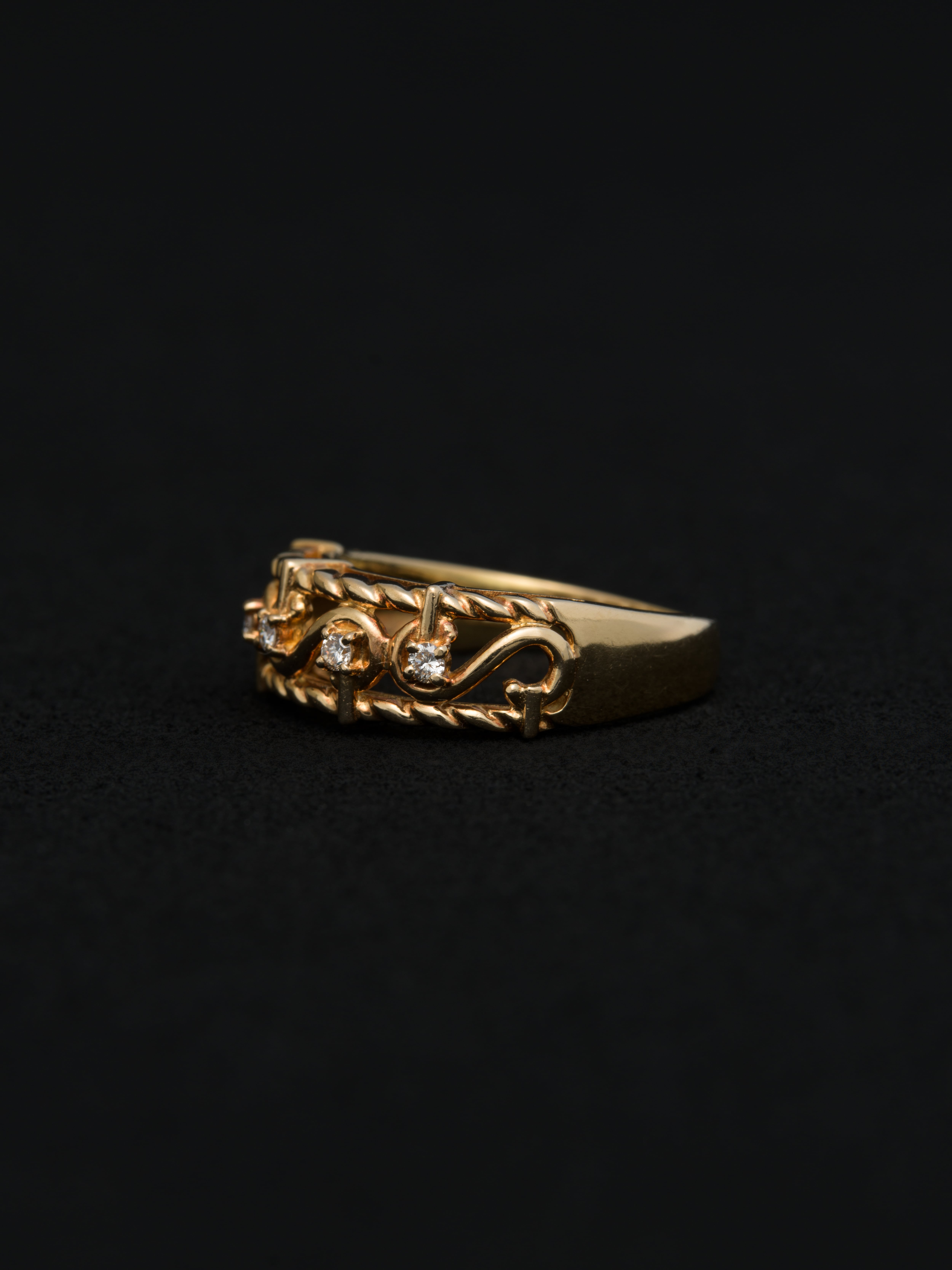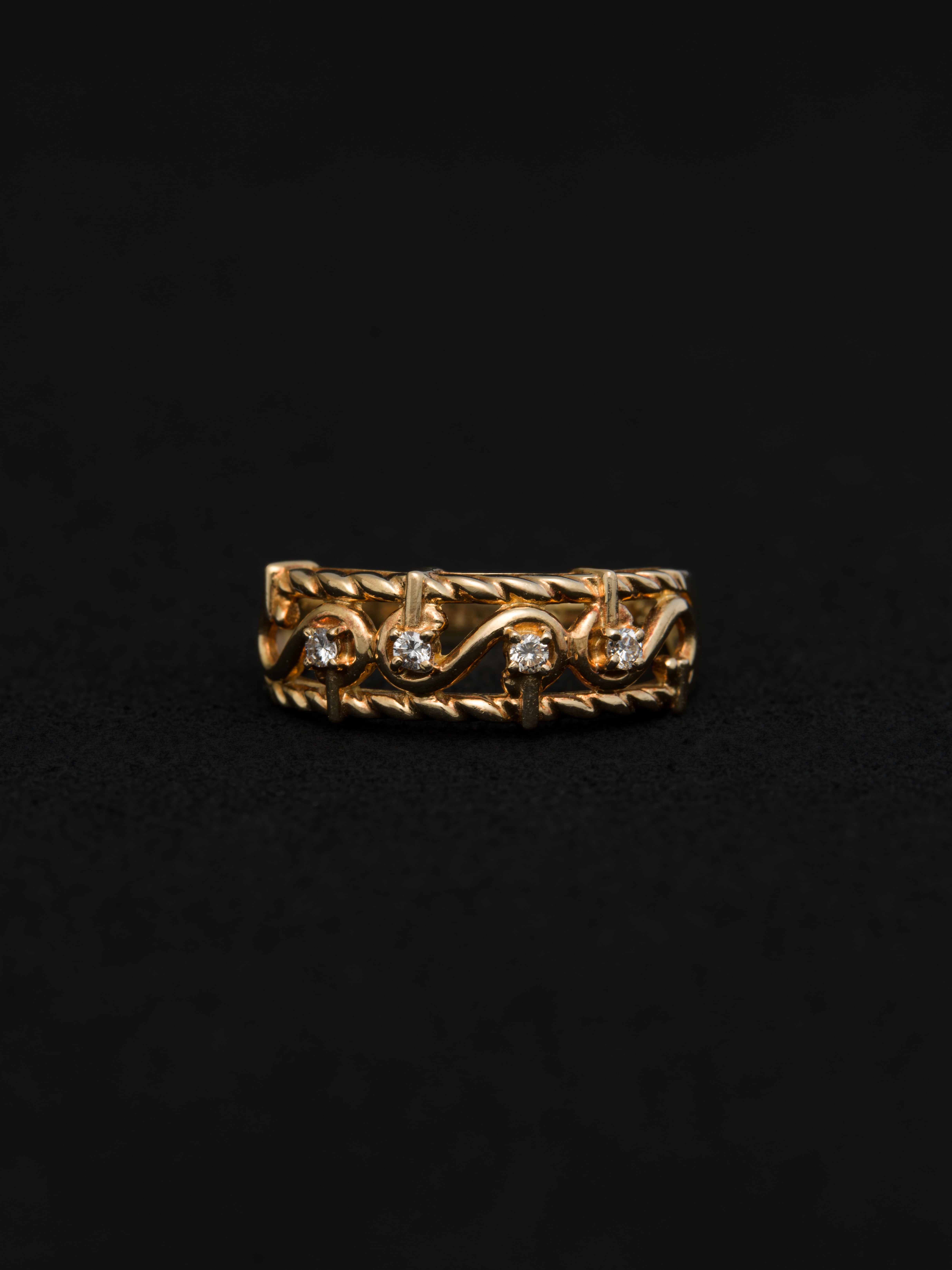 Celine〈セリーヌ〉の18Kゴールド製リング、4つのダイヤモンドをセッティング。 フランス製 18Kゴールド|ダイヤモンド サイズ|JP 13 アイテムナンバー|R2498