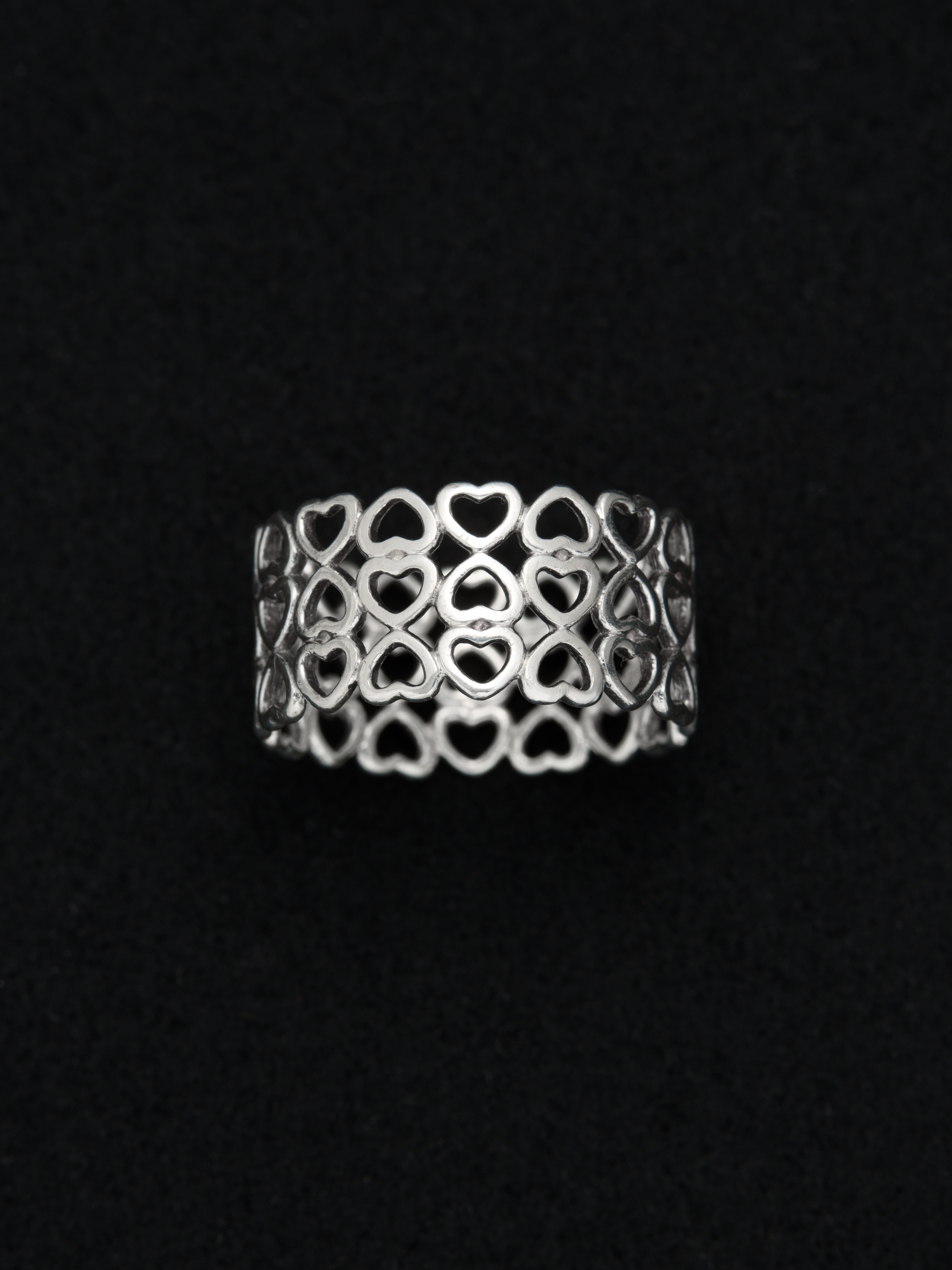 Tiffany & Co.〈ティファニー〉のシルバー製のバンドリング、ハートのモチーフ、パロマピカソによるデザイン。 アメリカ製 シルバー925 サイズ : JP 15|幅 : 1cm アイテムナンバー| R2502