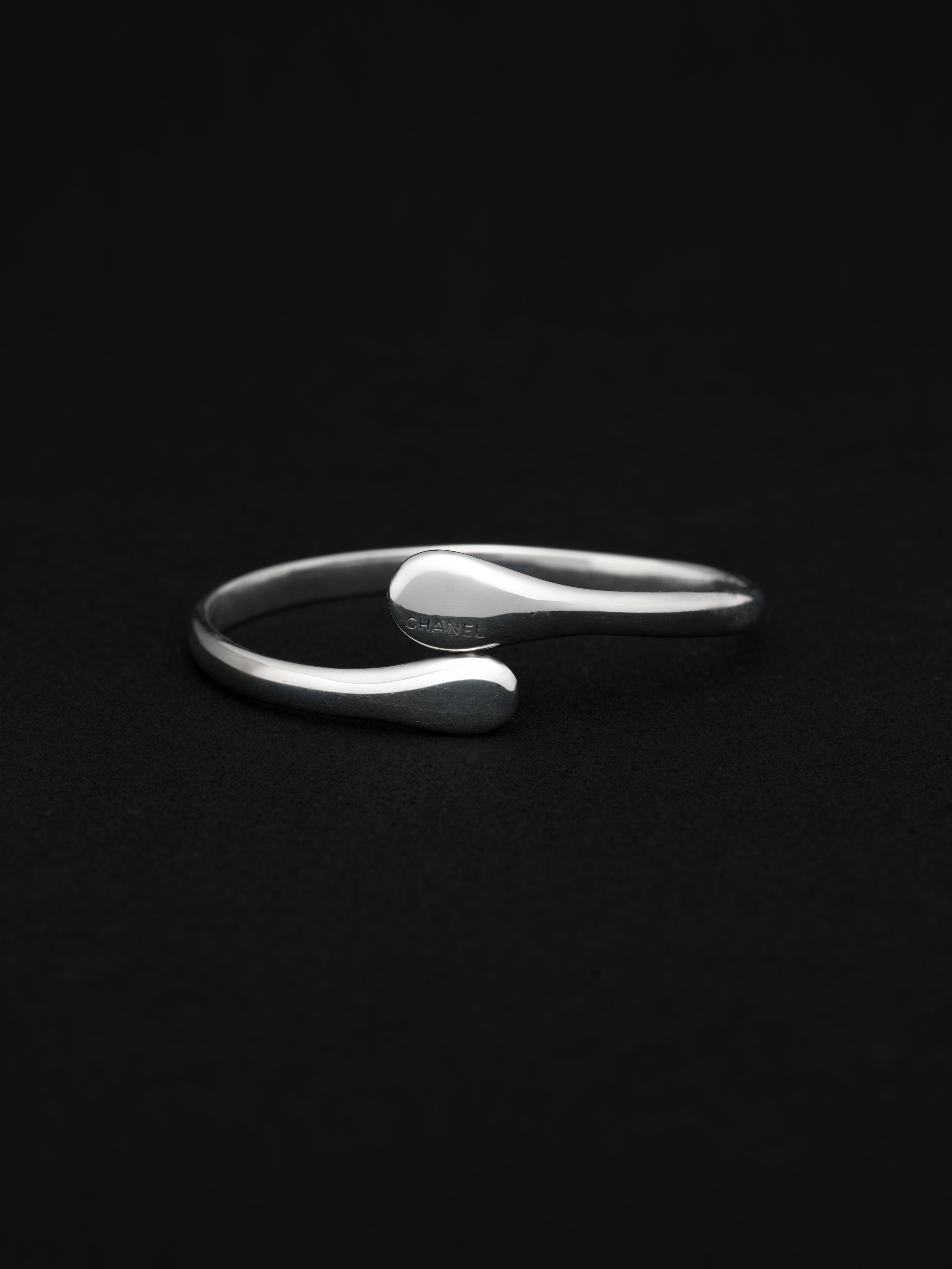 CHANEL〈シャネル〉のシルバー製バングル、スリップオンタイプ。 フランス製 シルバー925 内周 : 20cm|幅 : 5.5-21.5mm アイテムナンバー|B1370
