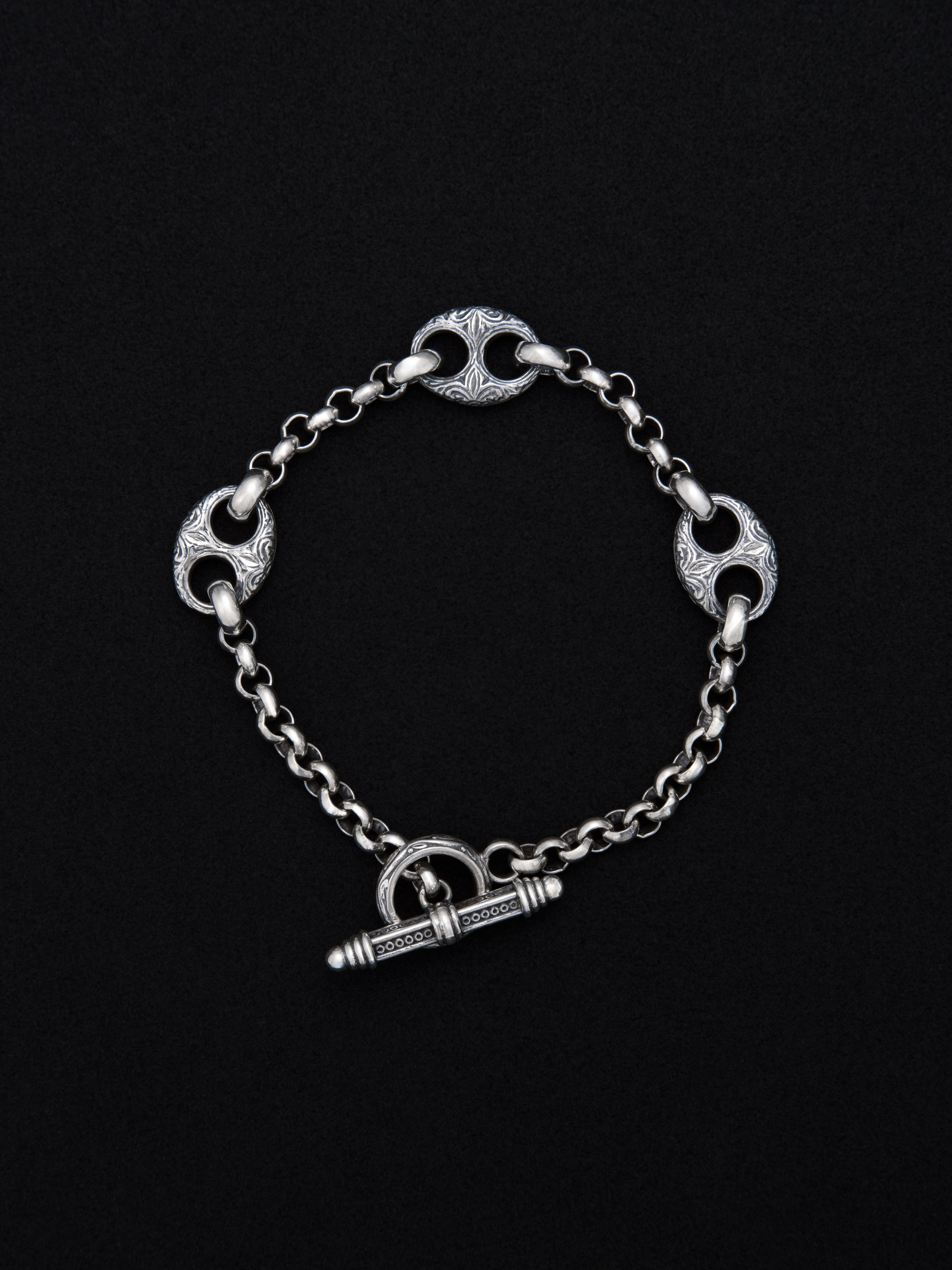 Gerochristo|ジェロクリスト シルバー製のブレスレット。 ギリシアに拠点を置くジェロクリストは、古典芸術様式であるビザンチンに影響を受けた伝統的な装飾技術を用い、クラシックとモダンが調和する独自のデザインでジュエリーを創り上げています。 ギリシア製 シルバー925 内周 : 18cm|幅:0.2-1.1cm アイテムナンバー|GB044