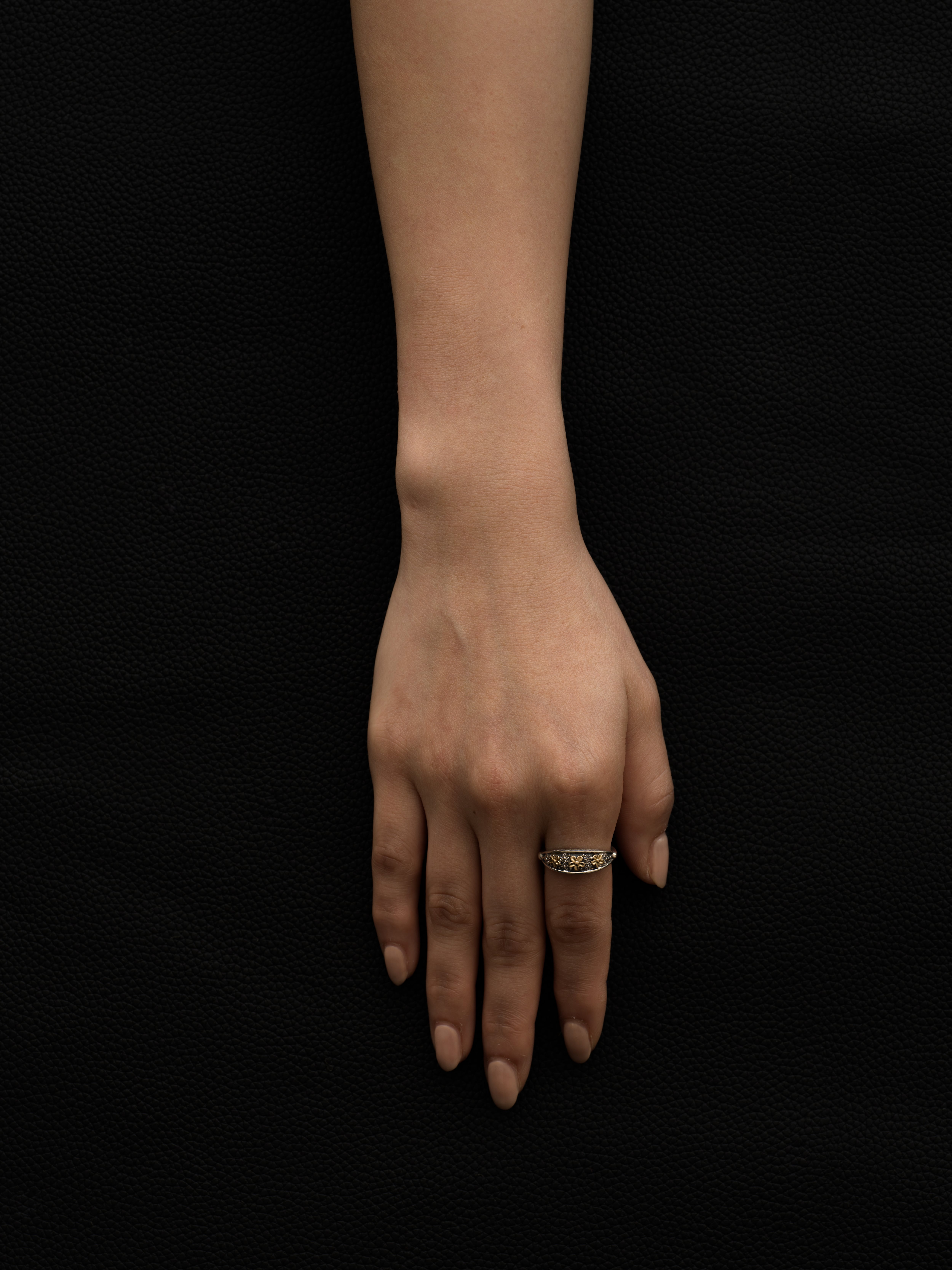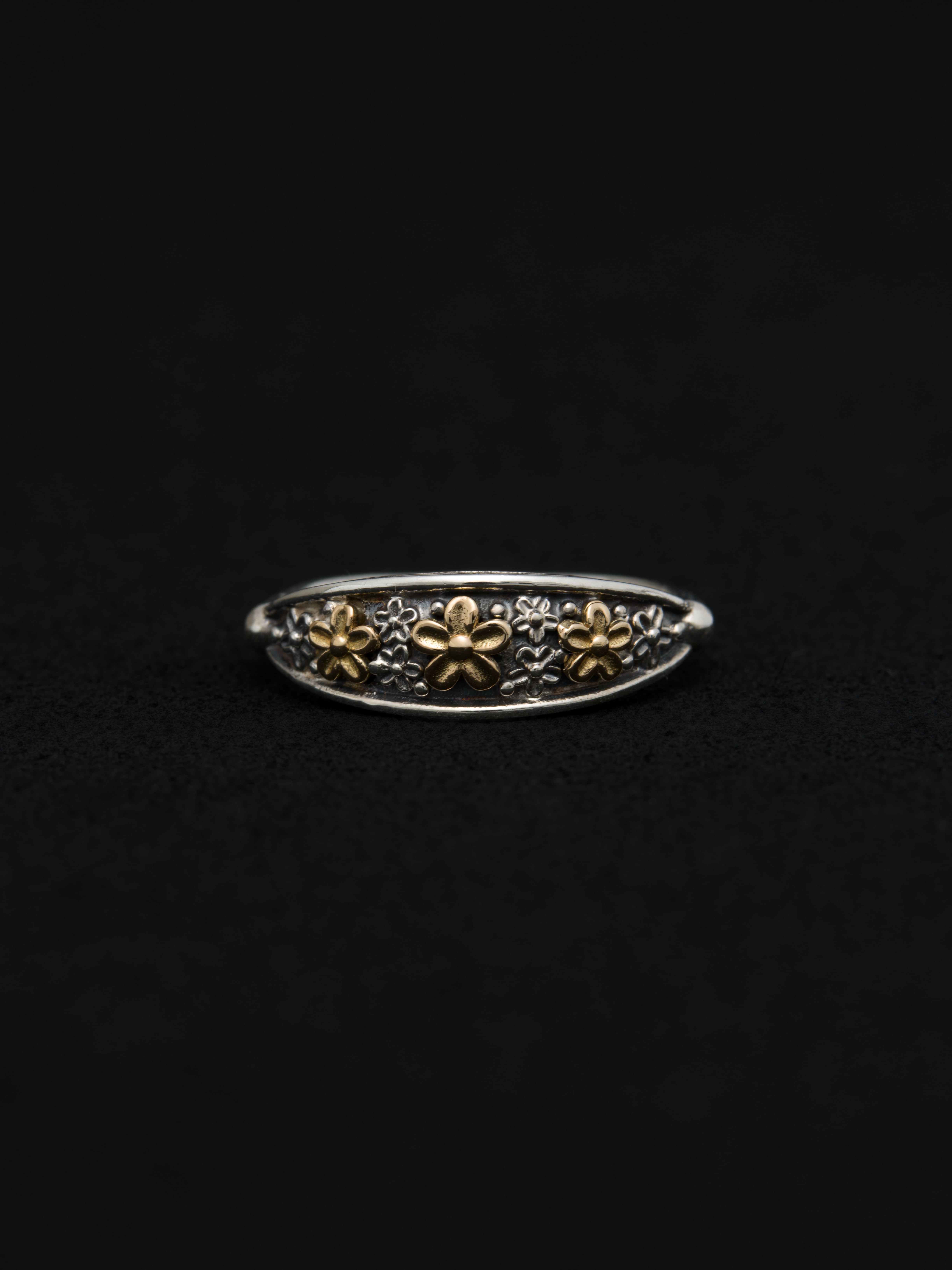 Gerochristo|ジェロクリスト シルバーと18Kゴールド製のリング、フラワーモチーフ。 ギリシアに拠点を置くジェロクリストは、古典芸術様式であるビザンチンに影響を受けた伝統的な装飾技術を用い、クラシックとモダンが調和する独自のデザインでジュエリーを創り上げています。 ギリシア製 シルバー925|18Kゴールド アイテムナンバー|GR137
