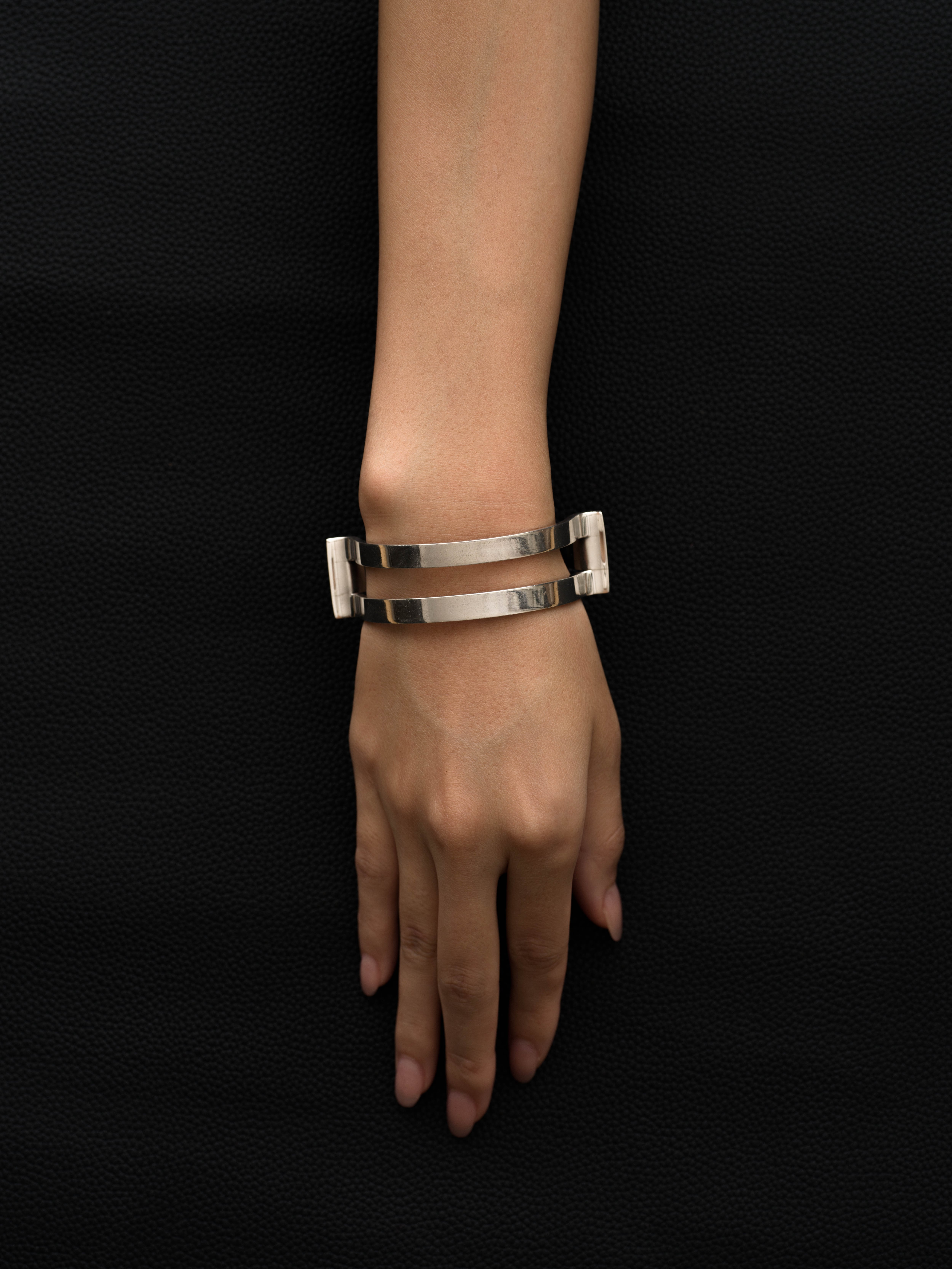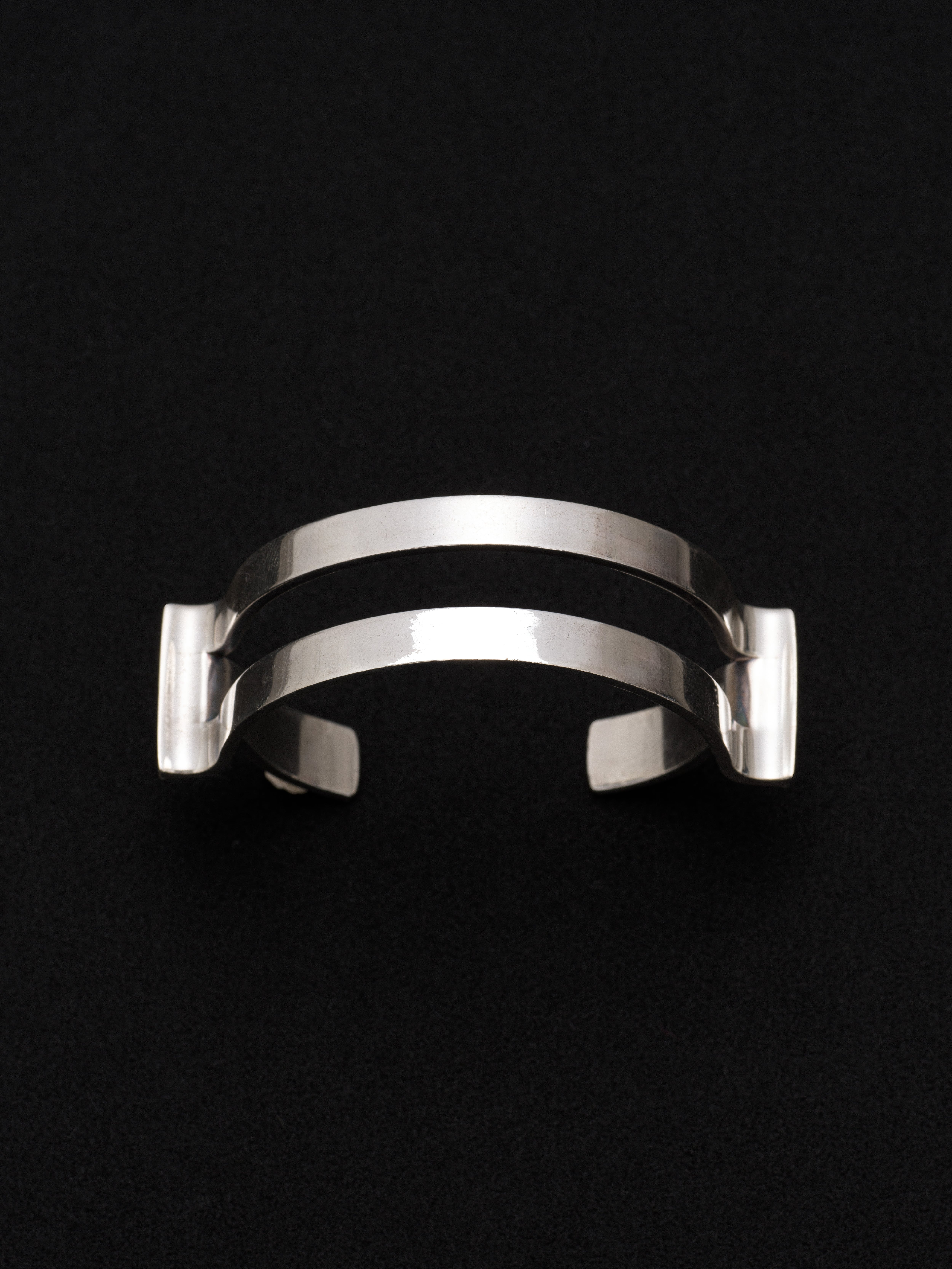 Georg Jensen|ジョージジェンセン シルバー製のバングル、ブランド所属のシルバースミス「Bent Gabrielsen」によるデザイン。 1904年にデンマークで創業されたジョージジェンセン。銀細工職人であるジョージジェンセン氏によってアトリエが開かれ、現在まで多くの有名デザイナーを輩出、20世紀の北欧デザインを牽引した世界的なブランドです。 デンマーク製 シルバー925 内周 : 18cm|幅 : 2.2cm アイテムナンバー|B411