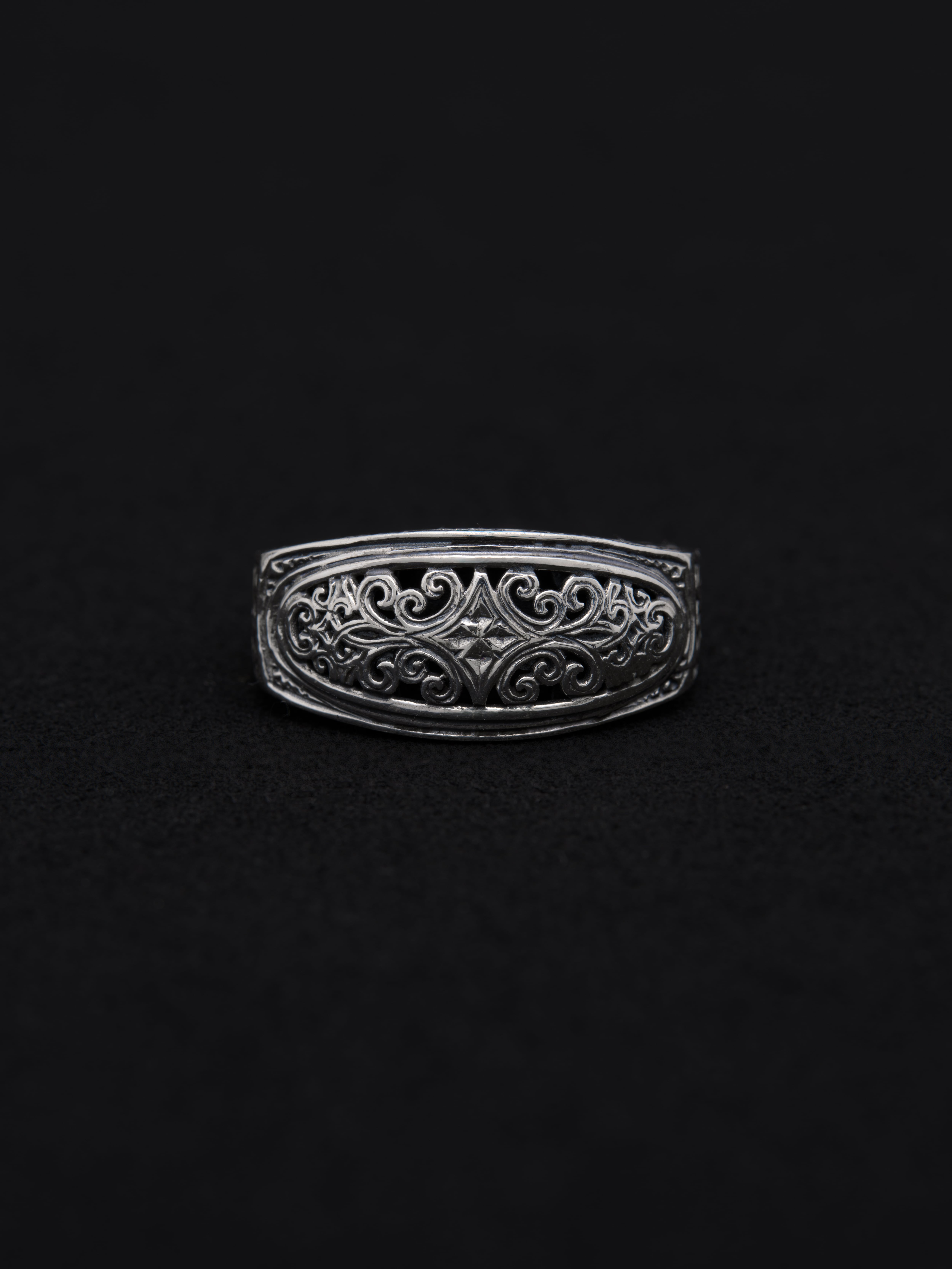 Gerochristo|ジェロクリスト シルバー製のリング。 ギリシアに拠点を置くジェロクリストは、古典芸術様式であるビザンチンに影響を受けた伝統的な装飾技術を用い、クラシックとモダンが調和する独自のデザインでジュエリーを創り上げています。 ギリシア製 シルバー925 アイテムナンバー|GR024