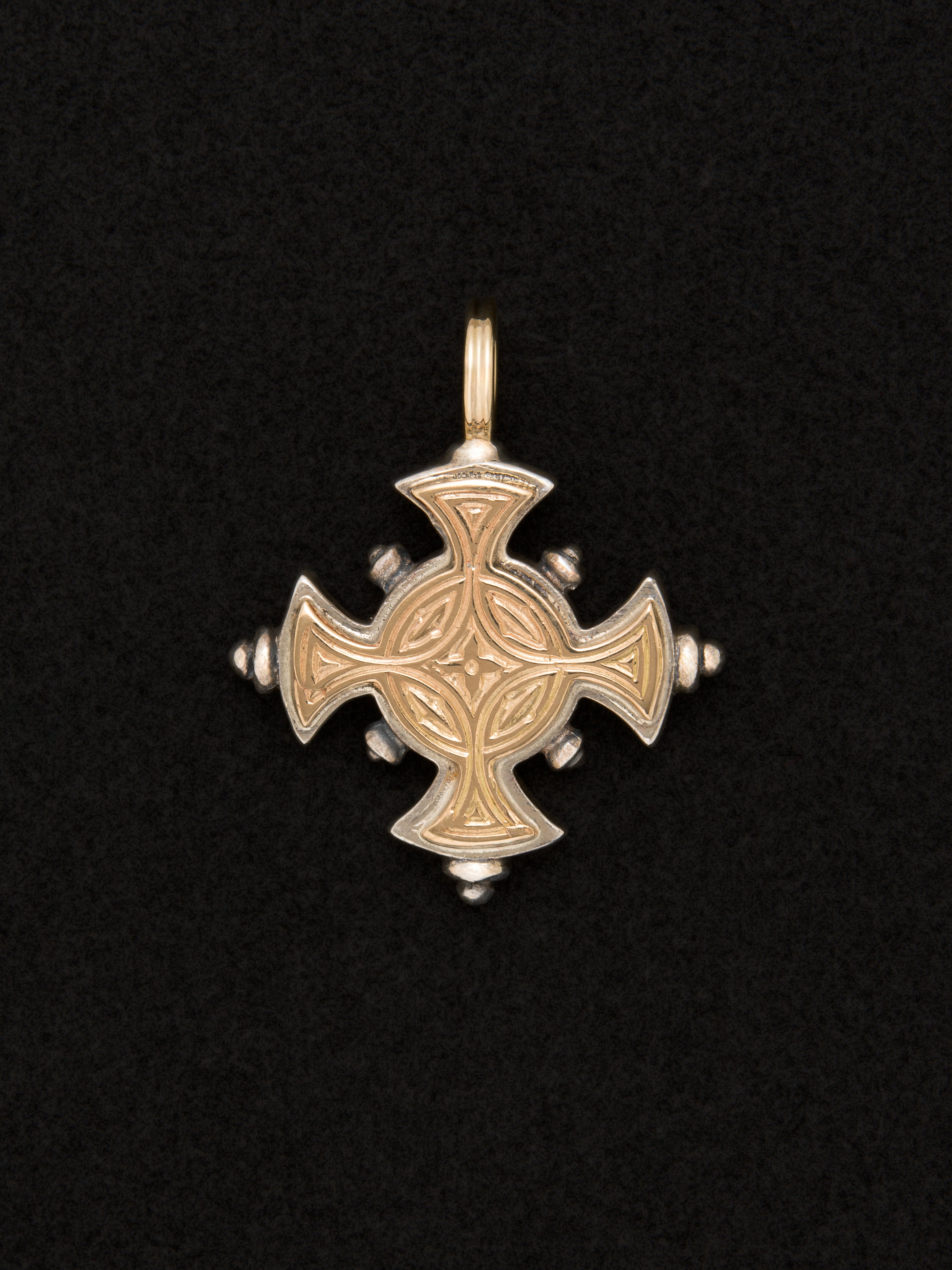 シルバーと18Kゴールド製のペンダント、クロスモチーフ。