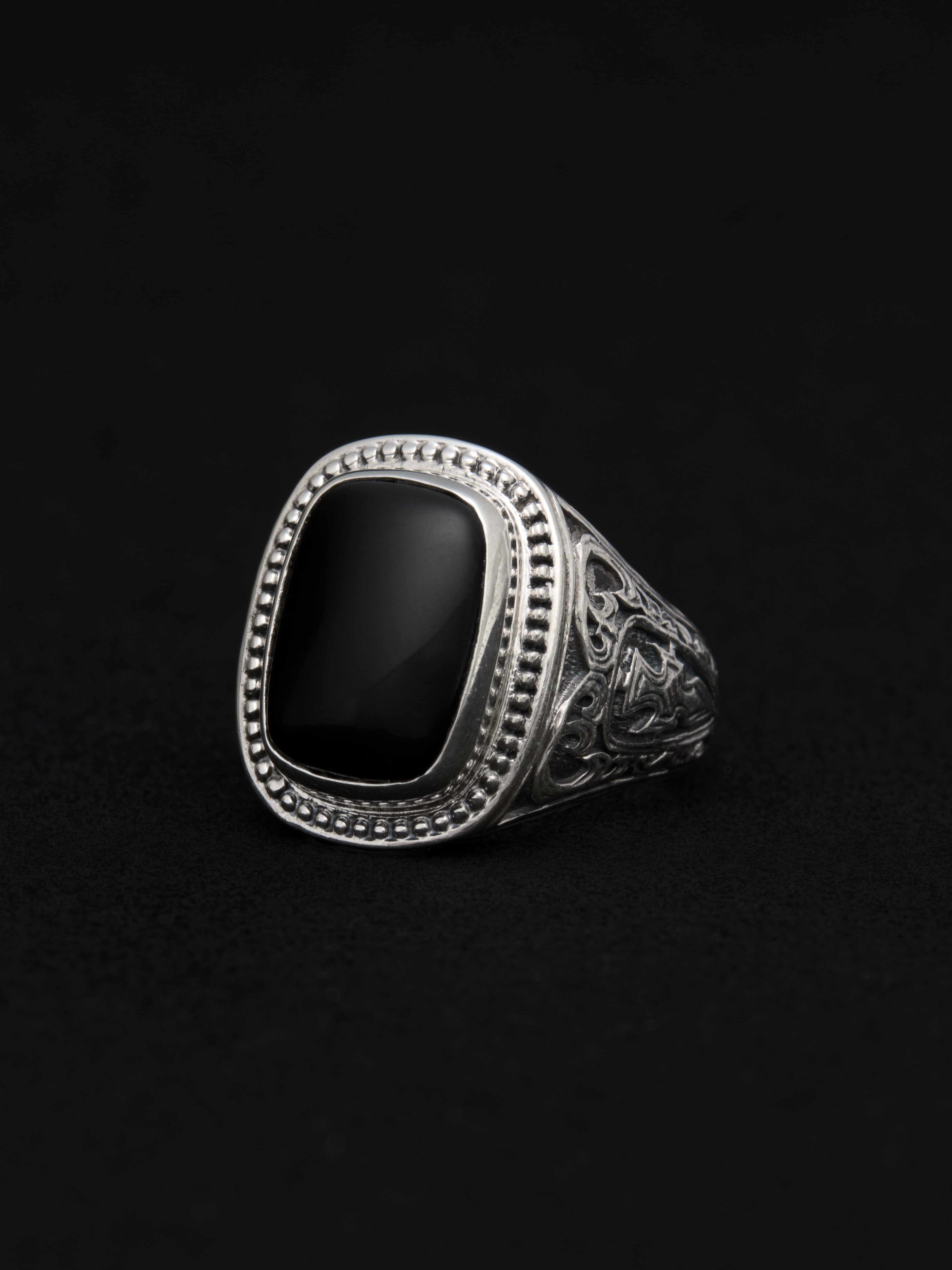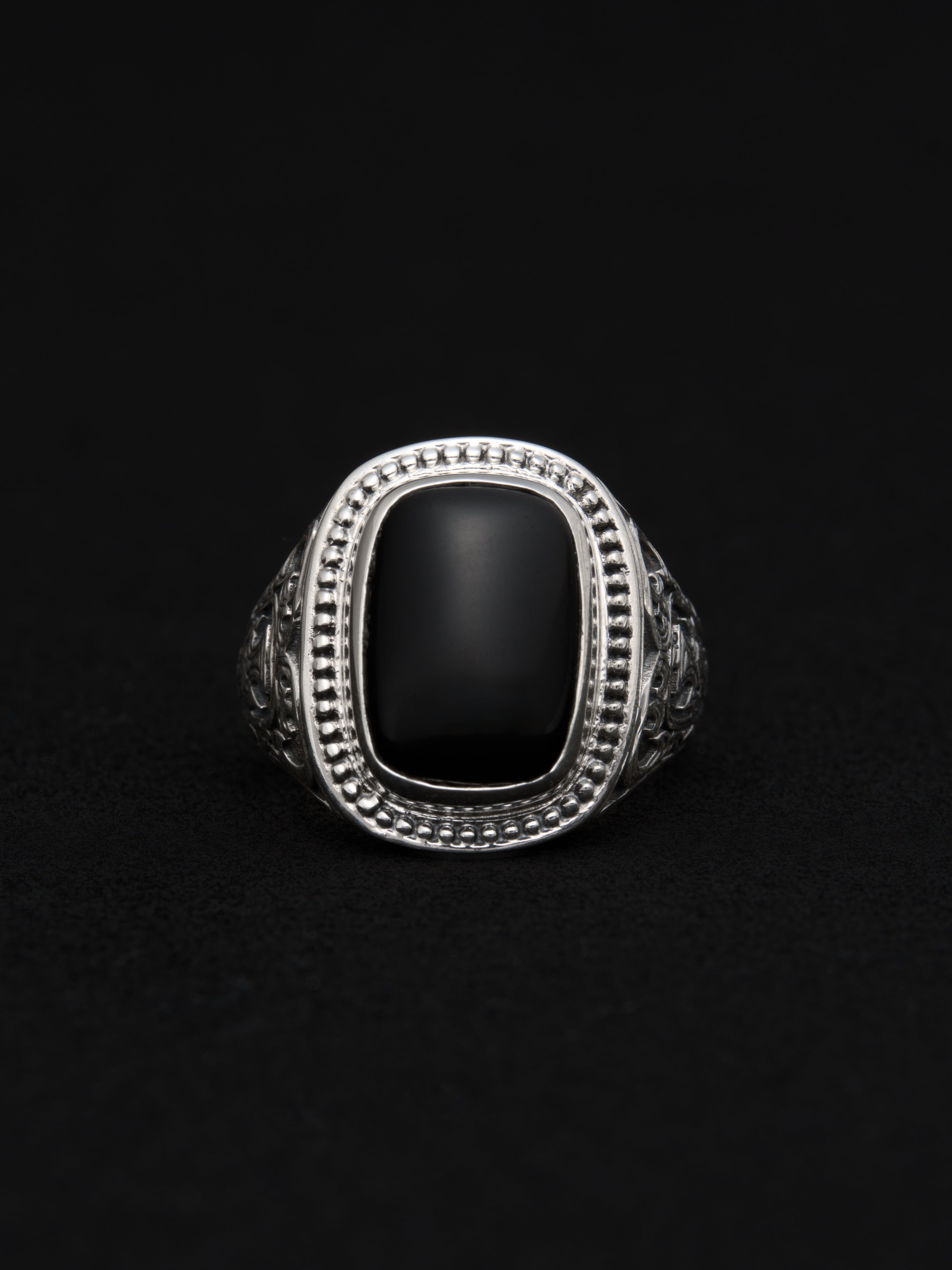 Gerochristo|ジェロクリスト シルバー製のリング、中央にオニキス。 ギリシアに拠点を置くジェロクリストは、古典芸術様式であるビザンチンに影響を受けた伝統的な装飾技術を用い、クラシックとモダンが調和する独自のデザインでジュエリーを創り上げています。 ギリシア製 シルバー925|オニキス サイズ|JP 18 アイテムナンバー|GR038