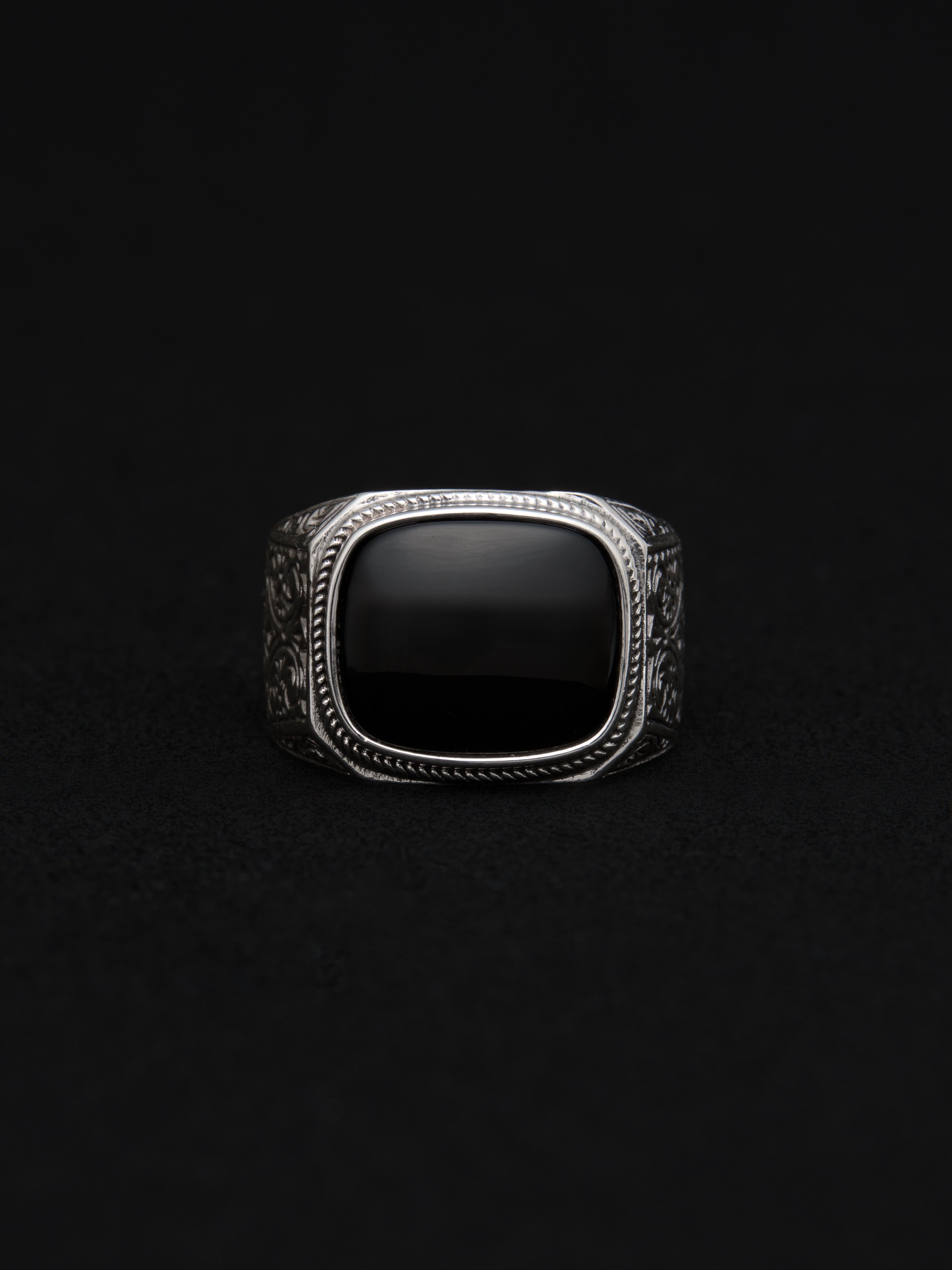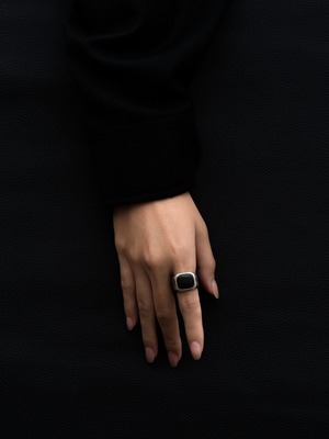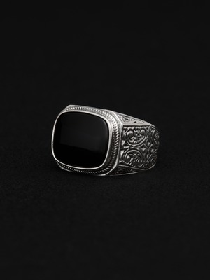 Gerochristo|ジェロクリスト シルバー製のリング、中央にオニキス。 ギリシアに拠点を置くジェロクリストは、古典芸術様式であるビザンチンに影響を受けた伝統的な装飾技術を用い、クラシックとモダンが調和する独自のデザインでジュエリーを創り上げています。 ギリシア製 シルバー925|オニキス アイテムナンバー|GR031