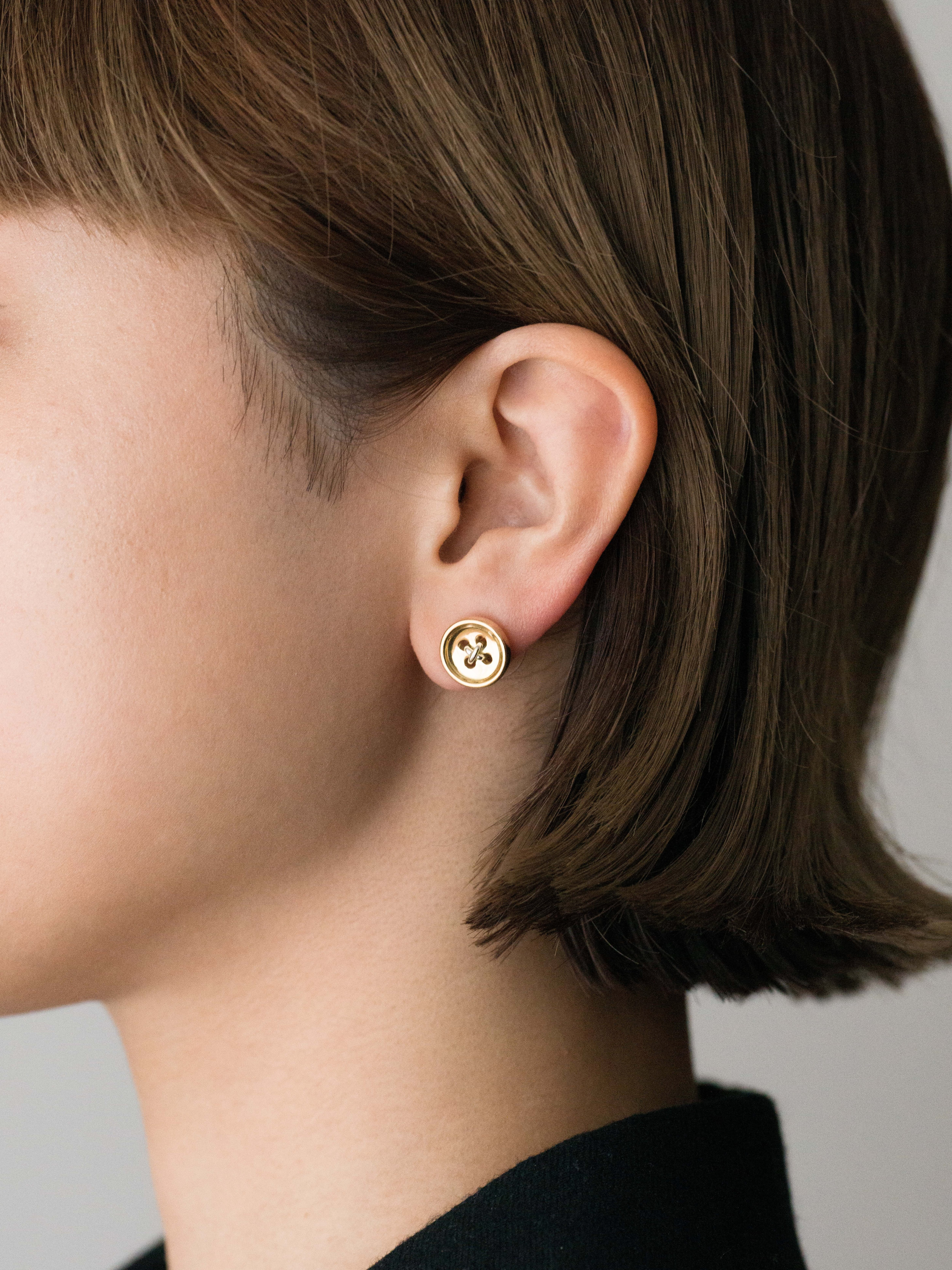 Fabulous Sounds|ファビュラスサウンズ 18Kゴールドとプラチナ製のピアス、ボタンモチーフ。 日本製 18Kゴールド|プラチナ950 1.1cm × 1.1cm アイテムナンバー|FA002 シングル(片耳)販売