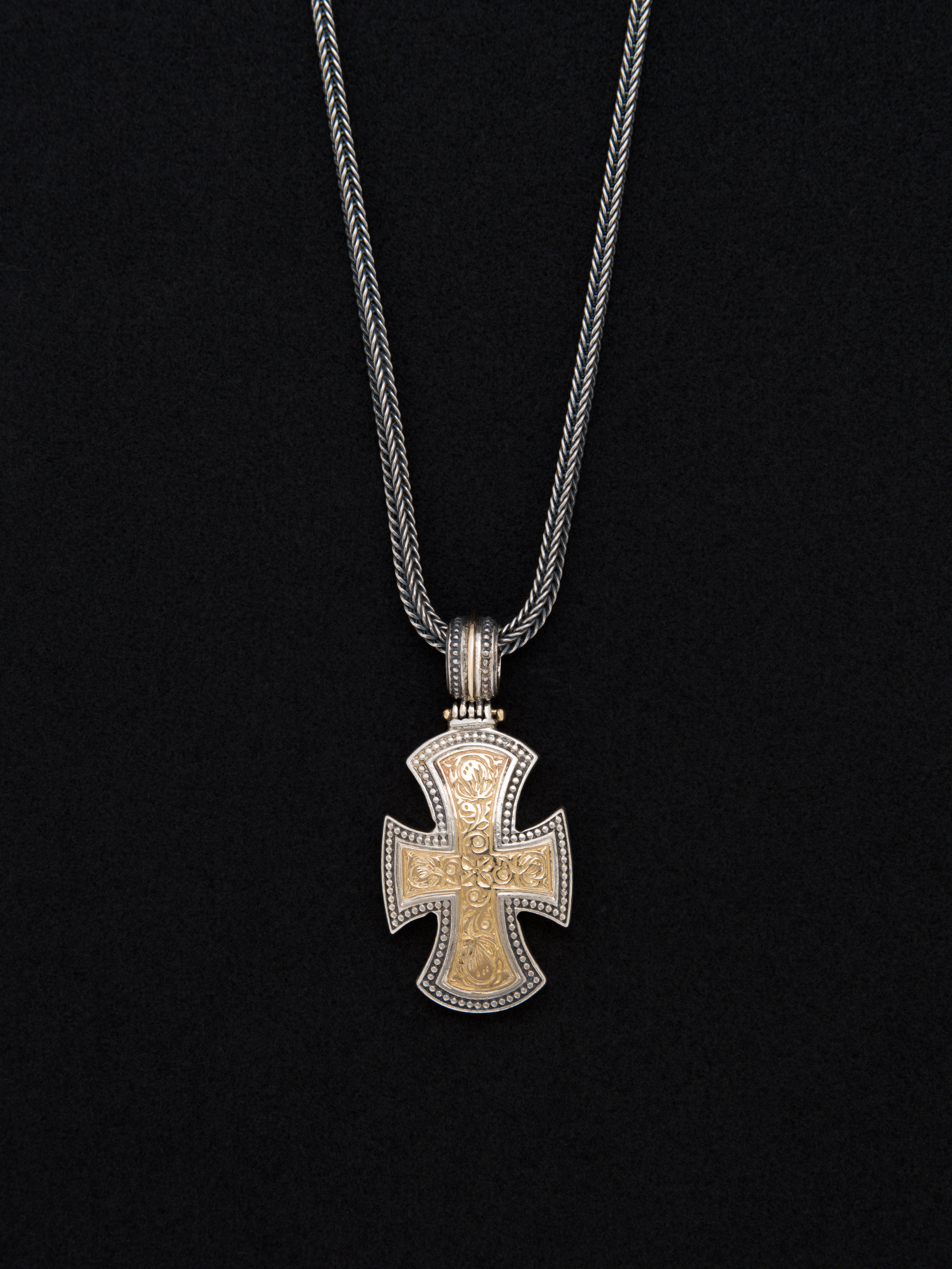 シルバーと18Kゴールド製のペンダントトップ、クロスモチーフ。