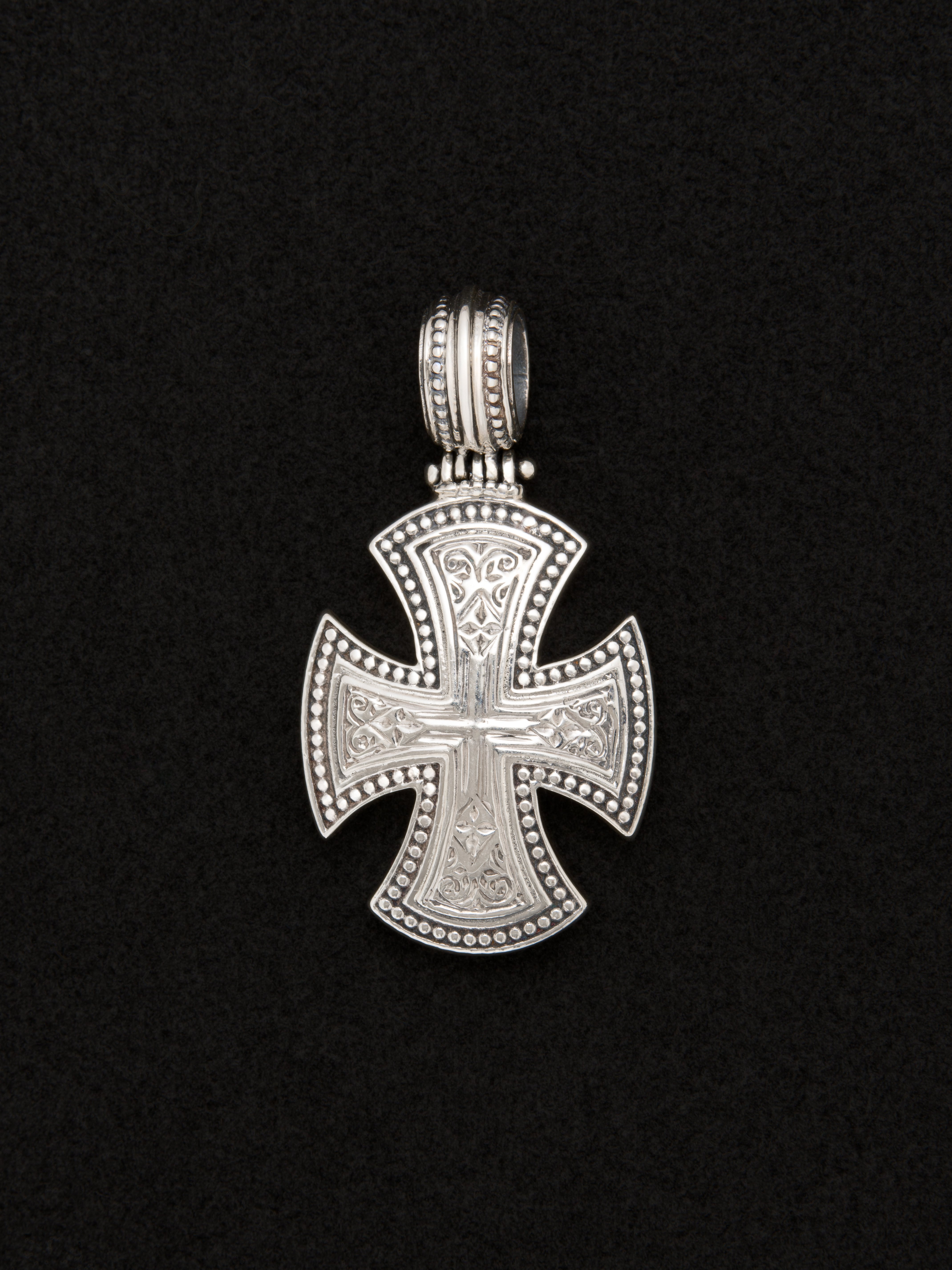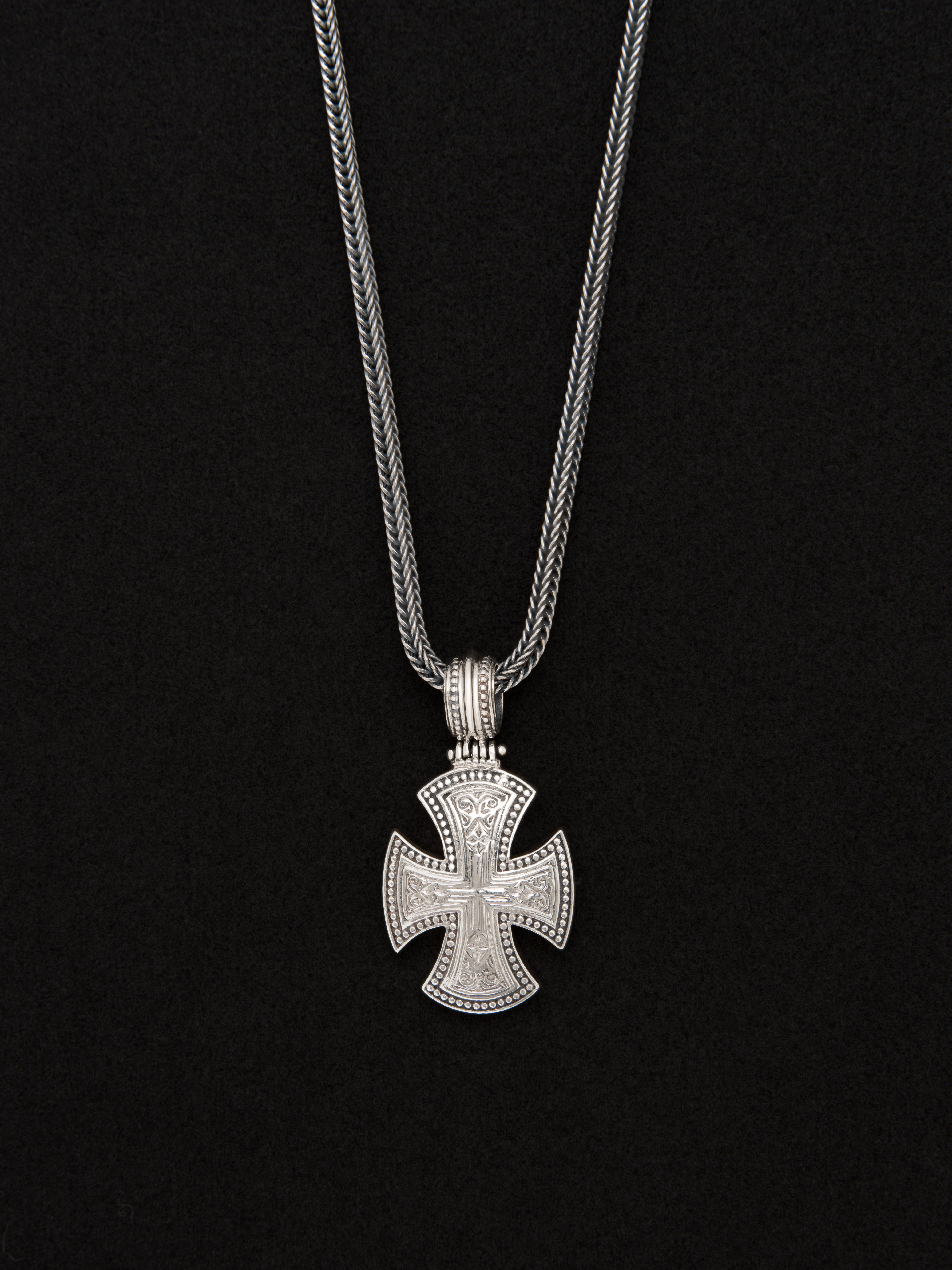 シルバーと18Kゴールド製のペンダントトップ、クロスモチーフ。