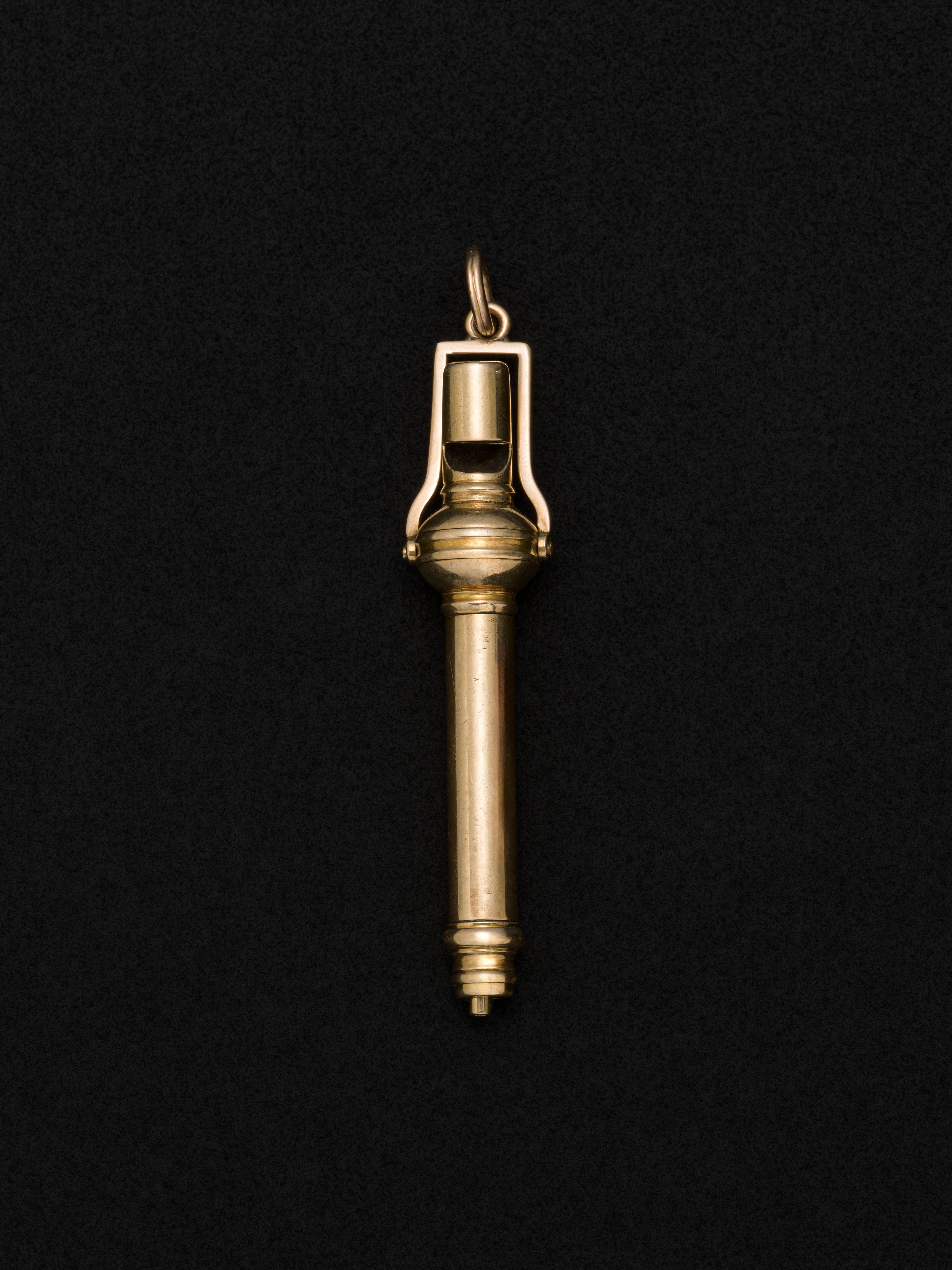 9kゴールド製、伸縮式のペンの上部にホイッスルがついたペンダントトップ。