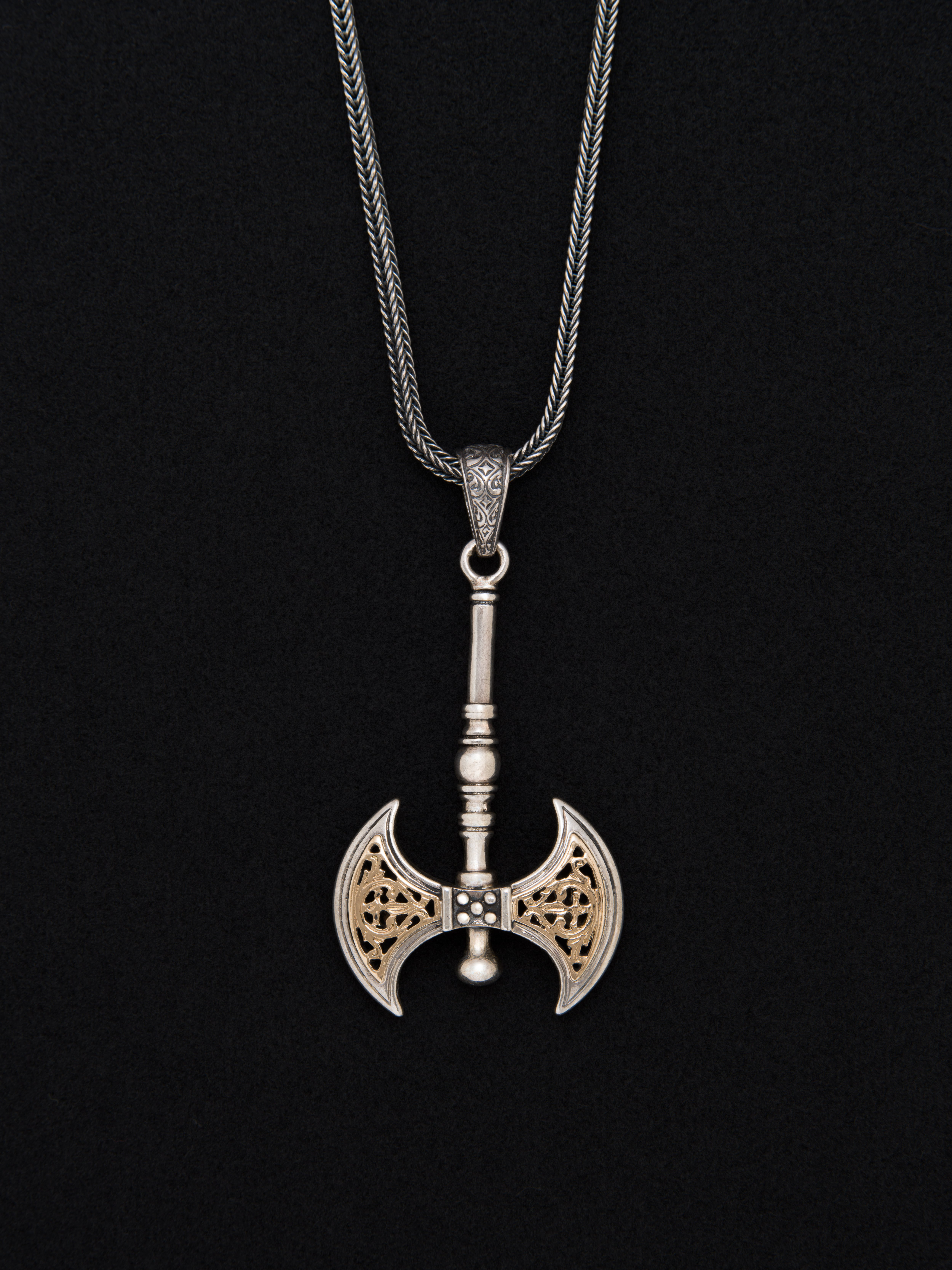 シルバーと18Kゴールド製のペンダント、アックスモチーフ。