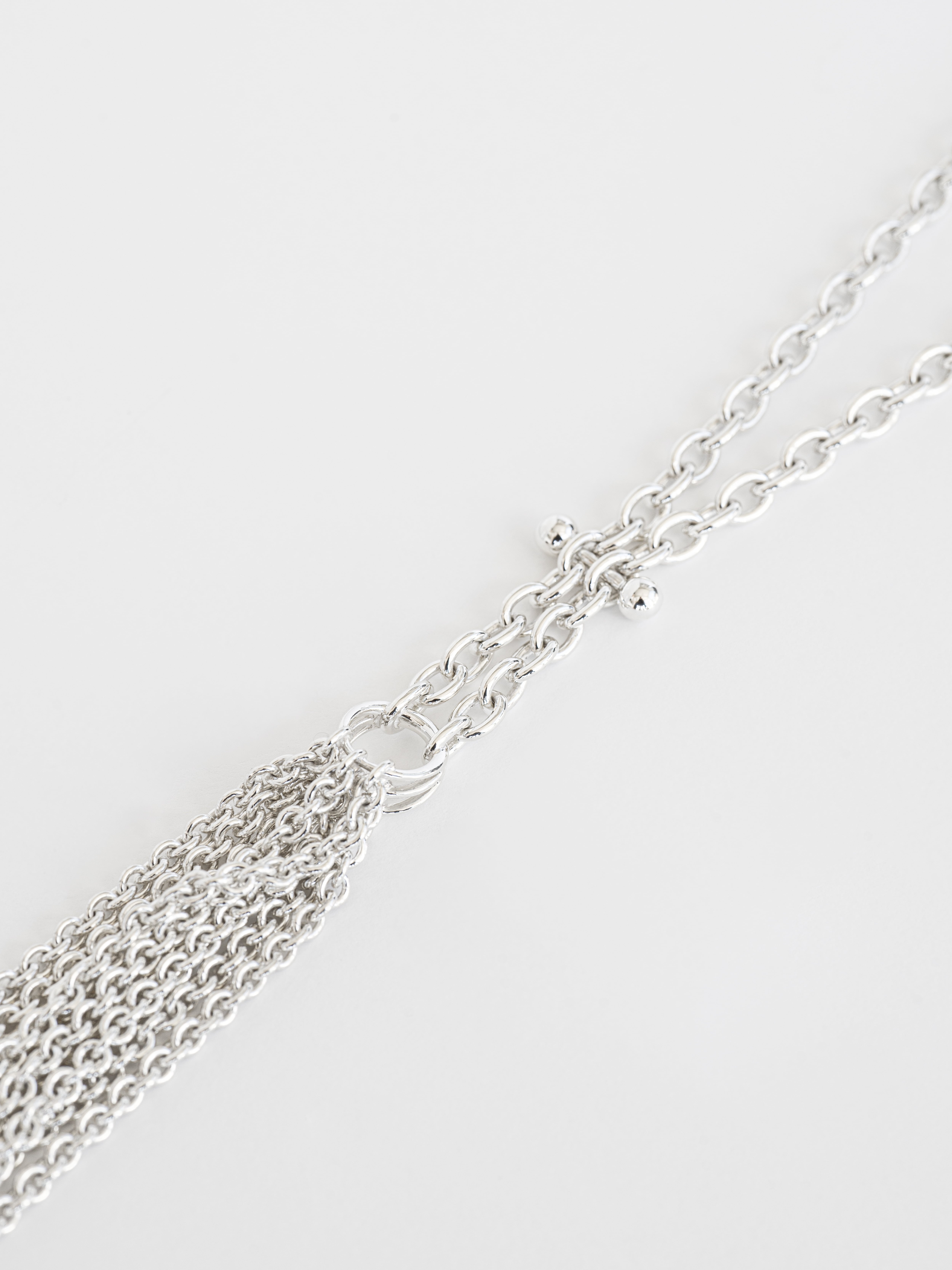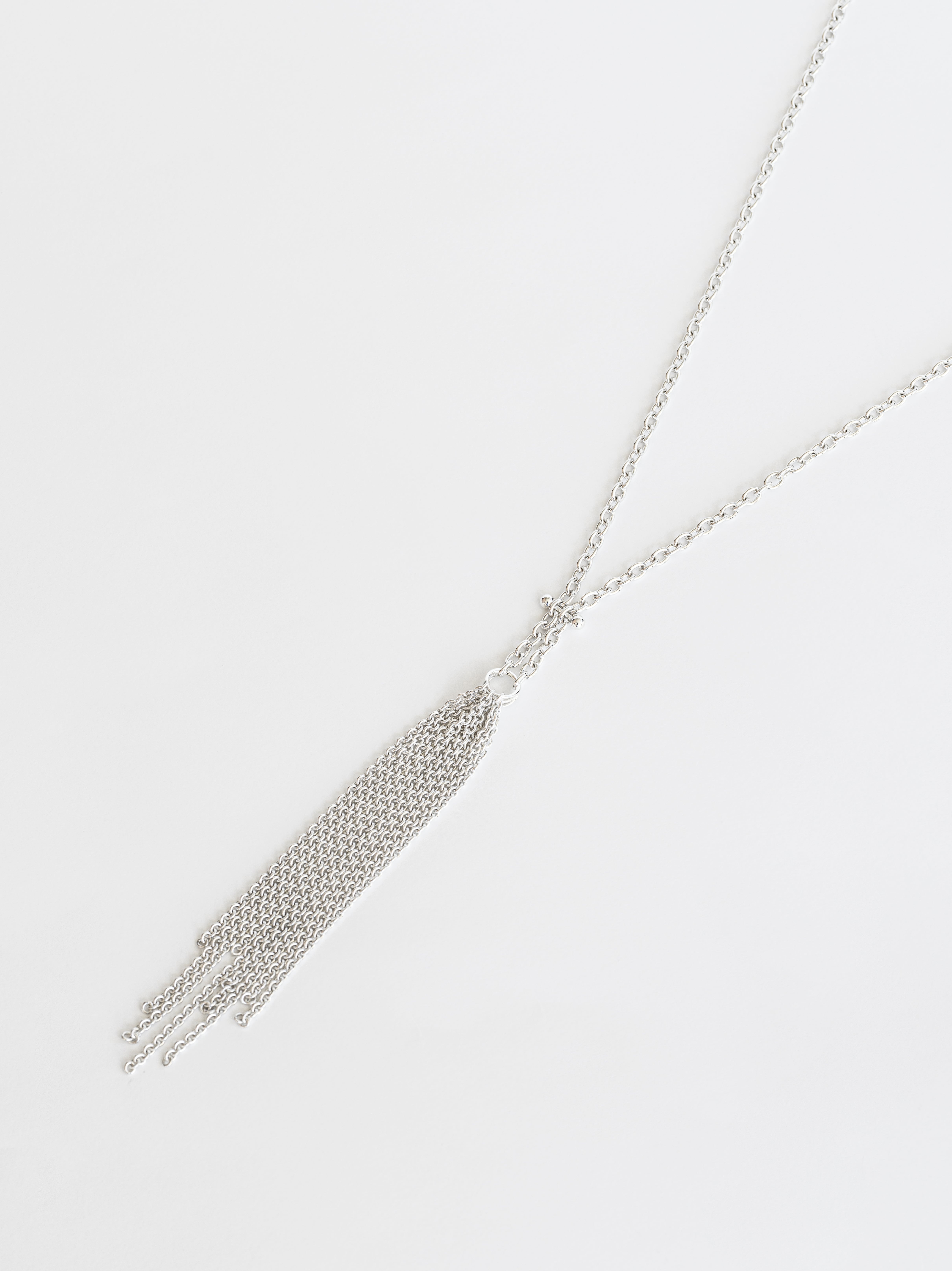 RHODES|ローズ シルバー製のタッセルネックレス。 ローズは2021年にファビュラスサウンズのディレクター、吉田量によって設立したブランド。インスピレーションをキーワードに、多彩なデザインのジュエリーを展開。 日本製 シルバー925 全長 : 47cm|ネックレス : 54cm アイテムナンバー|RHODES006-S 価格|¥220,000