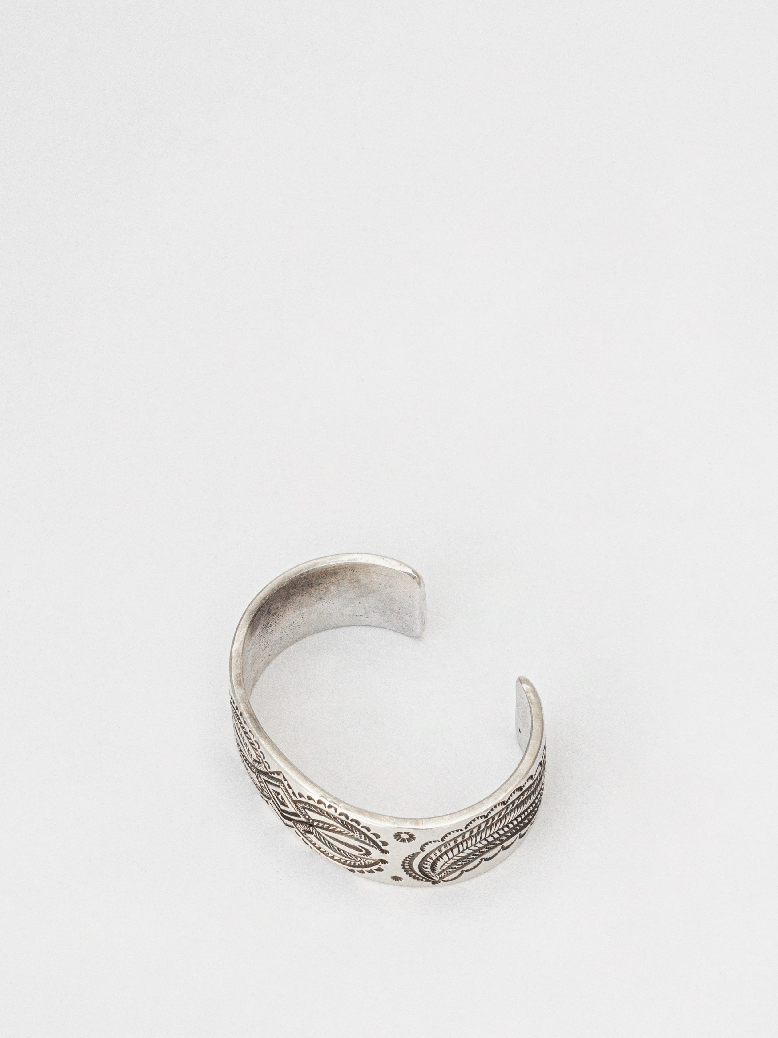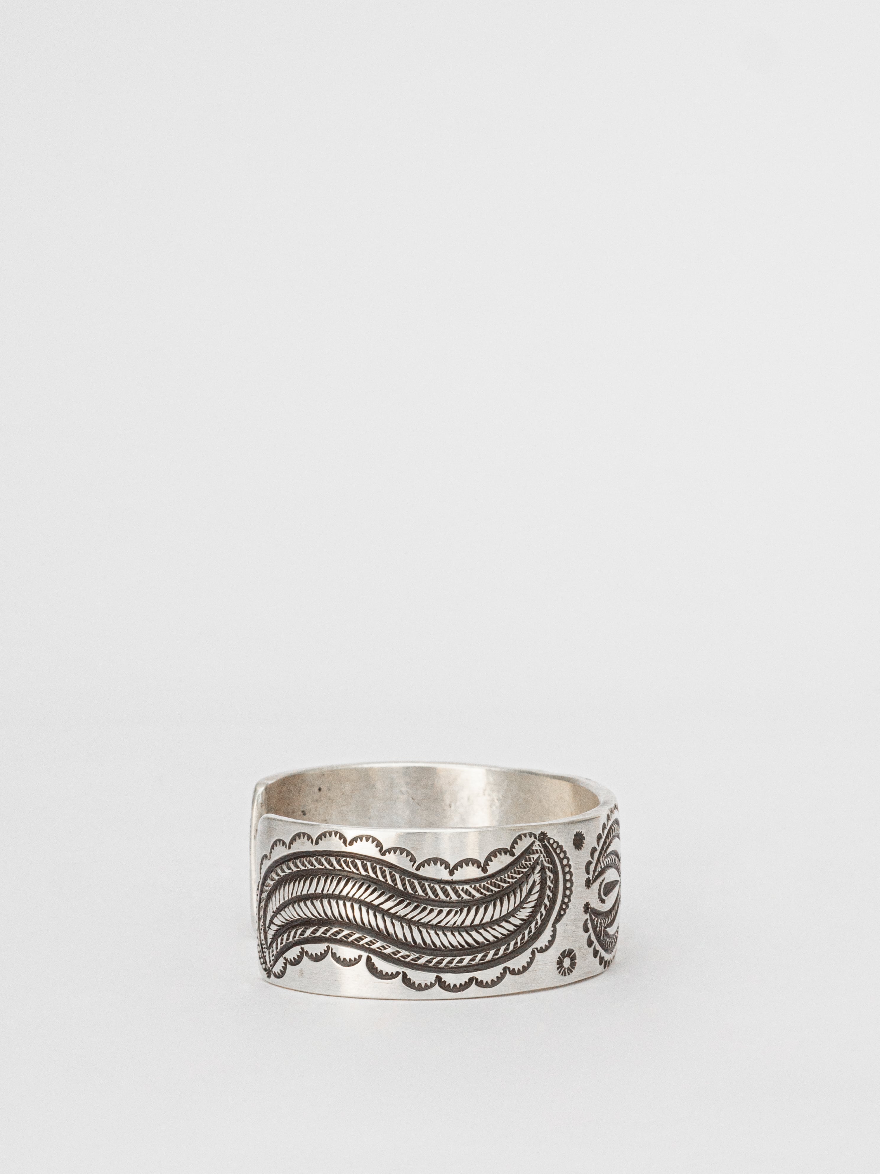 Calvin Martinez|カルヴィン・マルチネス シルバー製のバングル。 ナバホ族の伝統的なスタイルを得意とするアーティスト、カルヴィン・マルチネス。厚みのあるシルバー、ハンドメイドとは思えないほど緻密で正確なスタンプワークを特徴とし、数々の作品がコンテストで賞を受賞しています。 アメリカ製 シルバー925 内周 : 17.5cm|幅 : 2.1cm アイテムナンバー|B768