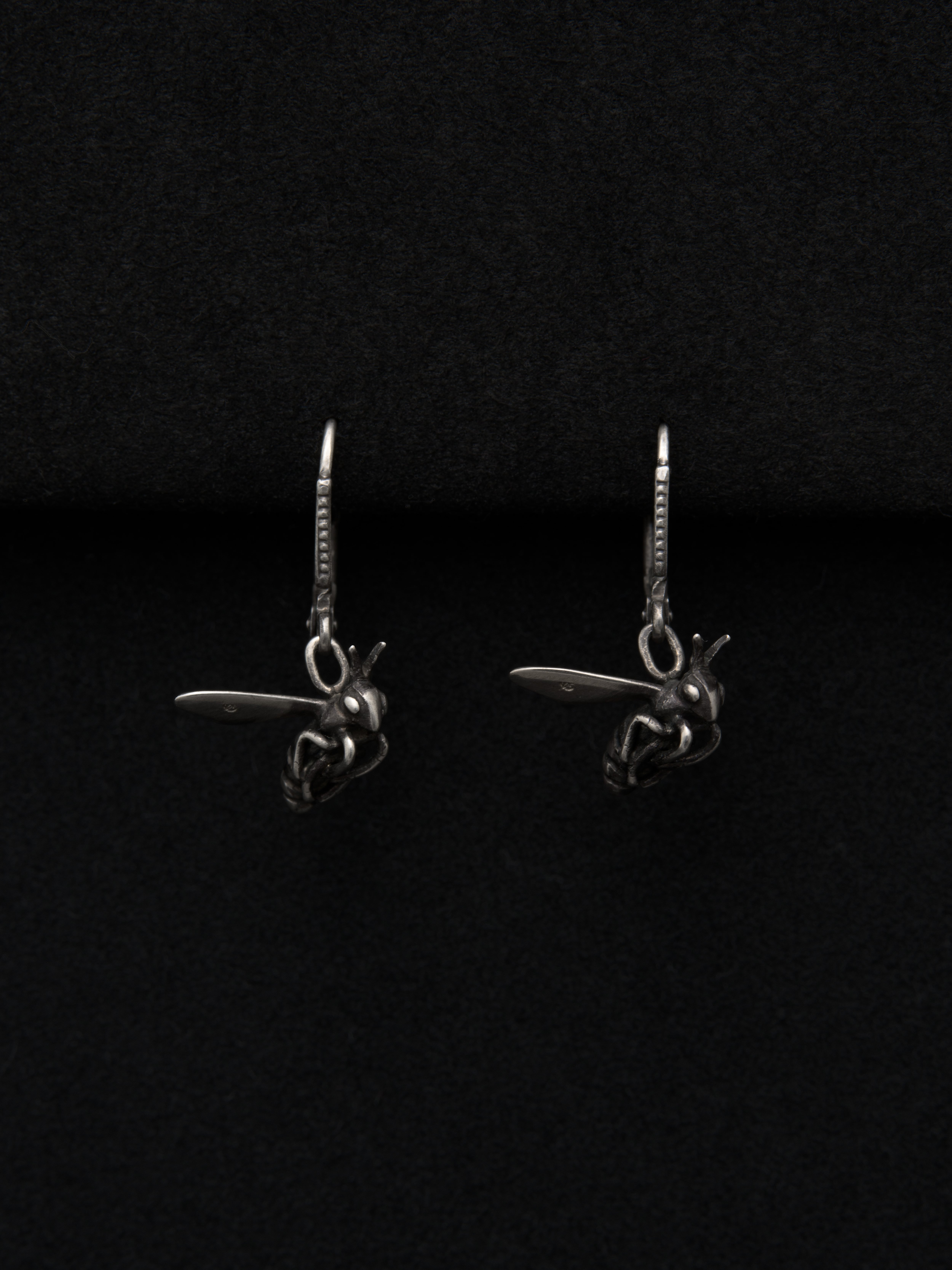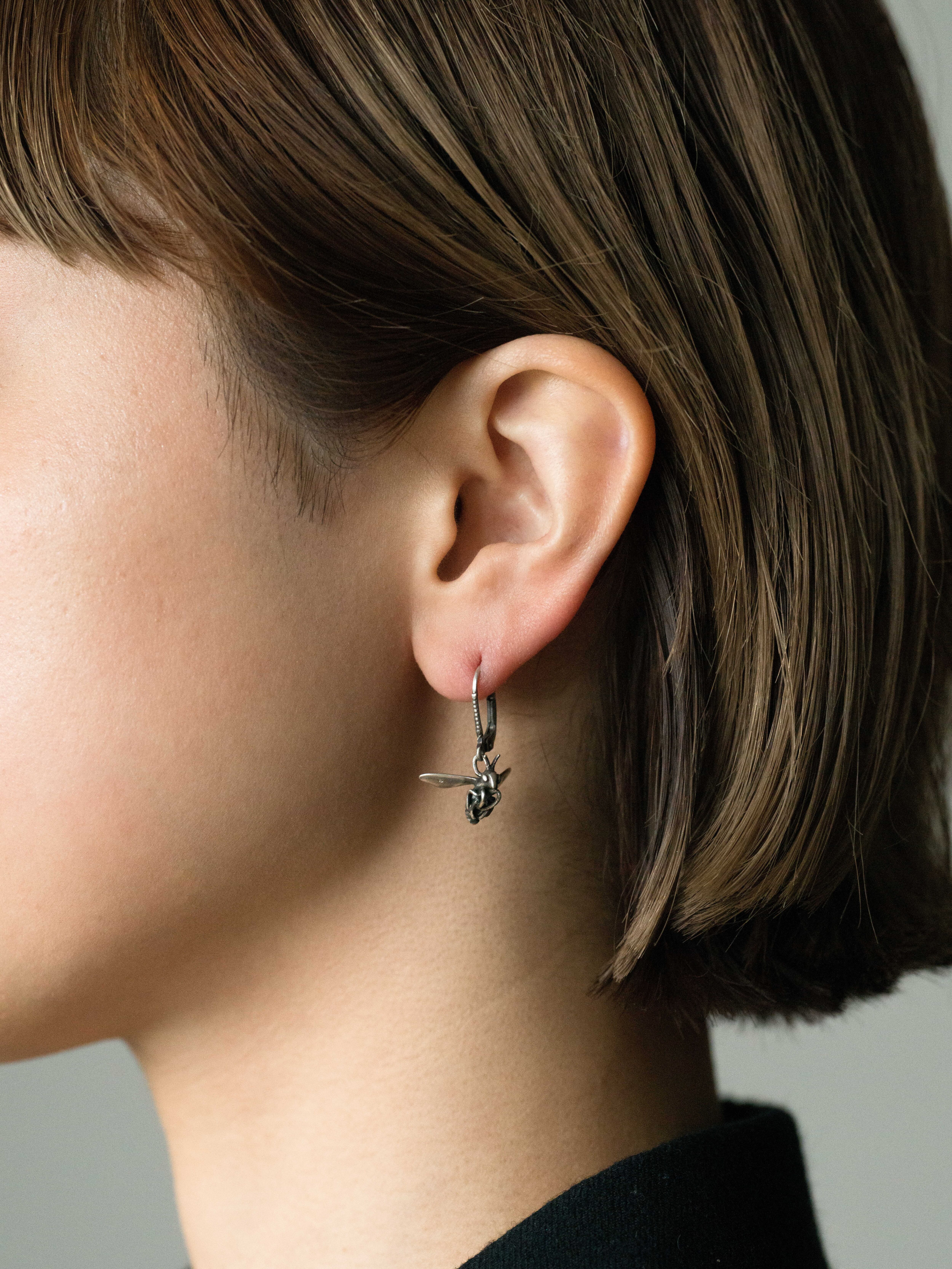 Werkstatt:München|ワークスタットミュンヘン シルバー製のピアス、蜂モチーフ。 1996年にドイツのKlaus Lohmeyerが設立したジュエリーブランド。音楽や哲学からインスピレーションを受けたデザインが特徴で、金属の自然な質感や槌目を生かした作品は全て自社工房で手作業で作られています。 ドイツ製 シルバー925 1.3cm × 1.2cm アイテムナンバー|M4561 ペア(両耳)販売