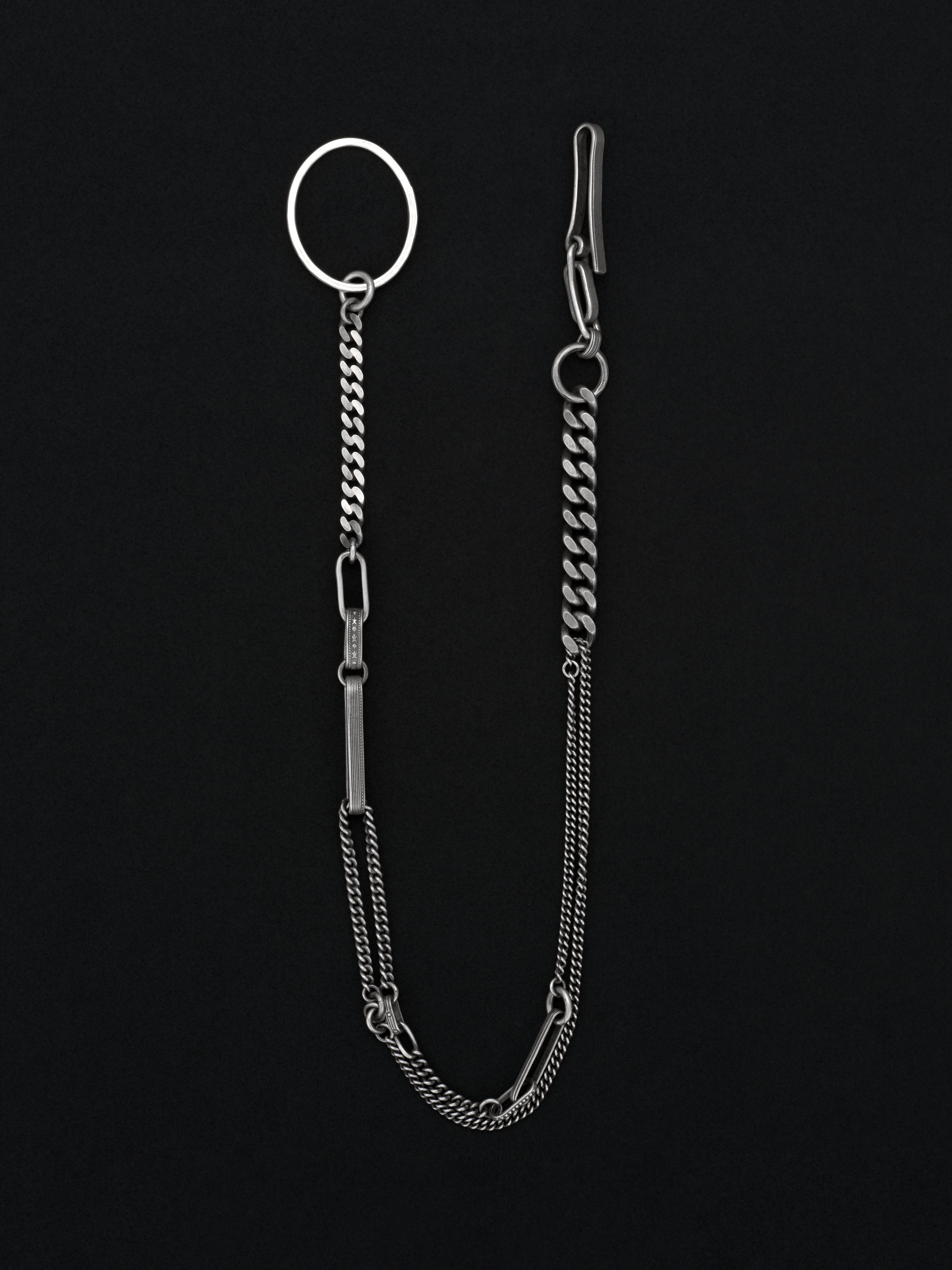 Werkstatt:München|ワークスタットミュンヘン シルバー製のキーチェーン。 1996年にドイツのKlaus Lohmeyerが設立したジュエリーブランド。音楽や哲学からインスピレーションを受けたデザインが特徴で、金属の自然な質感や槌目を生かした作品は全て自社工房で手作業で作られています。 ドイツ製 シルバー925 全長 : 59cm|幅 : 1cm アイテムナンバー|M5531