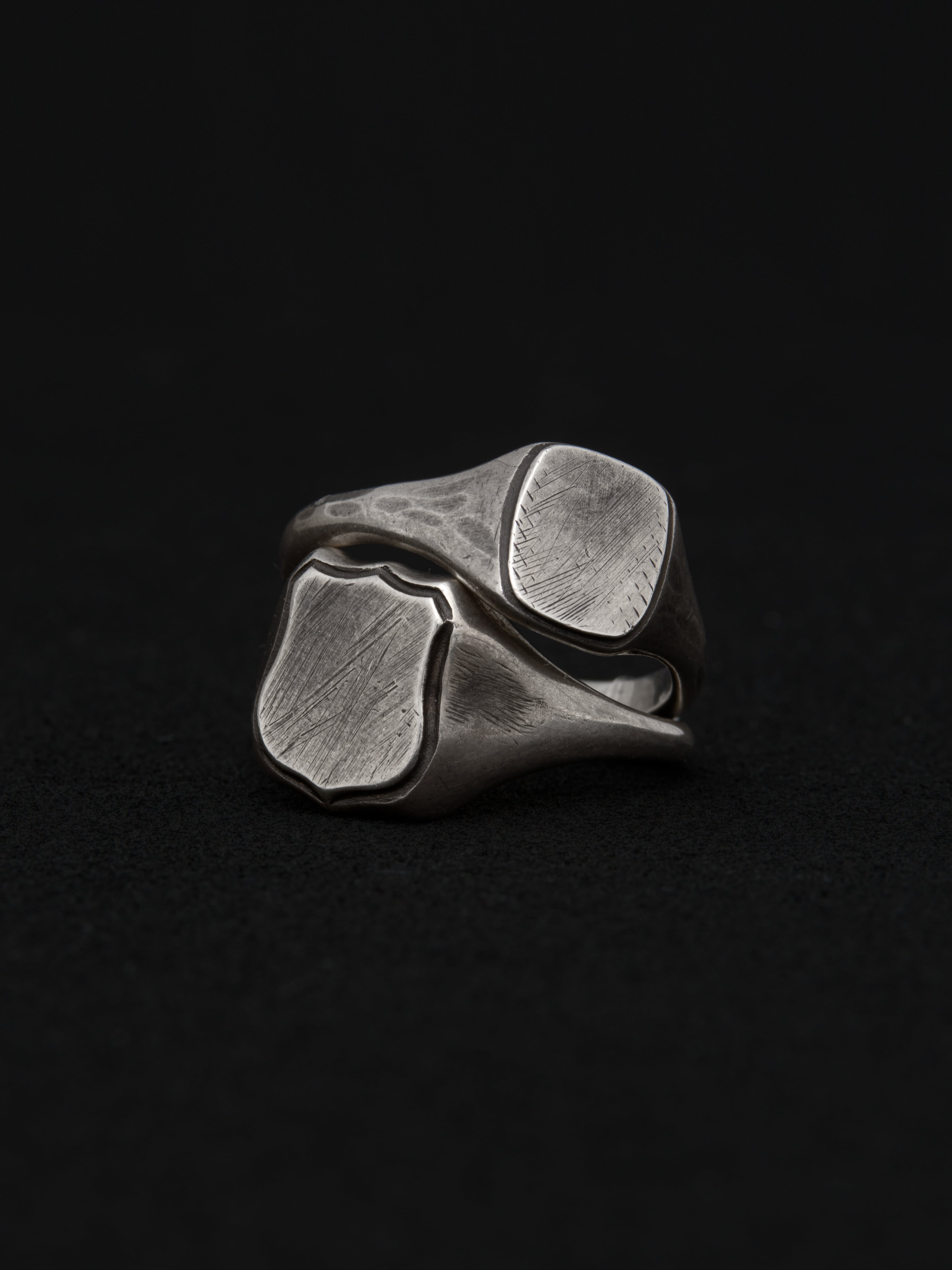 Werkstatt:München|ワークスタットミュンヘン 2種類のデザインがセットになったシルバー製のリング。 1996年にドイツのKlaus Lohmeyerが設立したジュエリーブランド。音楽や哲学からインスピレーションを受けたデザインが特徴で、金属の自然な質感や槌目を生かした作品は全て自社工房で手作業で作られています。 ドイツ製 シルバー925 サイズ|JP 14 アイテムナンバー|M1250