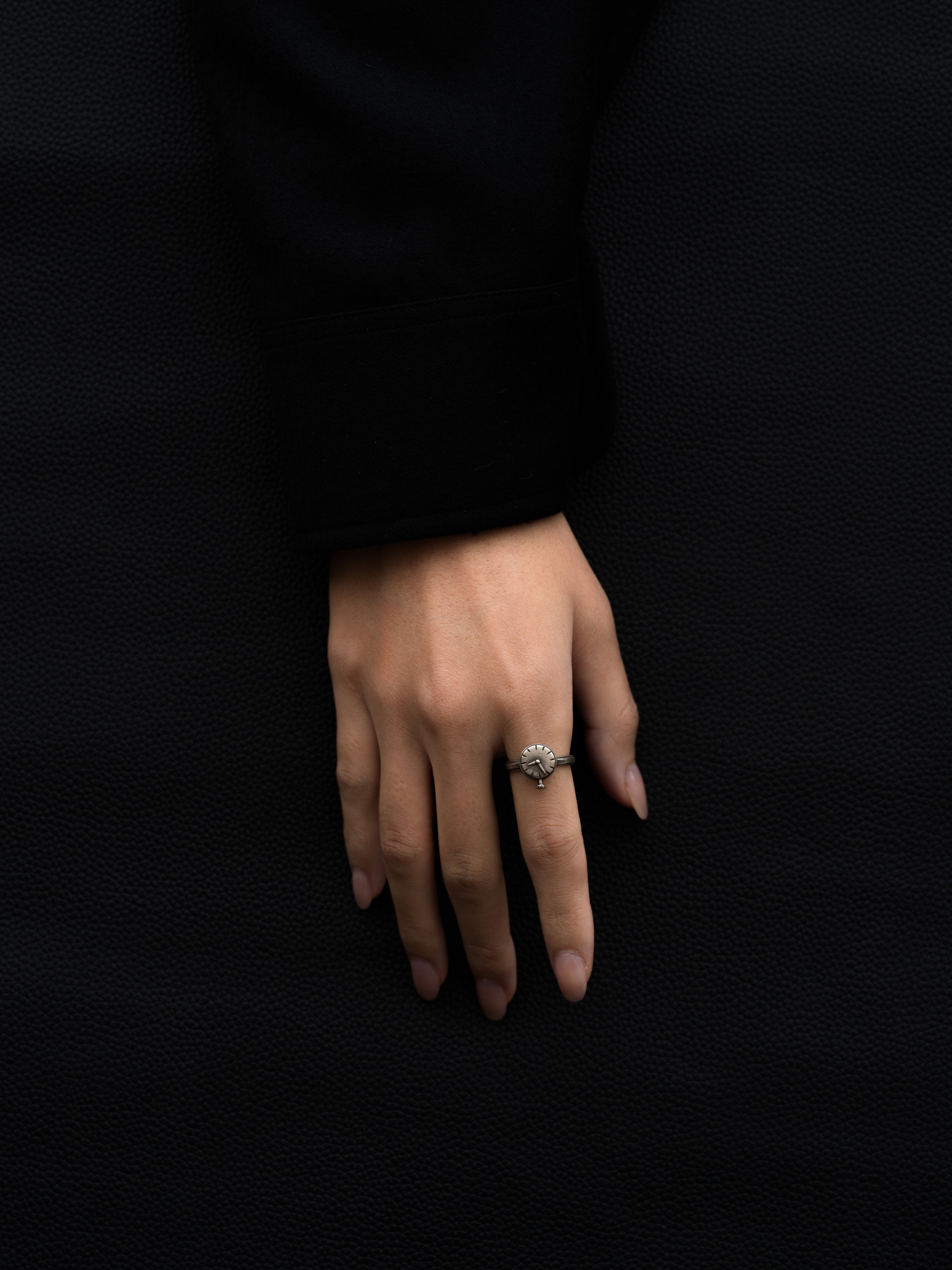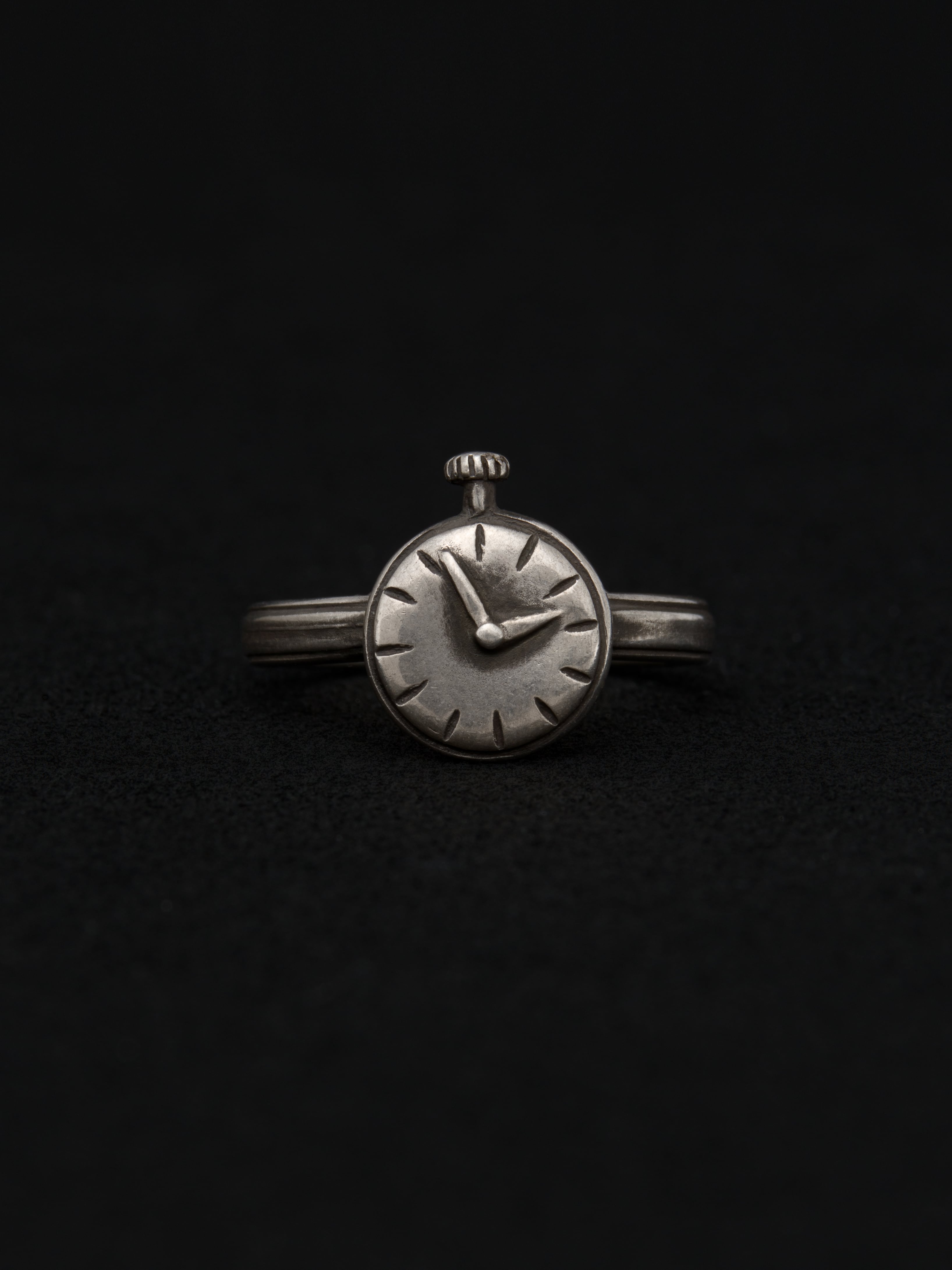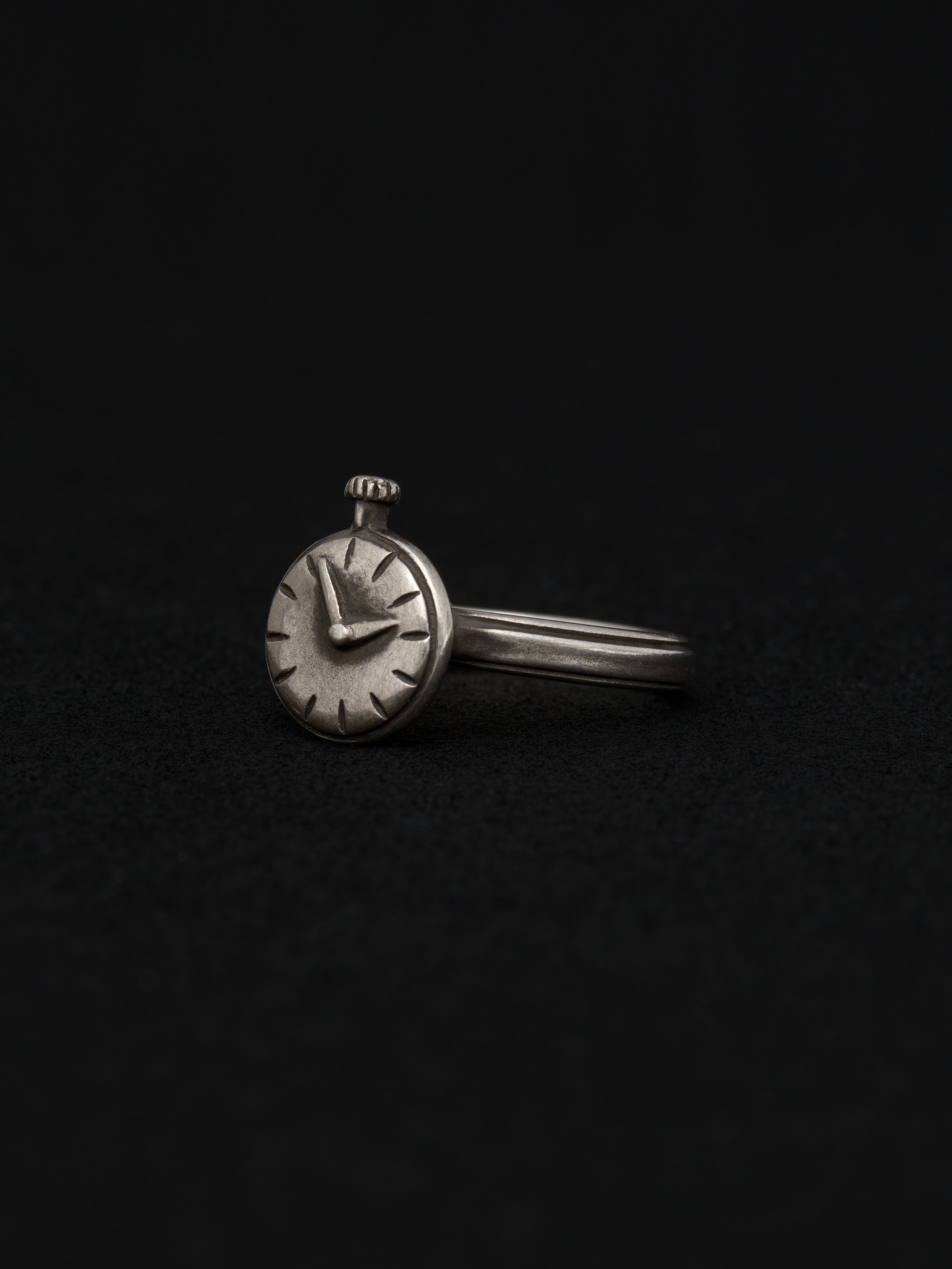 Werkstatt:München|ワークスタットミュンヘン シルバー製のリング、時計モチーフ。 1996年にドイツのKlaus Lohmeyerが設立したジュエリーブランド。音楽や哲学からインスピレーションを受けたデザインが特徴で、金属の自然な質感や槌目を生かした作品は全て自社工房で手作業で作られています。 ドイツ製 シルバー925 アイテムナンバー|M1711-CL
