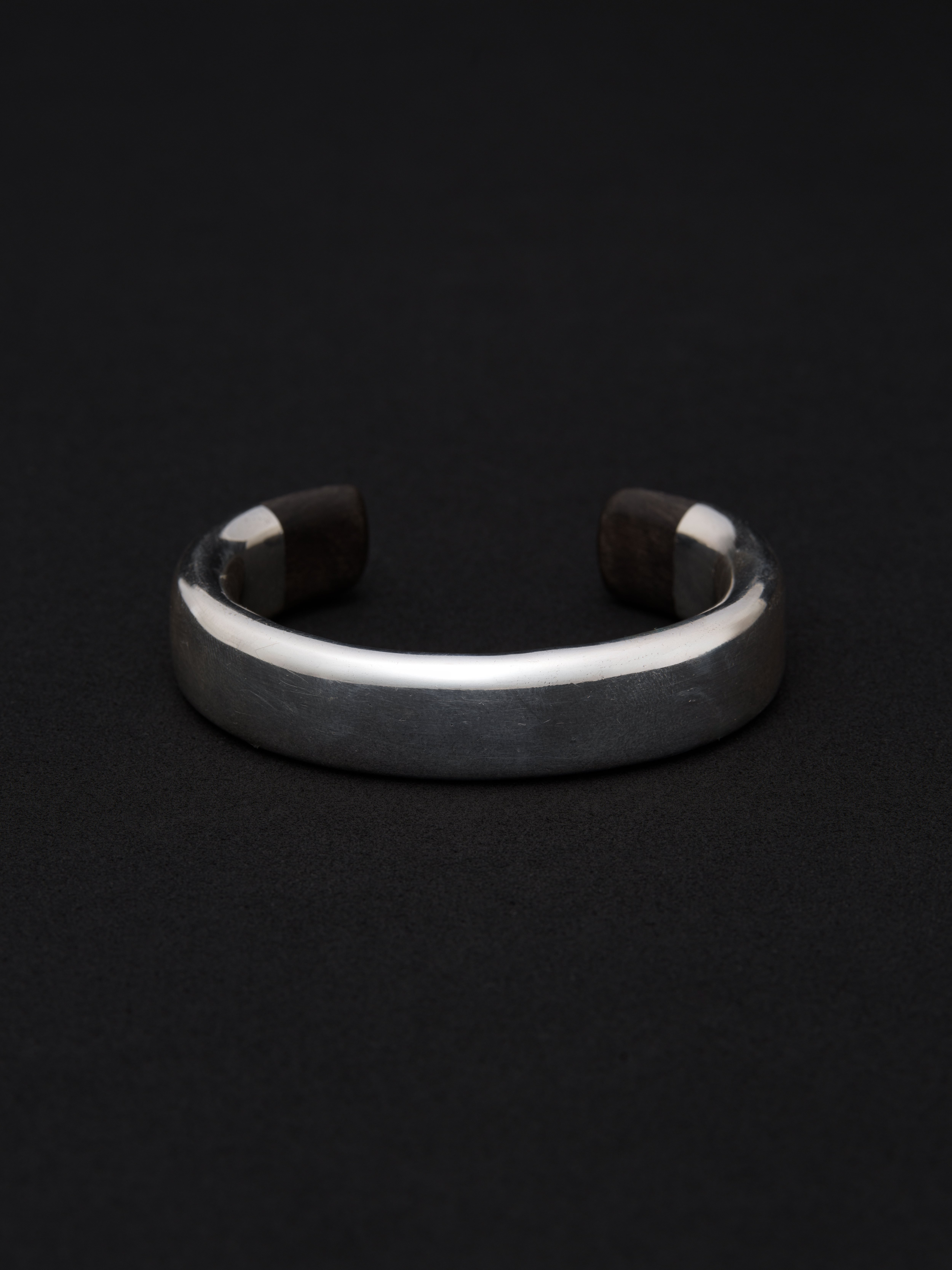Georg Jensen|ジョージジェンセン シルバーと黒檀製のバングル。Ove Wendt(1907-1982)によるデザイン。 1904年にデンマークで創業されたジョージジェンセン。銀細工職人であるジョージジェンセン氏によってアトリエが開かれ、現在まで多くの有名デザイナーを輩出、20世紀の北欧デザインを牽引した世界的なブランドです。 デンマーク製 シルバー925|黒檀 内周 : 17.5cm|幅 : 1.5cm アイテムナンバー|B850