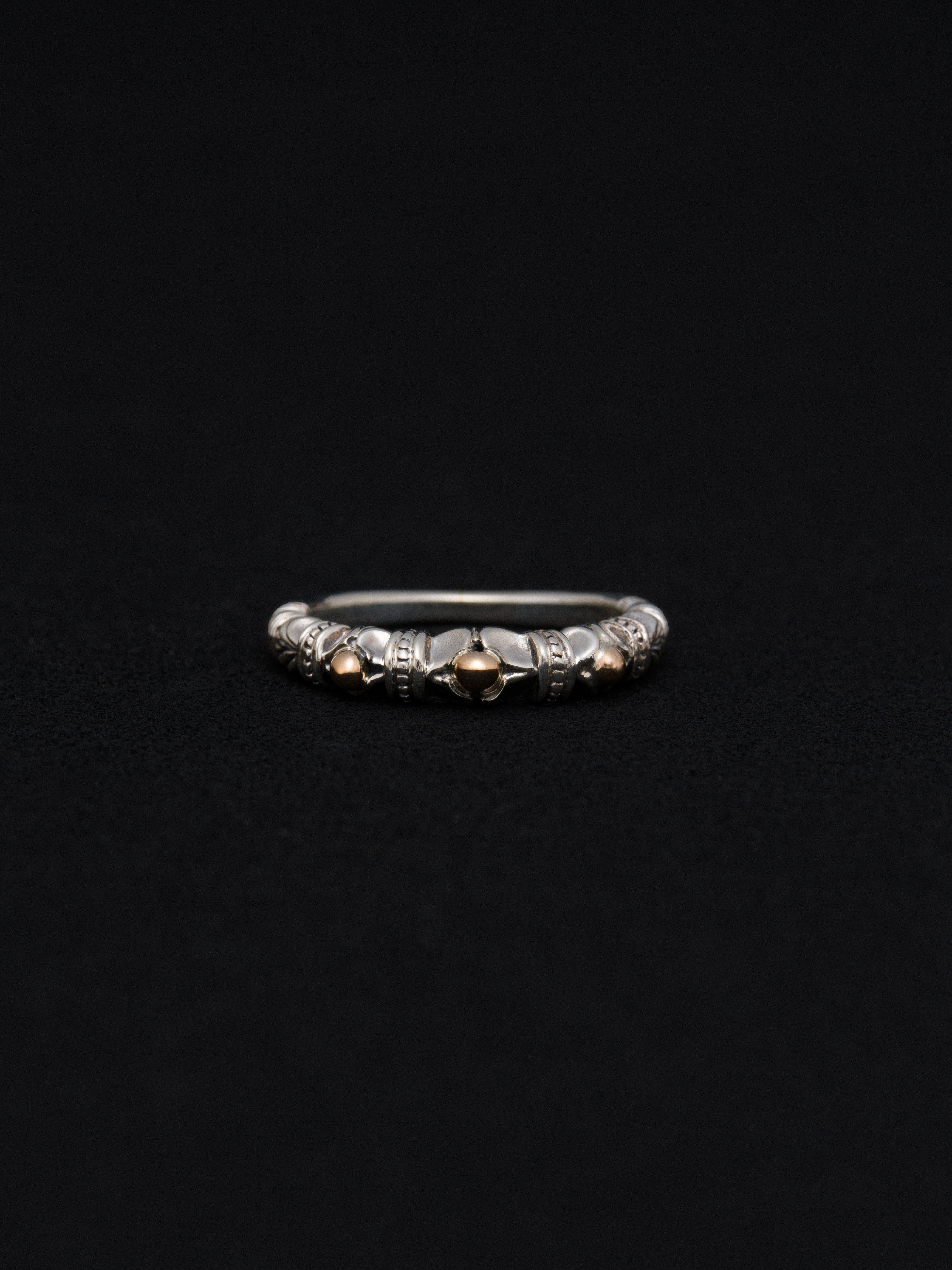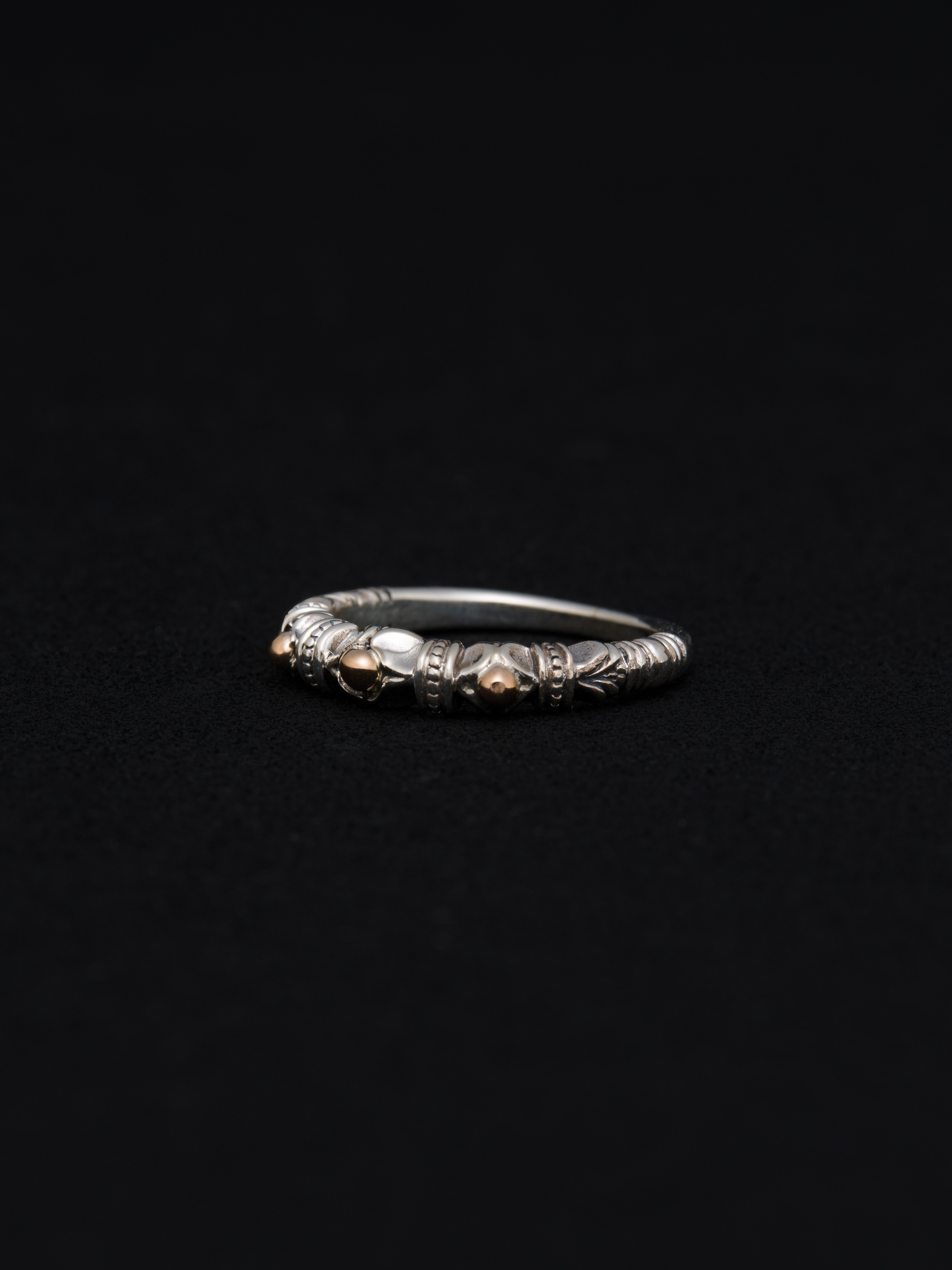 Gerochristo|ジェロクリスト シルバーと18Kゴールド製のリング。 ギリシアに拠点を置くジェロクリストは、古典芸術様式であるビザンチンに影響を受けた伝統的な装飾技術を用い、クラシックとモダンが調和する独自のデザインでジュエリーを創り上げています。 ギリシア製 シルバー925|18Kゴールド アイテムナンバー|GR067