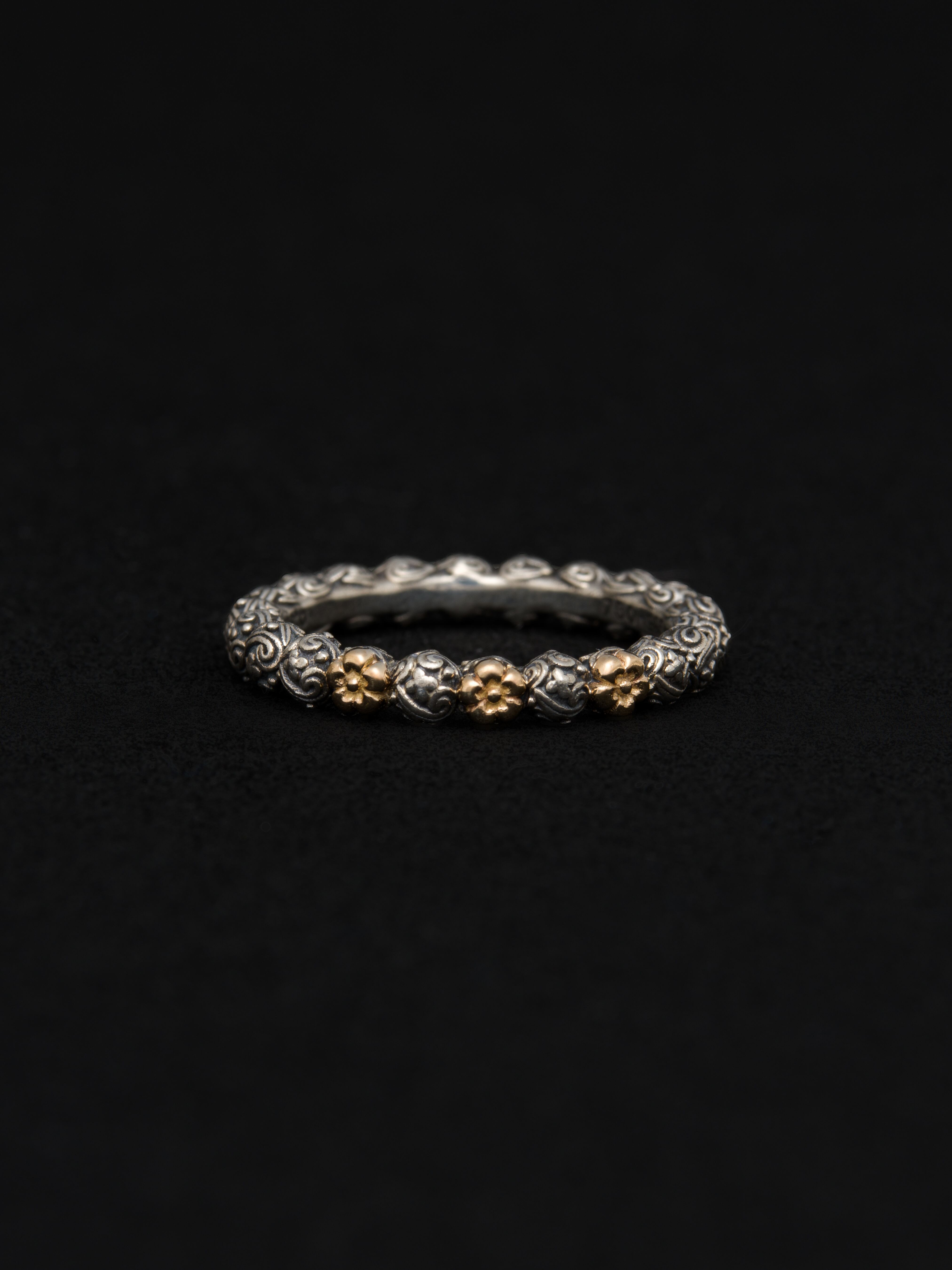 Gerochristo|ジェロクリスト シルバーと18Kゴールド製のリング。 ギリシアに拠点を置くジェロクリストは、古典芸術様式であるビザンチンに影響を受けた伝統的な装飾技術を用い、クラシックとモダンが調和する独自のデザインでジュエリーを創り上げています。 ギリシア製 シルバー925|18Kゴールド 幅|3.4mm アイテムナンバー|GR083