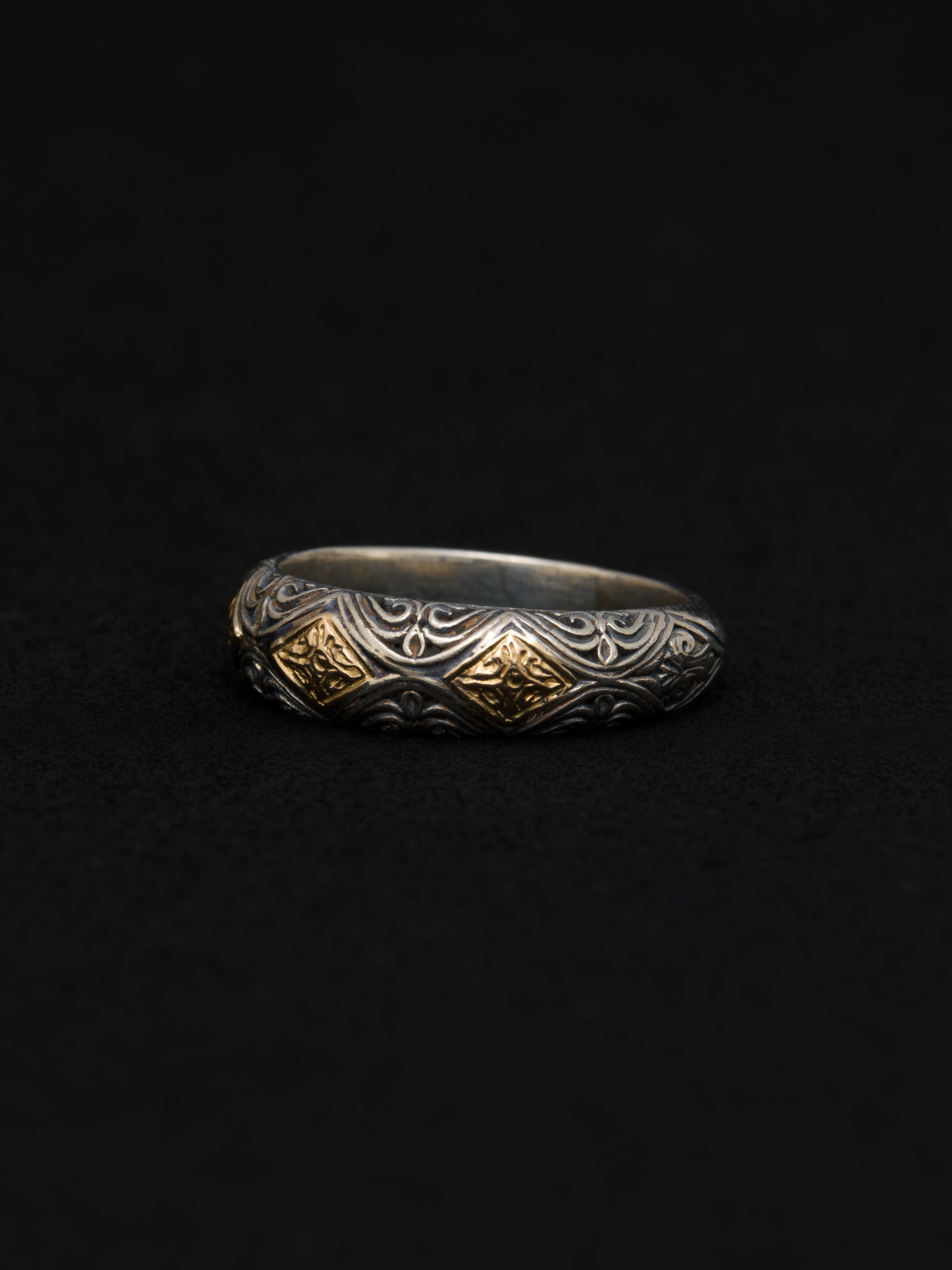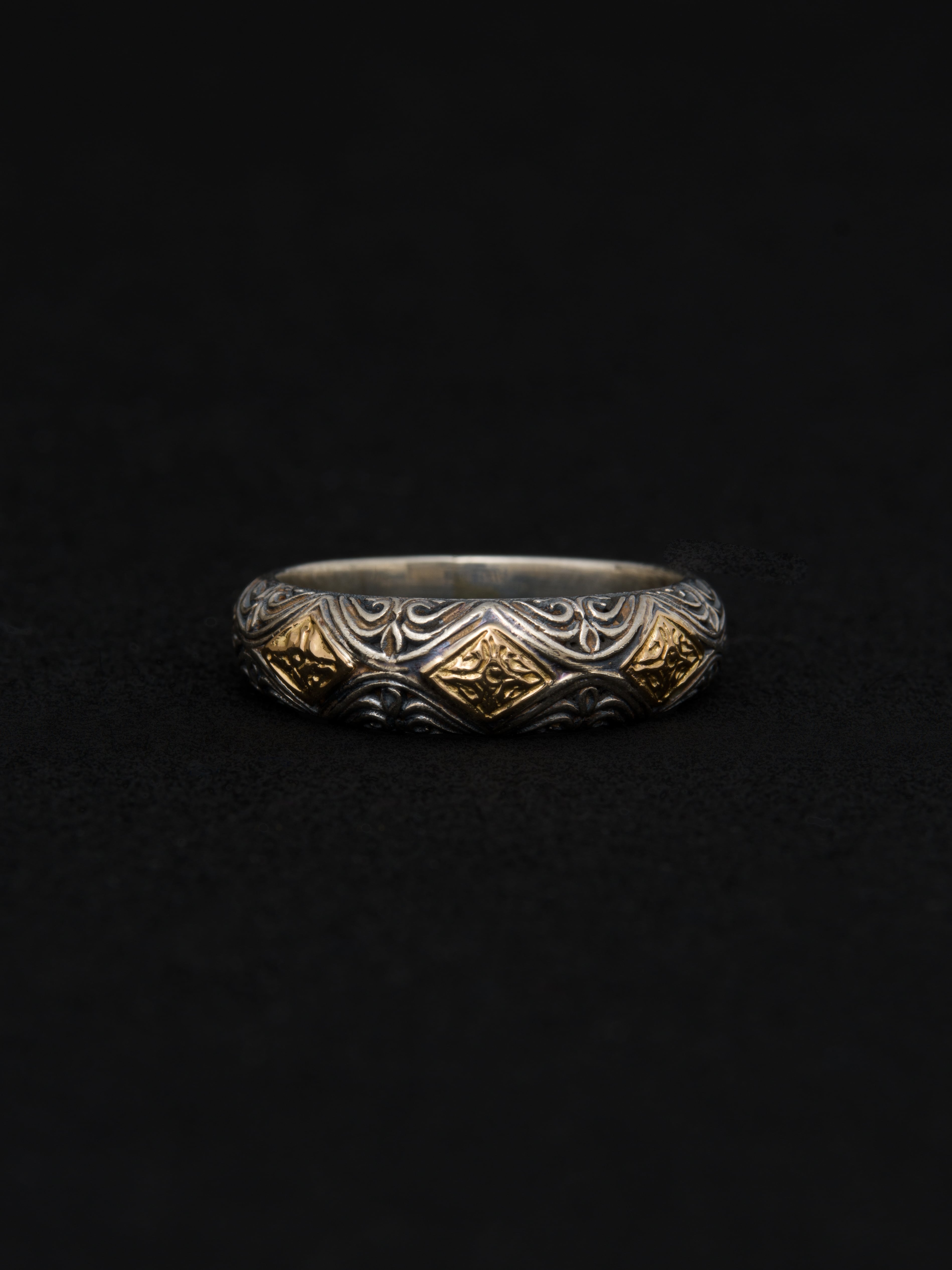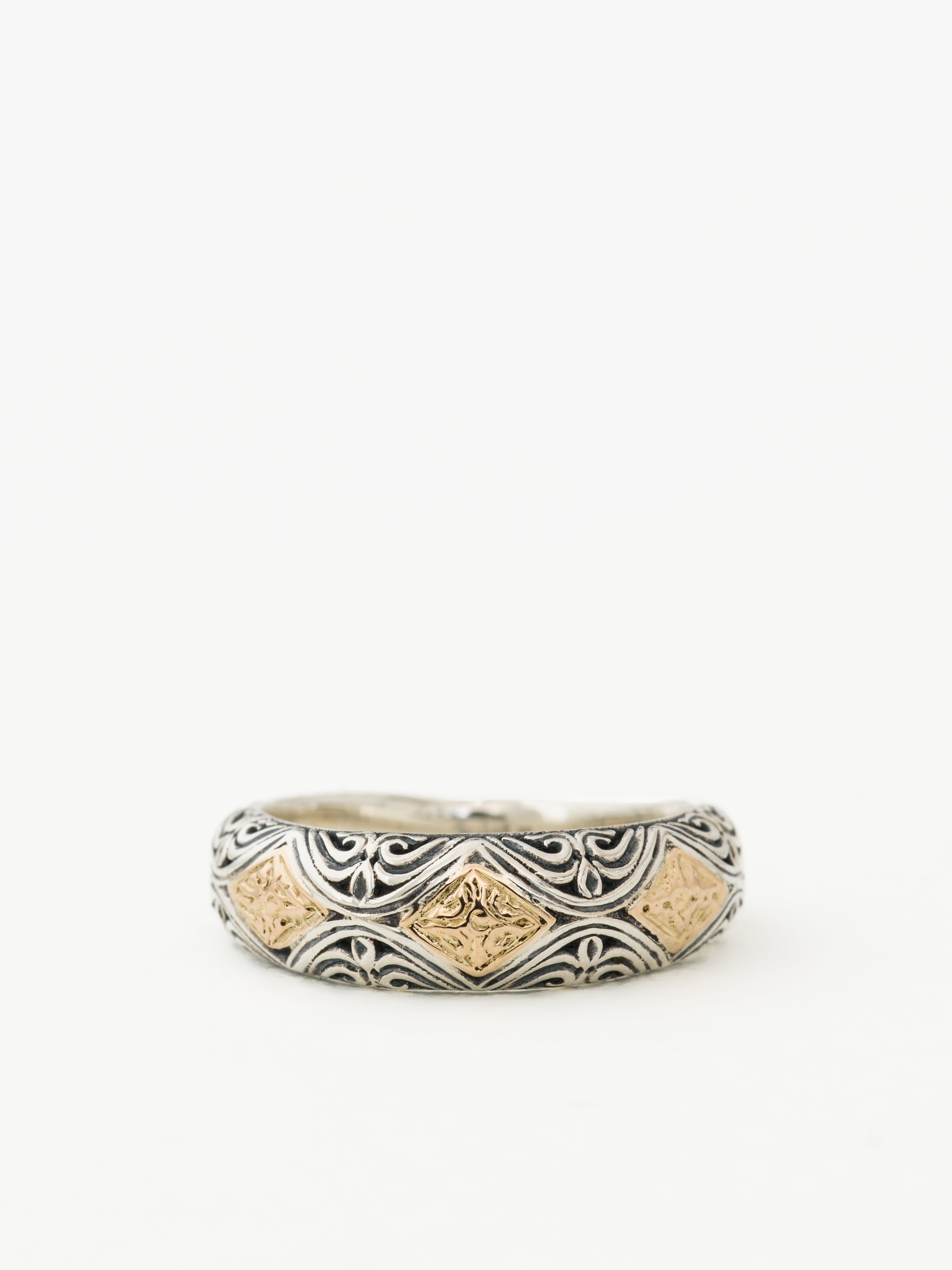 Gerochristo|ジェロクリスト シルバーと18Kゴールド製のリング。 ギリシアに拠点を置くジェロクリストは、古典芸術様式であるビザンチンに影響を受けた伝統的な装飾技術を用い、クラシックとモダンが調和する独自のデザインでジュエリーを創り上げています。 ギリシア製 シルバー925|18Kゴールド アイテムナンバー|GR086
