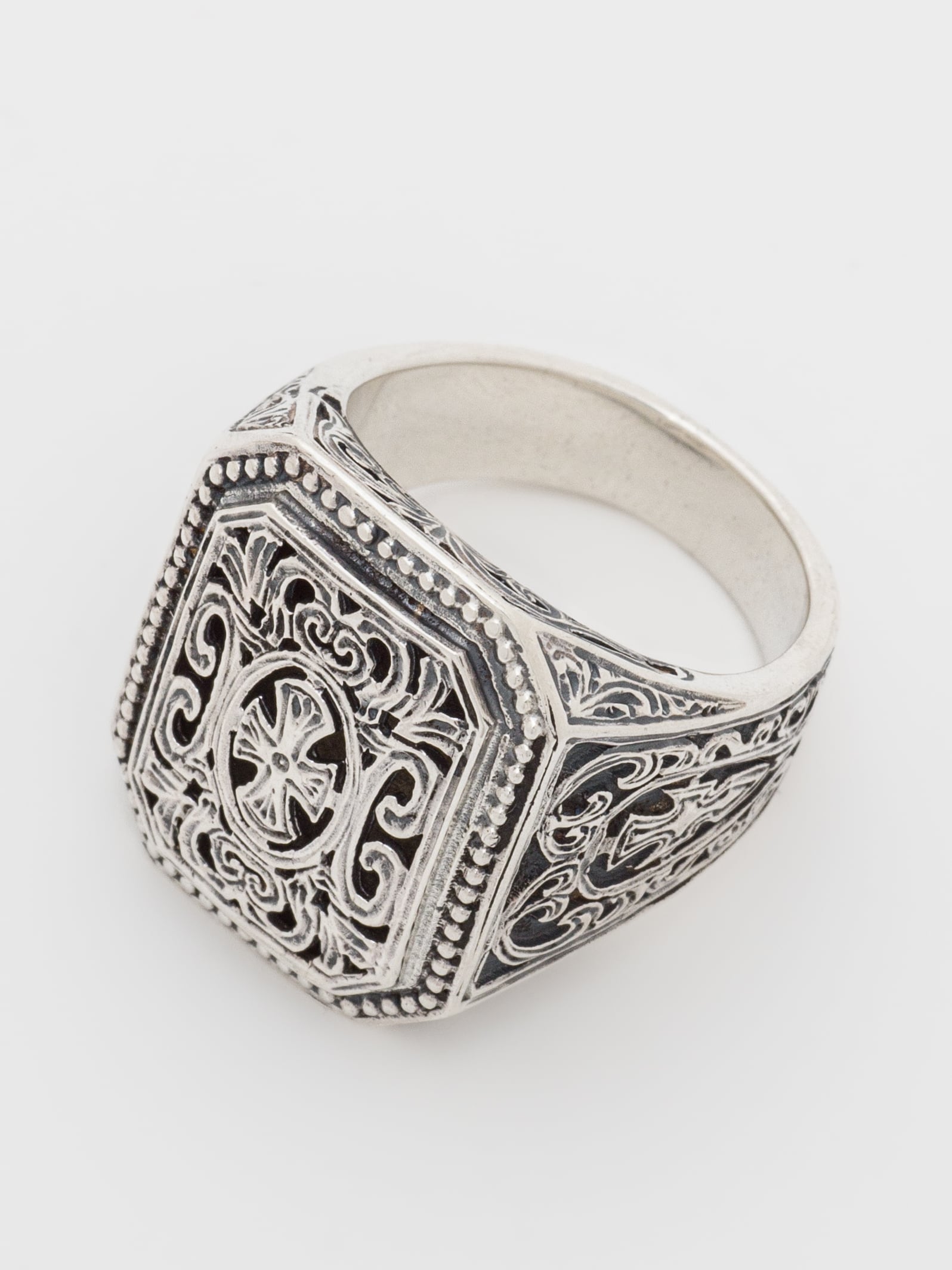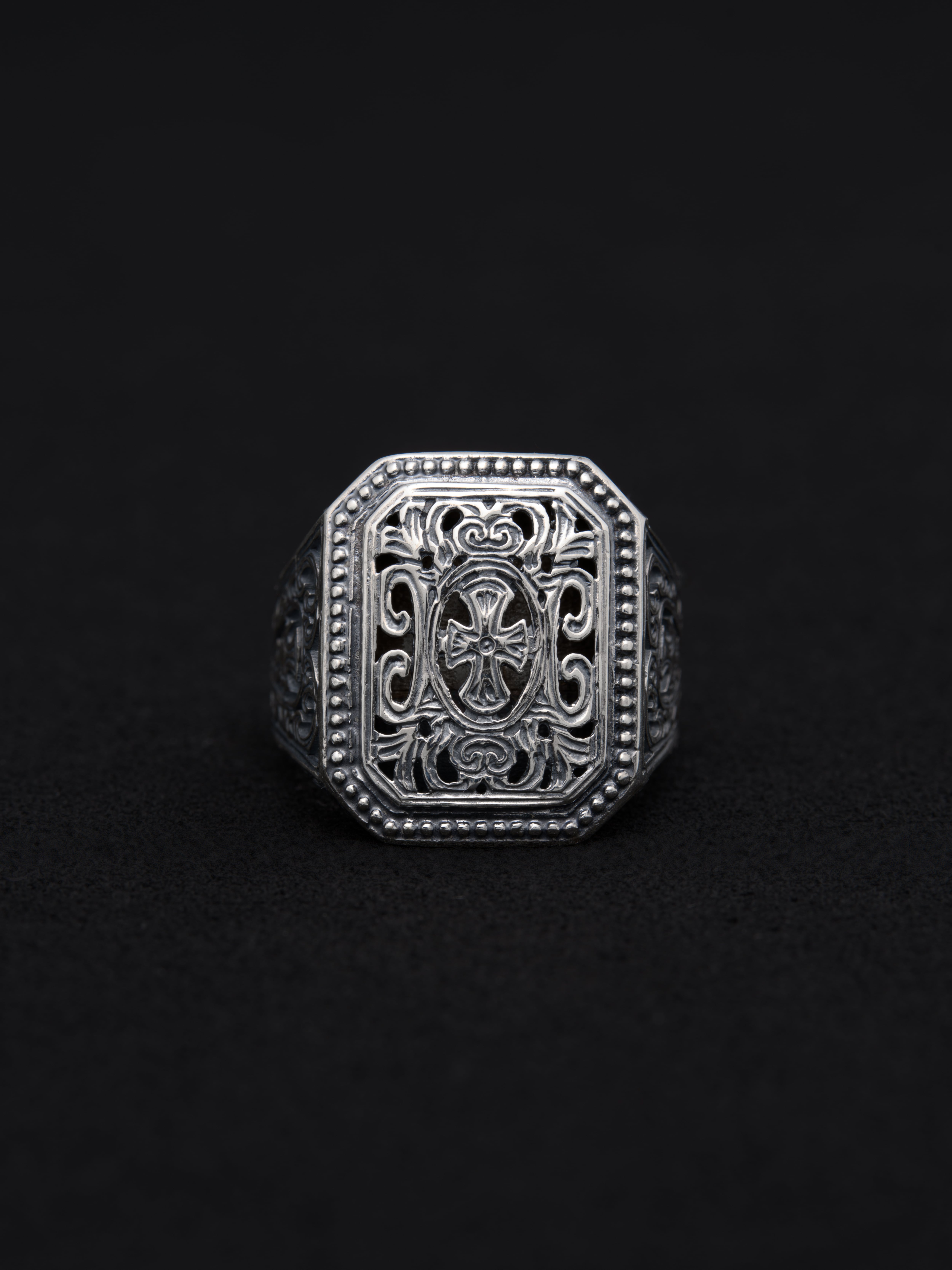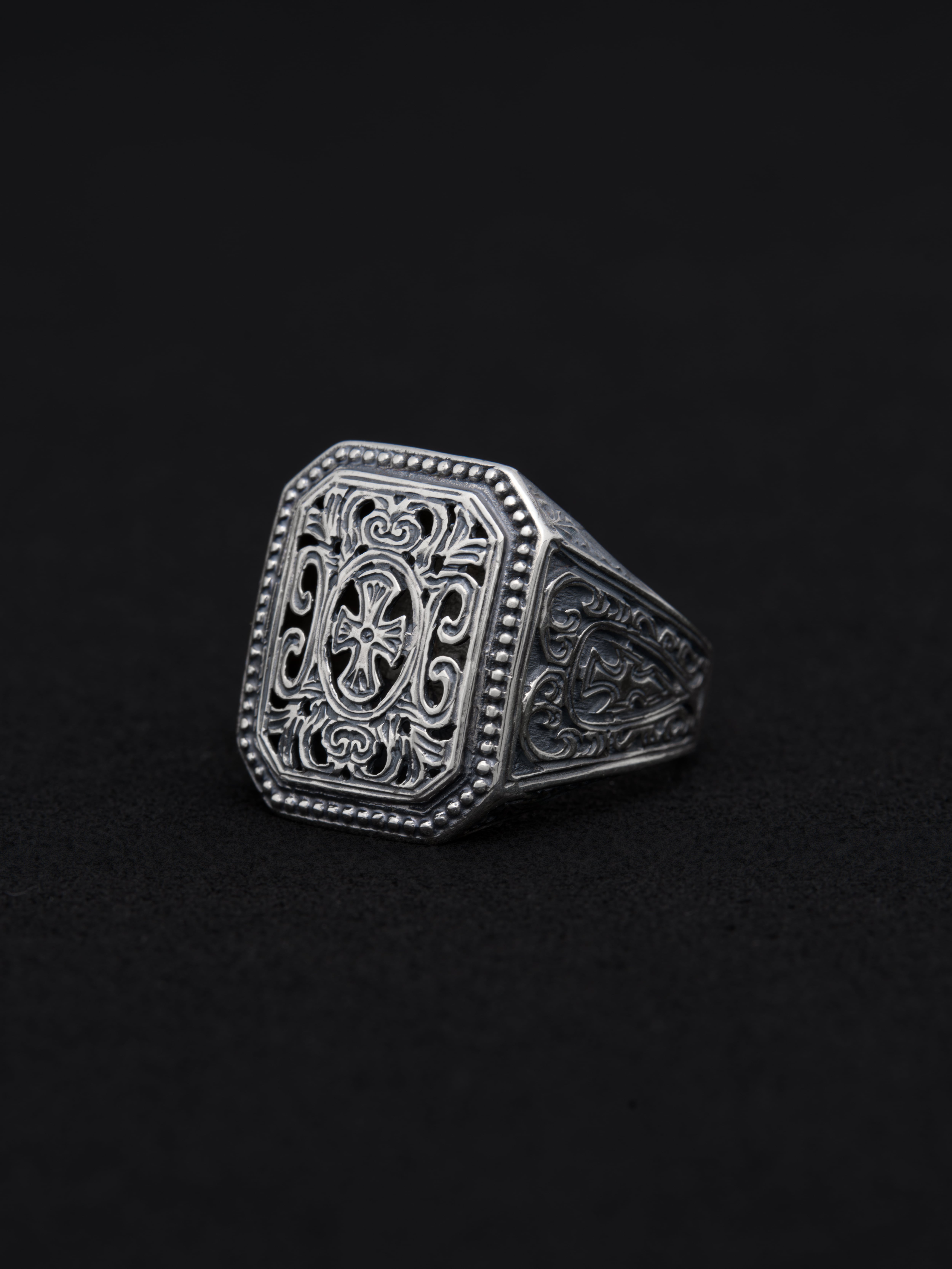 Gerochristo|ジェロクリスト シルバー製のリング。 ギリシアに拠点を置くジェロクリストは、古典芸術様式であるビザンチンに影響を受けた伝統的な装飾技術を用い、クラシックとモダンが調和する独自のデザインでジュエリーを創り上げています。 ギリシア製 シルバー925 サイズ|JP 20 アイテムナンバー|GR073
