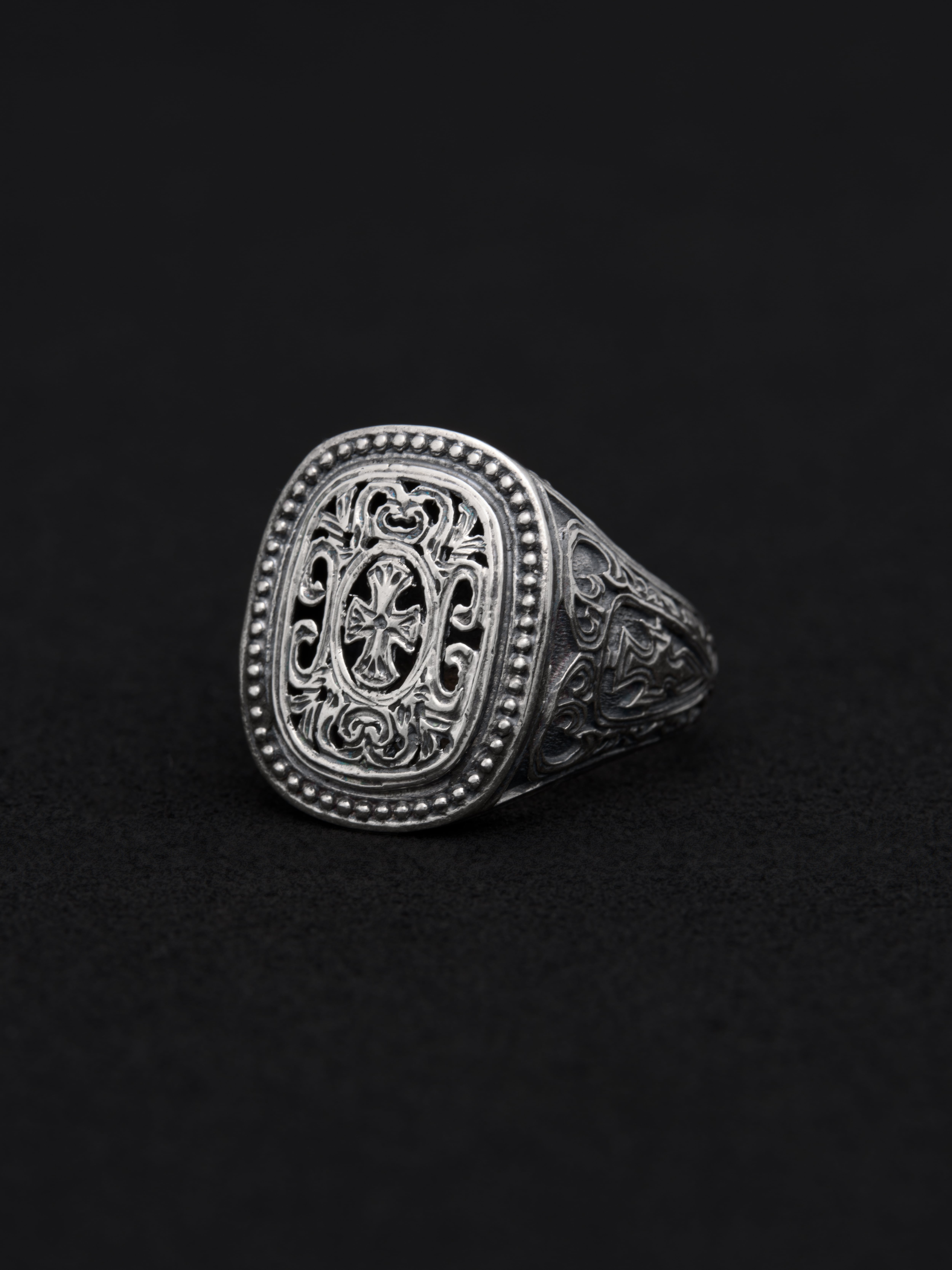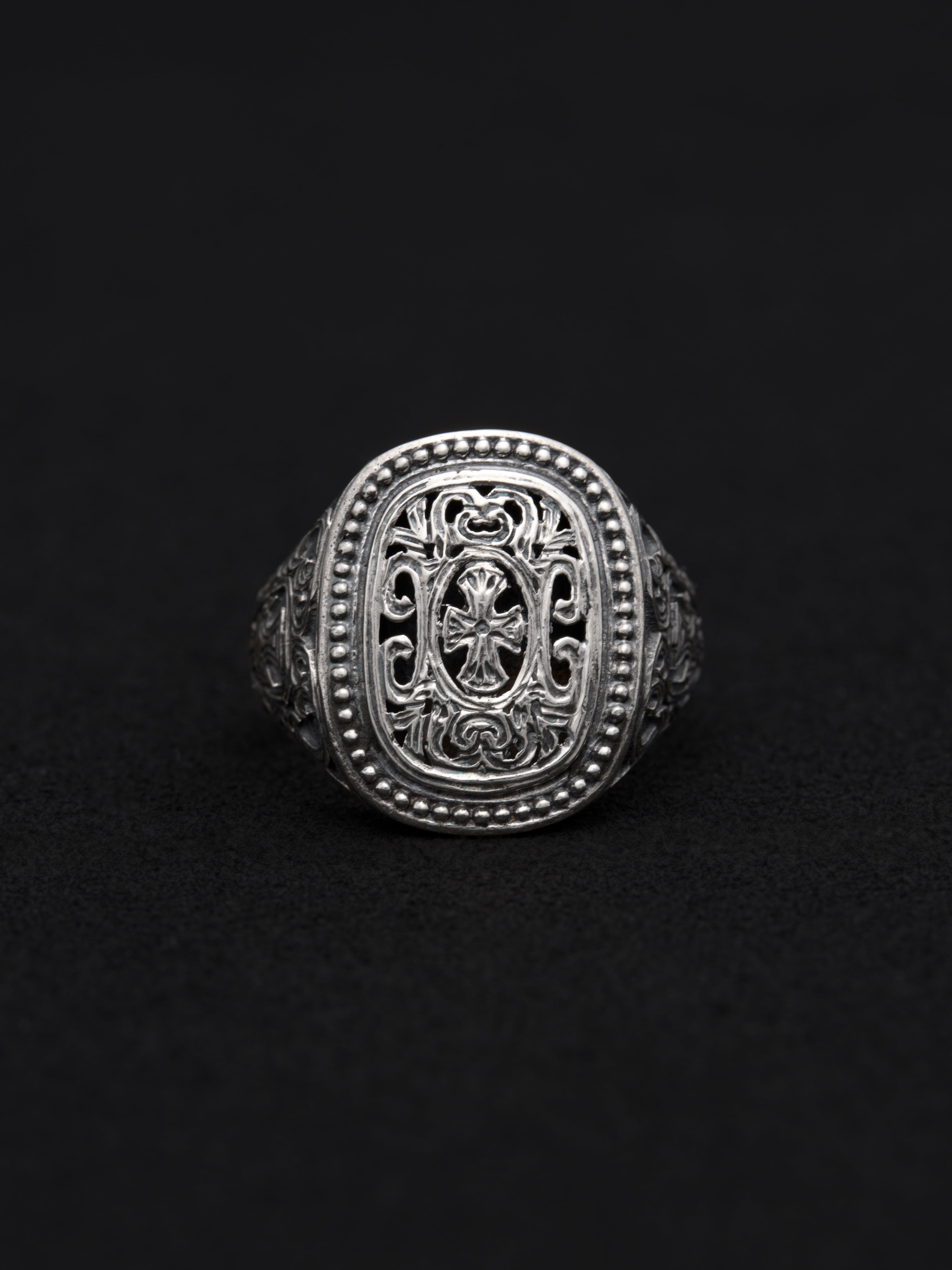 Gerochristo|ジェロクリスト シルバー製のリング。 ギリシアに拠点を置くジェロクリストは、古典芸術様式であるビザンチンに影響を受けた伝統的な装飾技術を用い、クラシックとモダンが調和する独自のデザインでジュエリーを創り上げています。 ギリシア製 シルバー925 サイズ|JP 15 アイテムナンバー|GR075