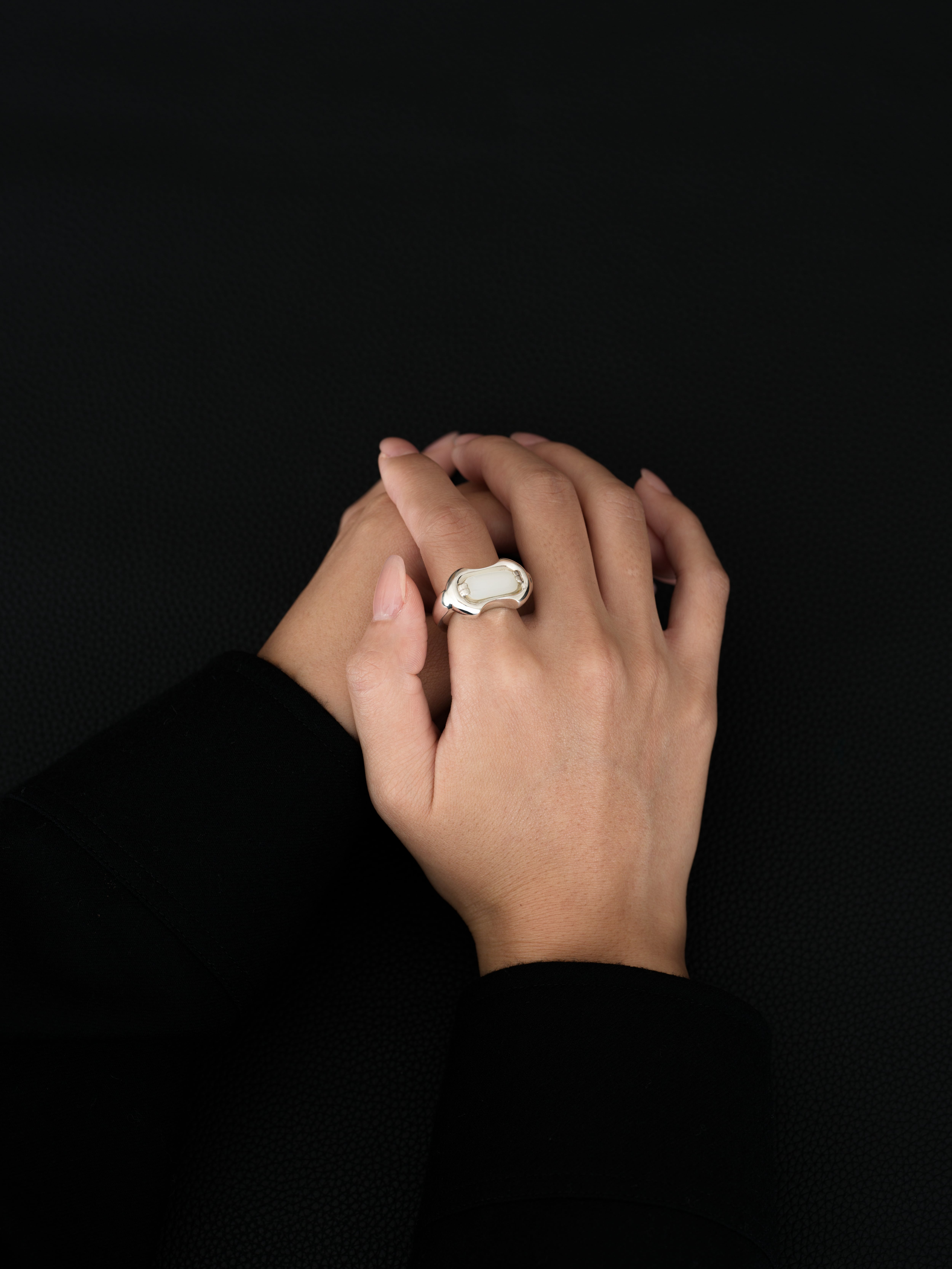 RHODES|ローズ シルバー製のリング、中央にムーンストーンをセッティング。 ローズは2021年にファビュラスサウンズのディレクター、吉田量によって設立したブランド。インスピレーションをキーワードに、多彩なデザインのジュエリーを展開。 日本製 シルバー925|ムーンストーン アイテムナンバー|RHODES022